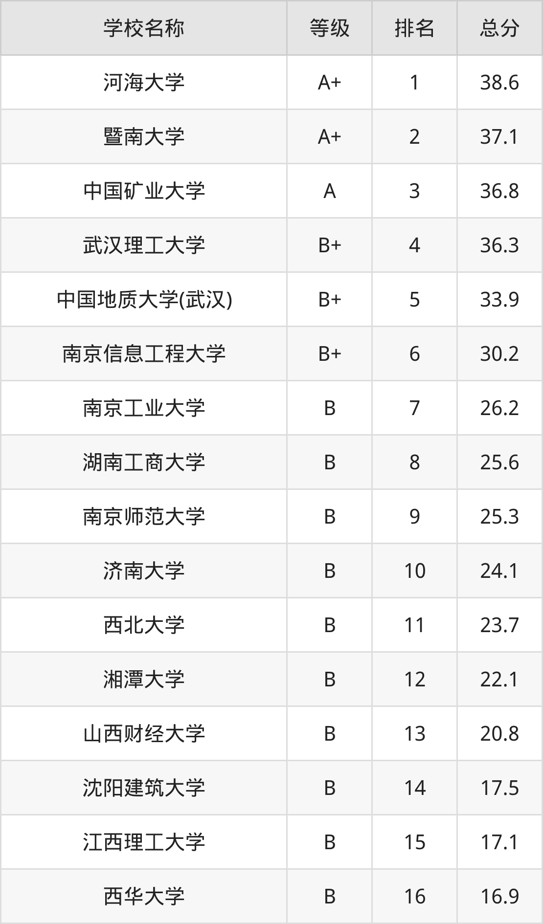 第1名:河海大学38.6分