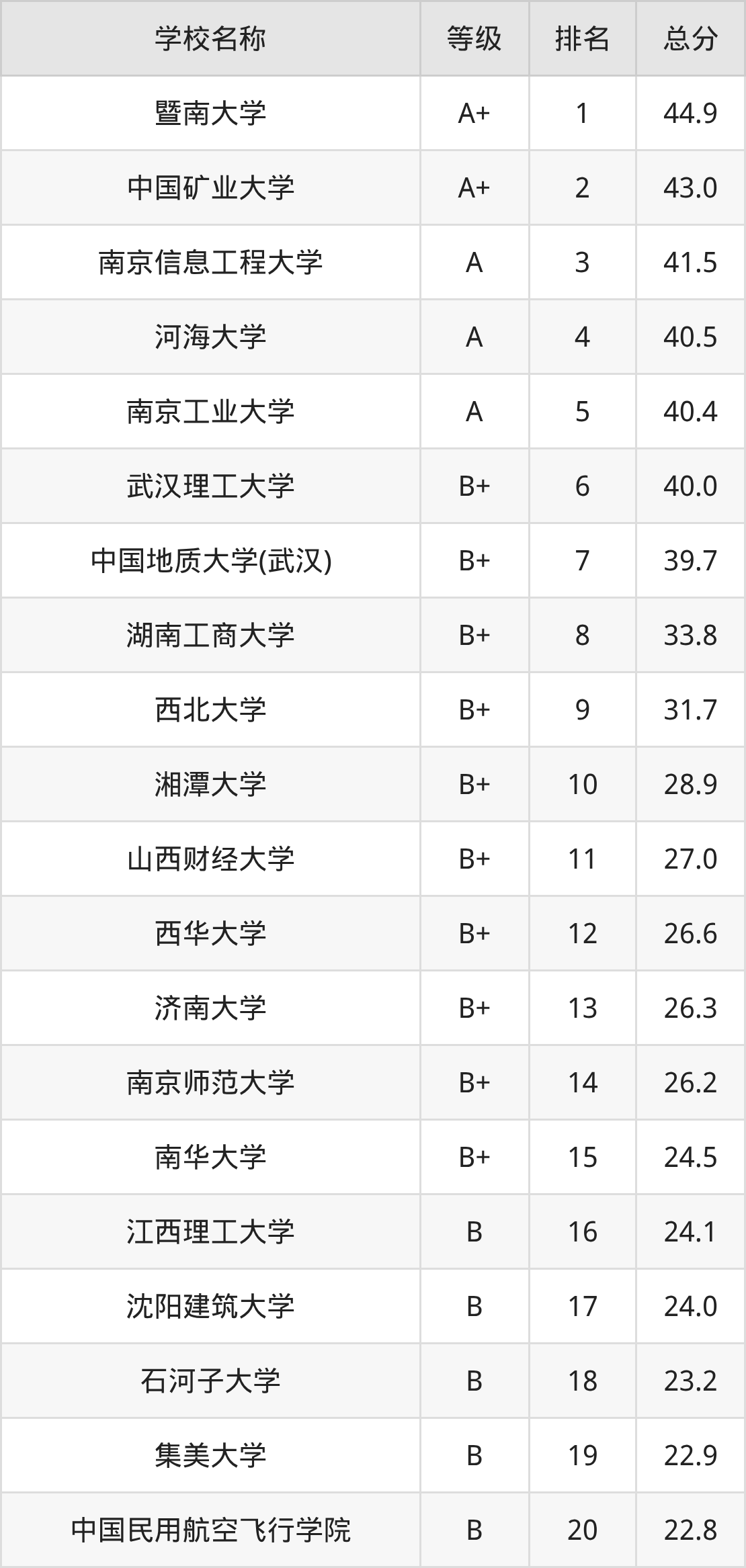 第1名:暨南大学,44.9分