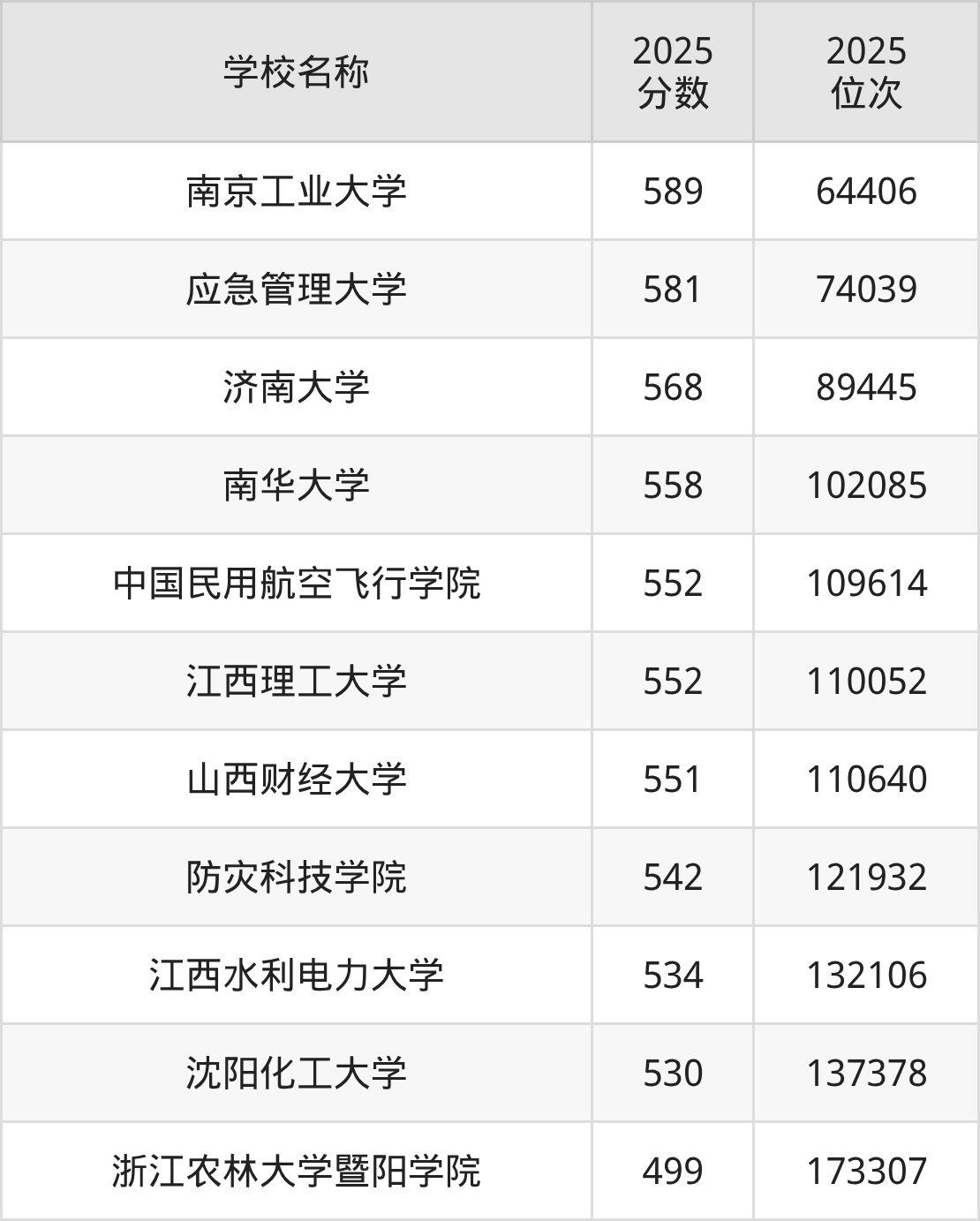 在浙江,分数线第一的应急管理专业大学是南京工业大学,2025年投档线是589分,最低位次是64406位;