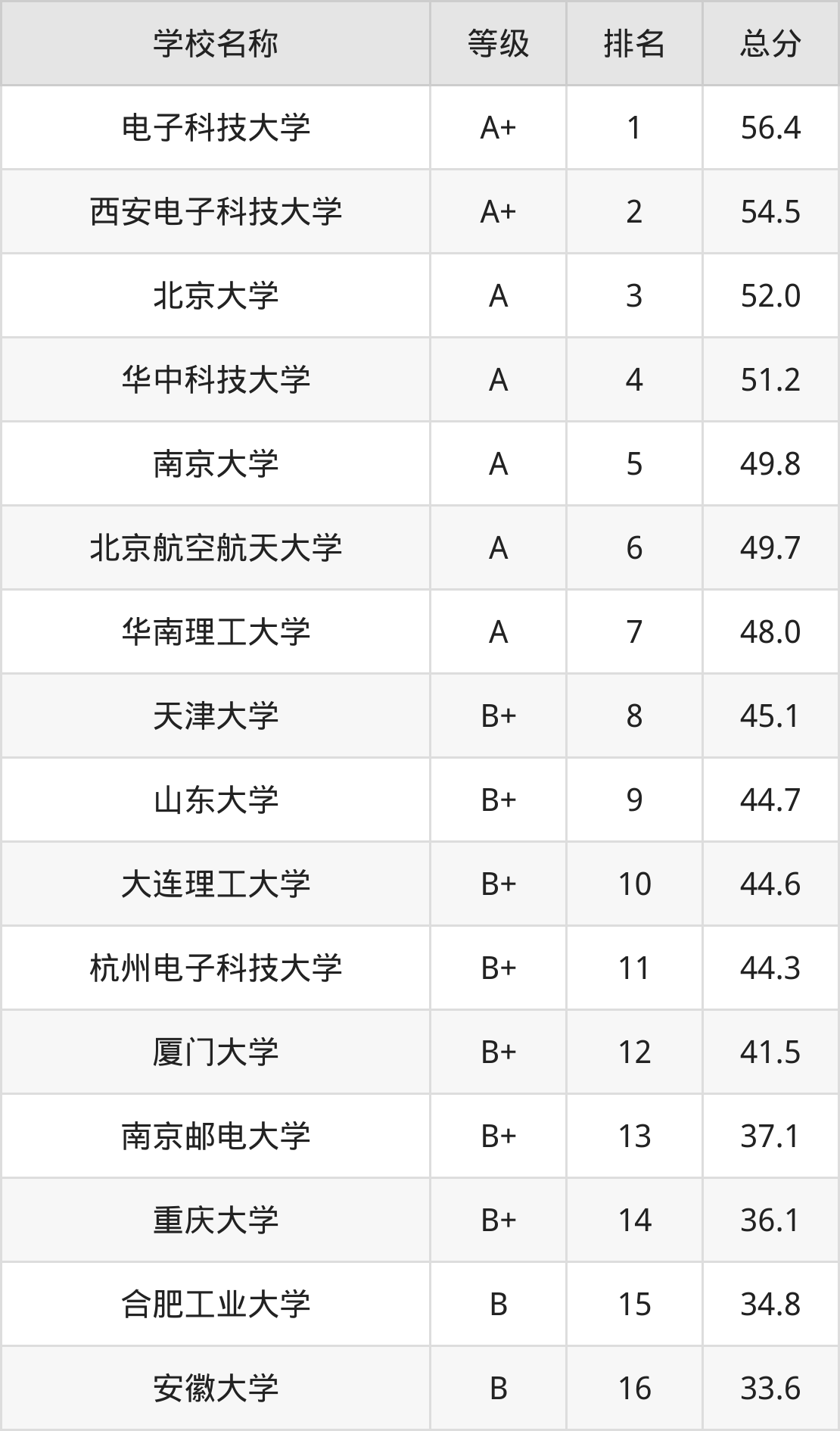 第1名:电子科技大学56.4分