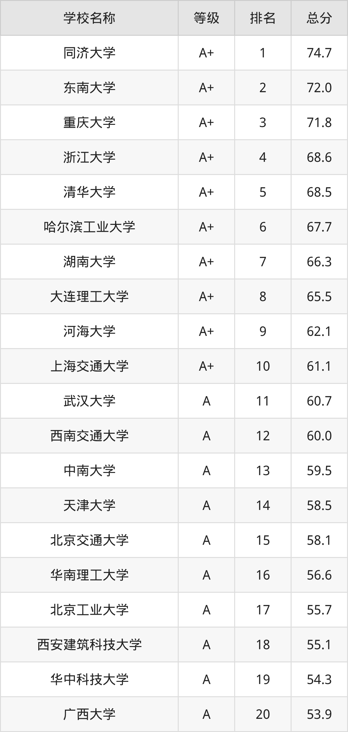 第1名:同济大学,74.7分