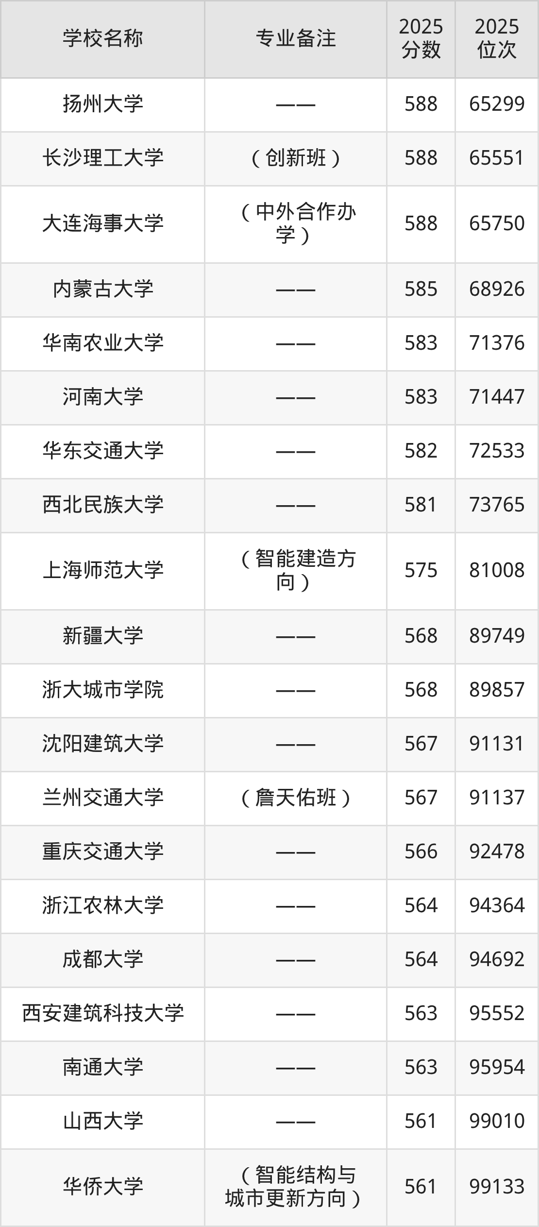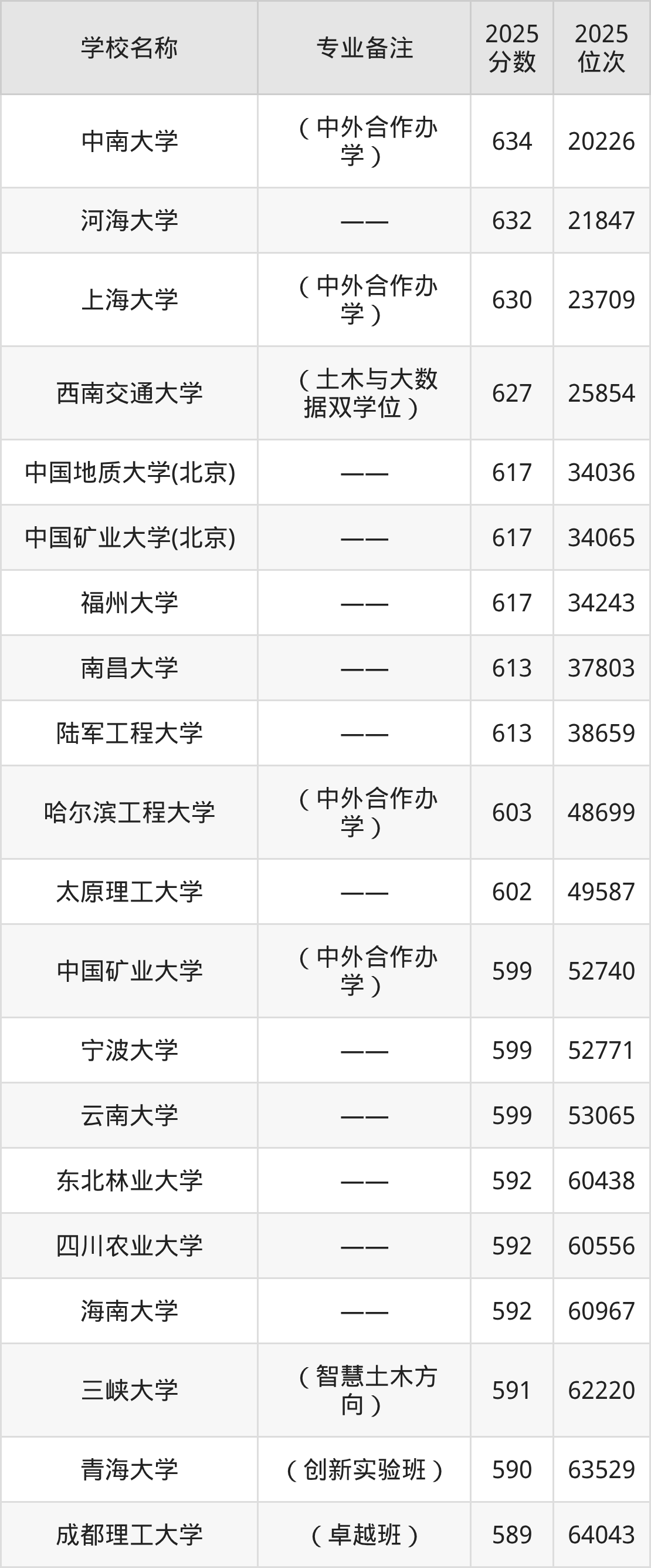 二、2025土木工程专业分数线