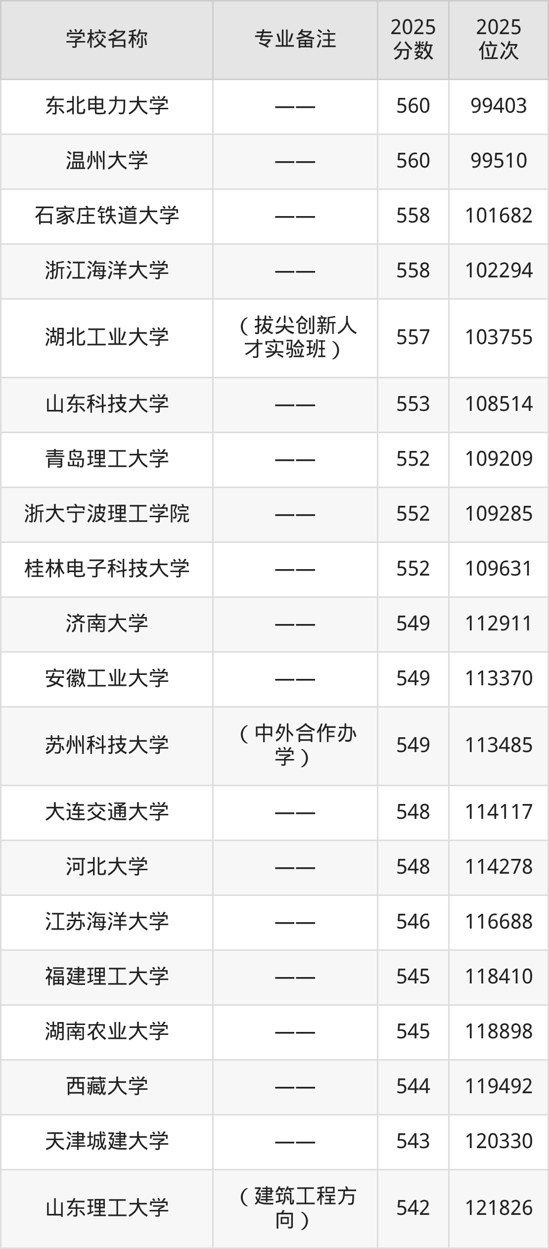 2025年全国各大学土木工程专业在浙江分数线: