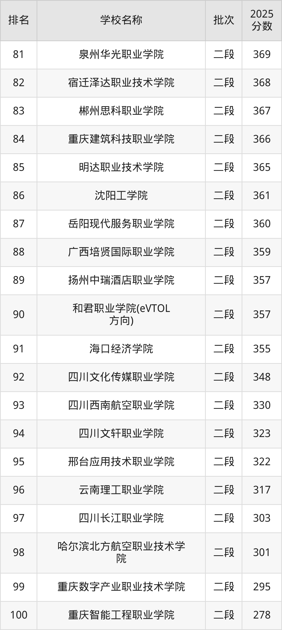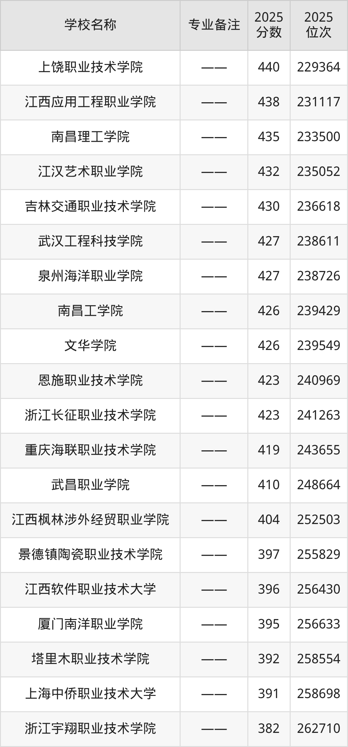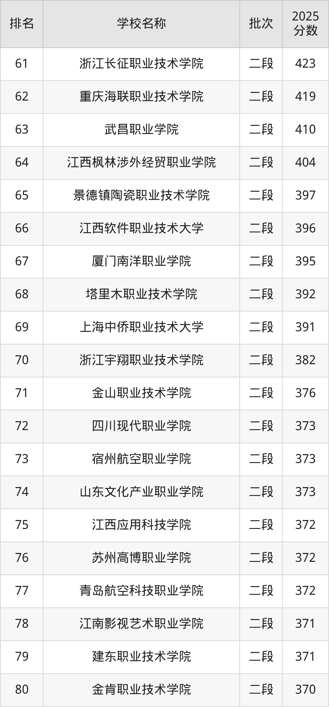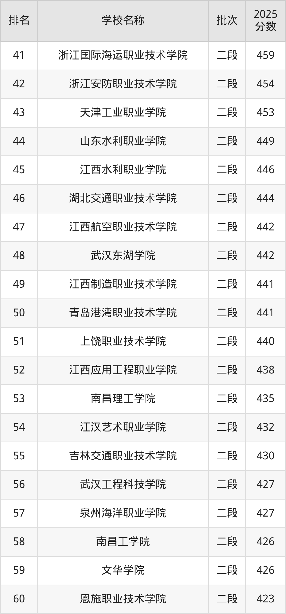 排在第二的无人机应用技术专业大学是浙江交通职业技术学院,2025年投档线是517分,最低位次是152153位。