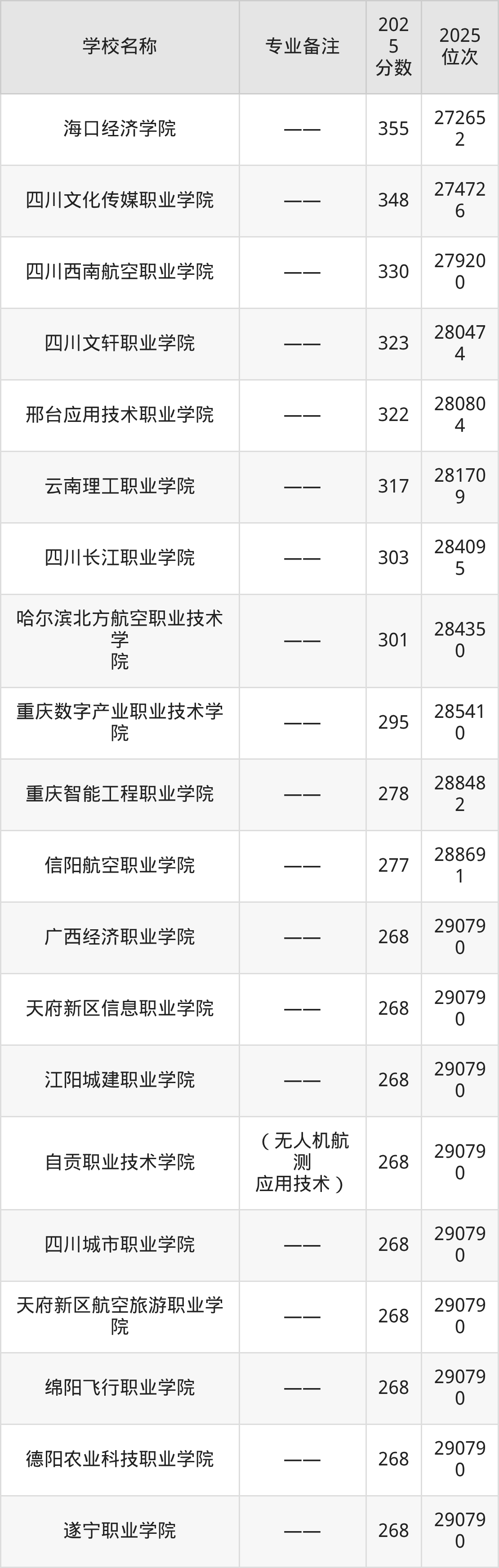 2025年全国各大学无人机应用技术专业在浙江分数线: