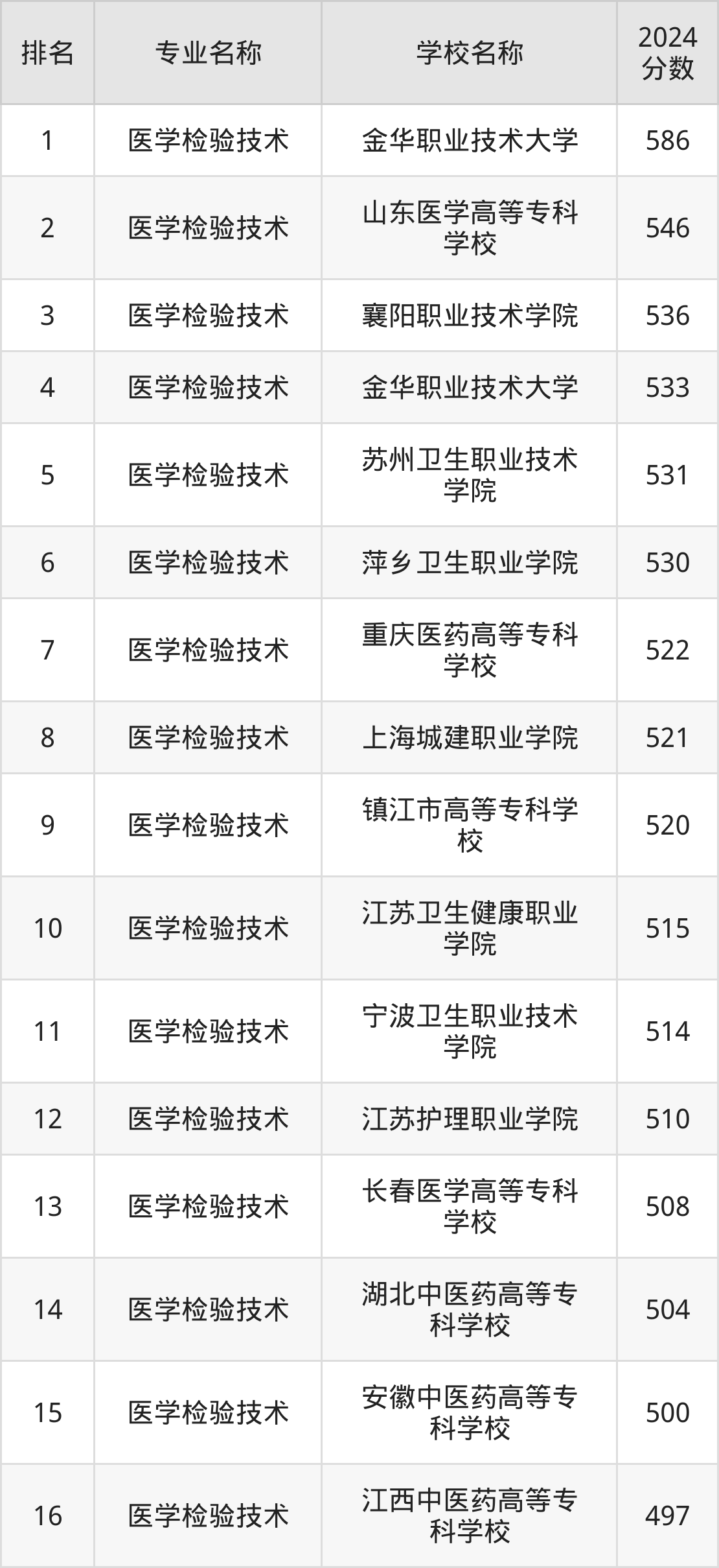 参考2024年山东各专业分数线,各大学医学检验技术专业的分数线为:金华职业技术大学586分、山东医学高等专科学校546分等,更多数据详见下文。