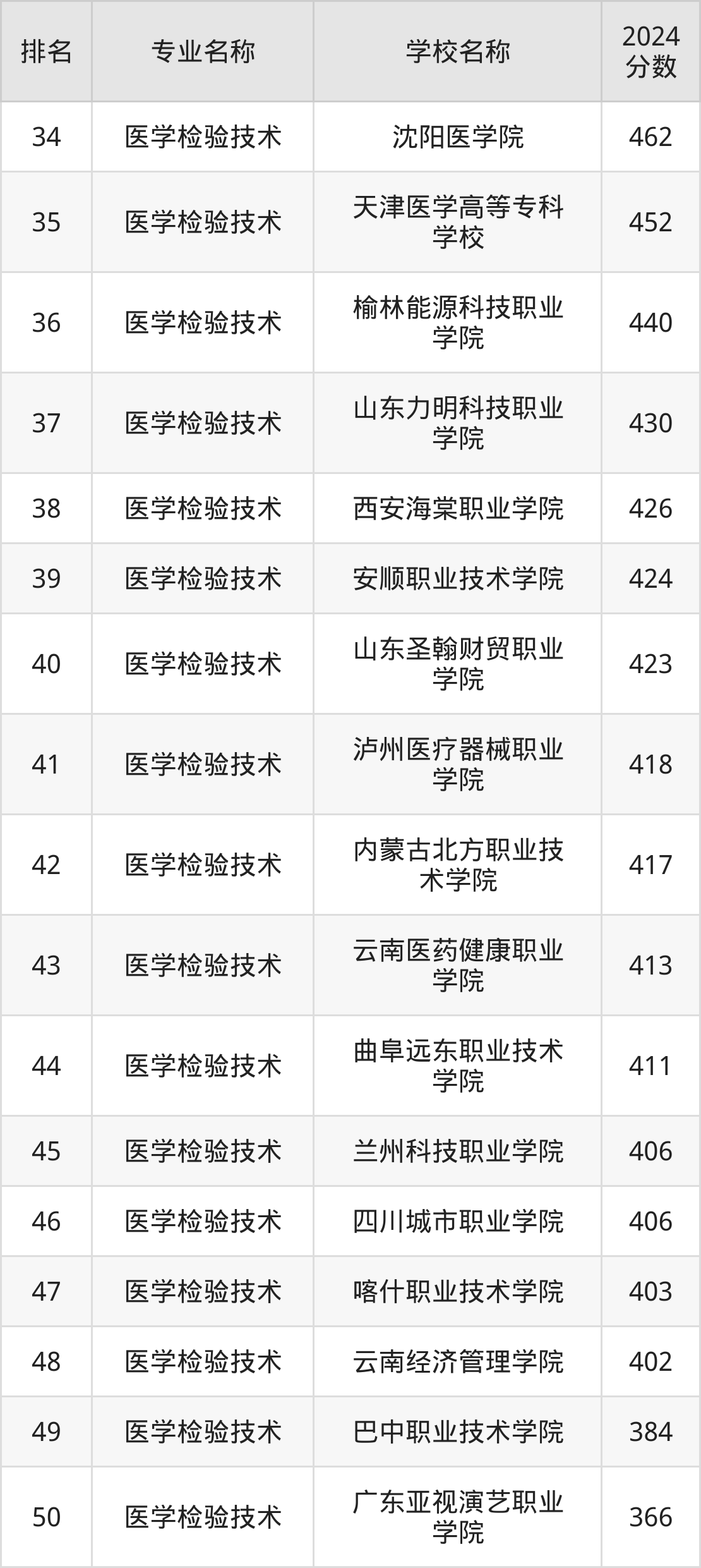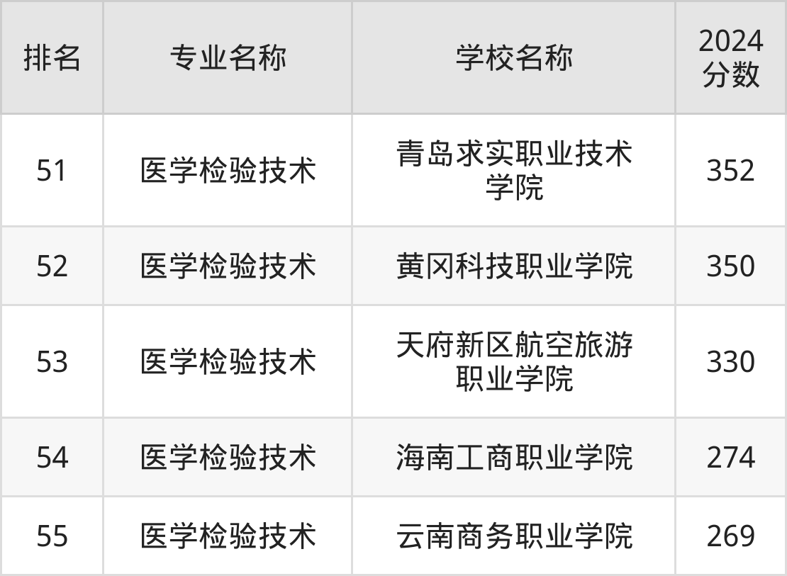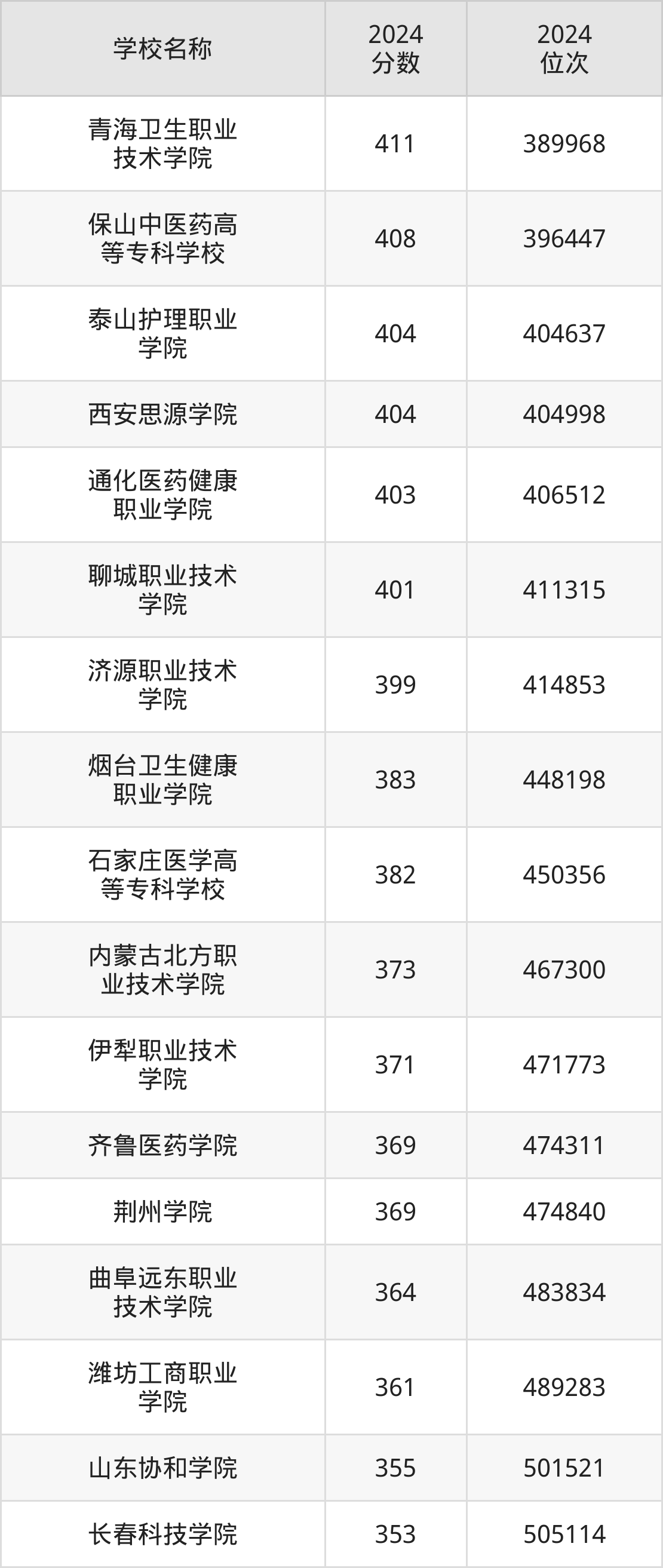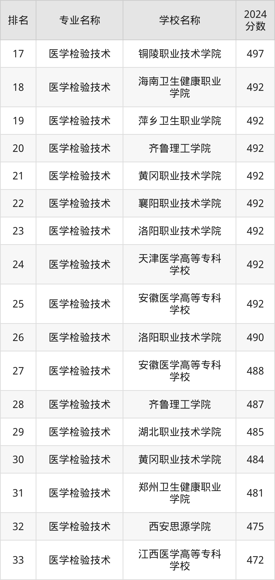 在山东,分数线第一的医学检验技术专业大学是山东医学高等专科学校(高职3+2贯通培养),2024年投档线是495分,最低位次是192163位;