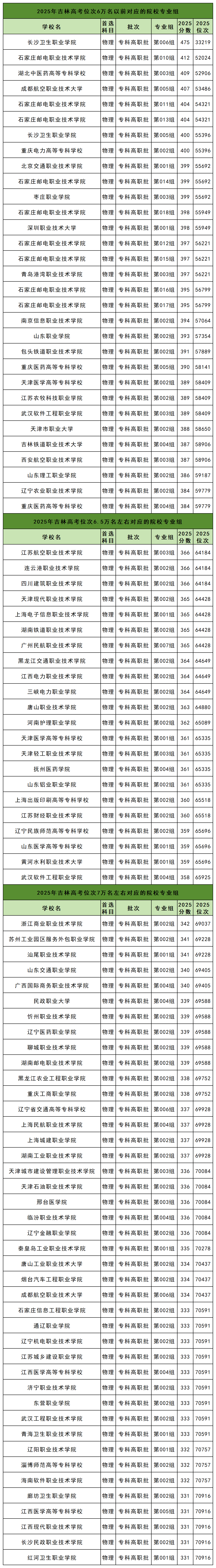 温馨提示:本文以2025年全国大学在吉林物理类的招录数据为例,展示不同位次排名对应的公办大学名单,以供2026届考生报考参考。