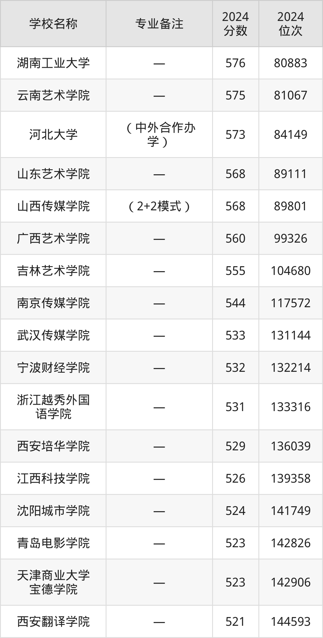 因为各院校及专业的分数线在不同地区的录取情况都不一致,本文就参考2024年浙江各院校专业的投档分数线,为大家整理出全国大学戏剧影视文学专业在浙江的投档录取情况,供参考。