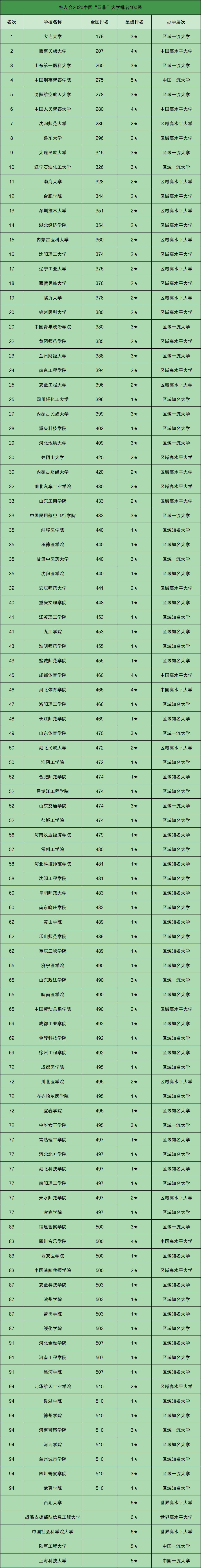 以下为大学评估咨询机构艾瑞深校友会网公布的2020最新四非大学排名100强,可以得知排名前五位的分别是大连大学、西南民族大学、山东第一医科大学、中国刑事警察学院、沈阳航空航天大学。这5所大学属于“四非”院校中综合实力最的,因此是非常值得考生们报考的大学。以下为“四非”大学具体排名情况: