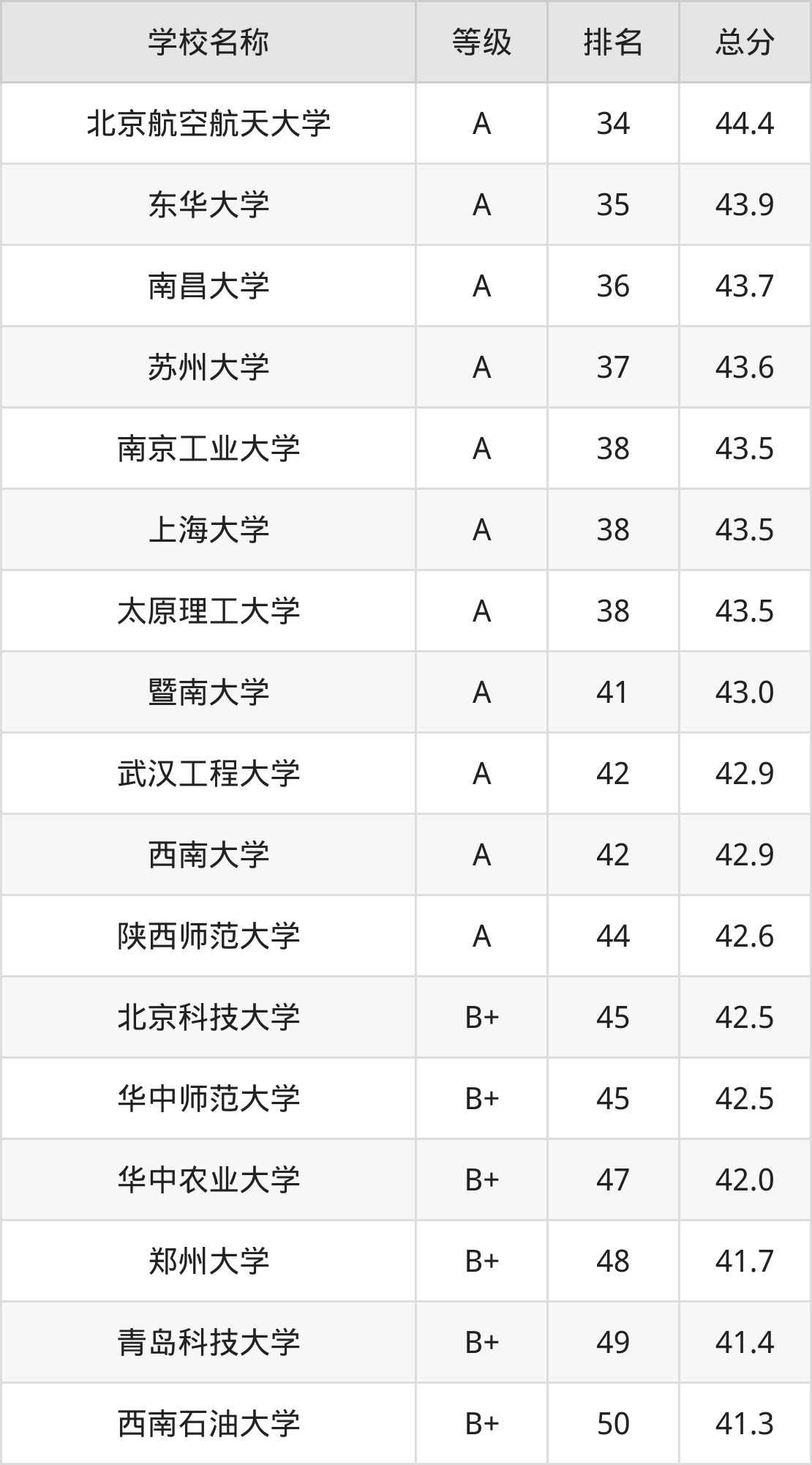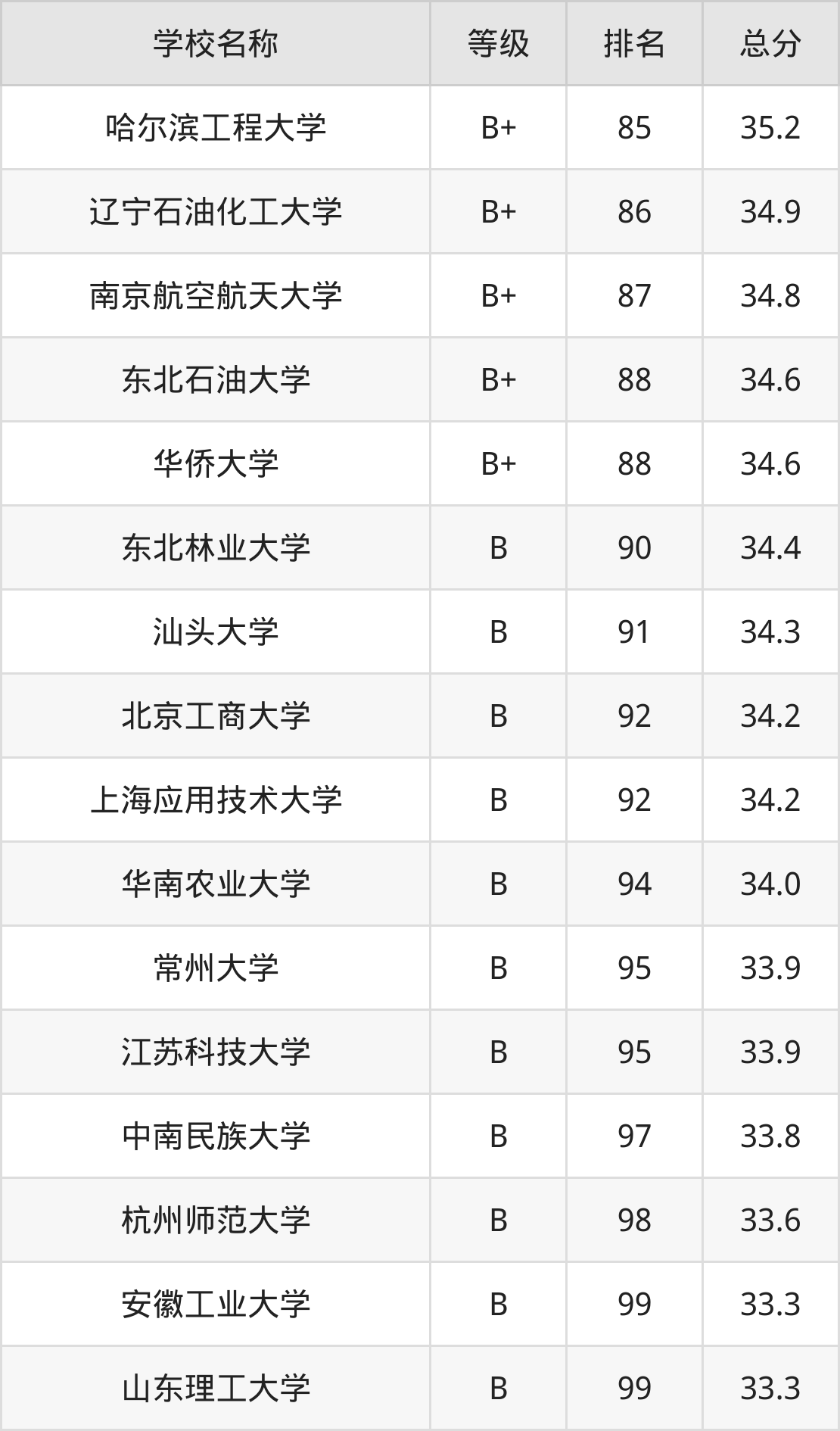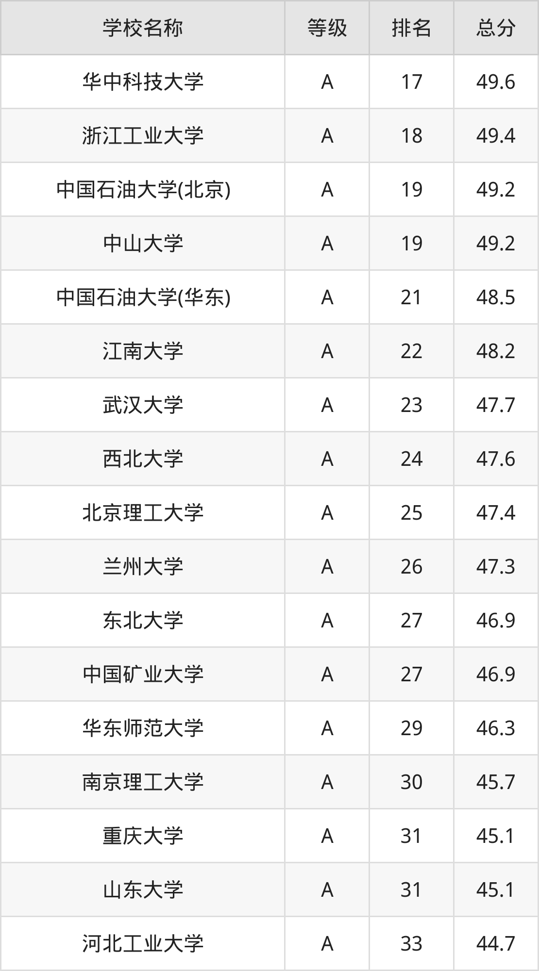 注:由于应用化学专业的开设院校数量庞大,本文整理出前100强的院校名单。