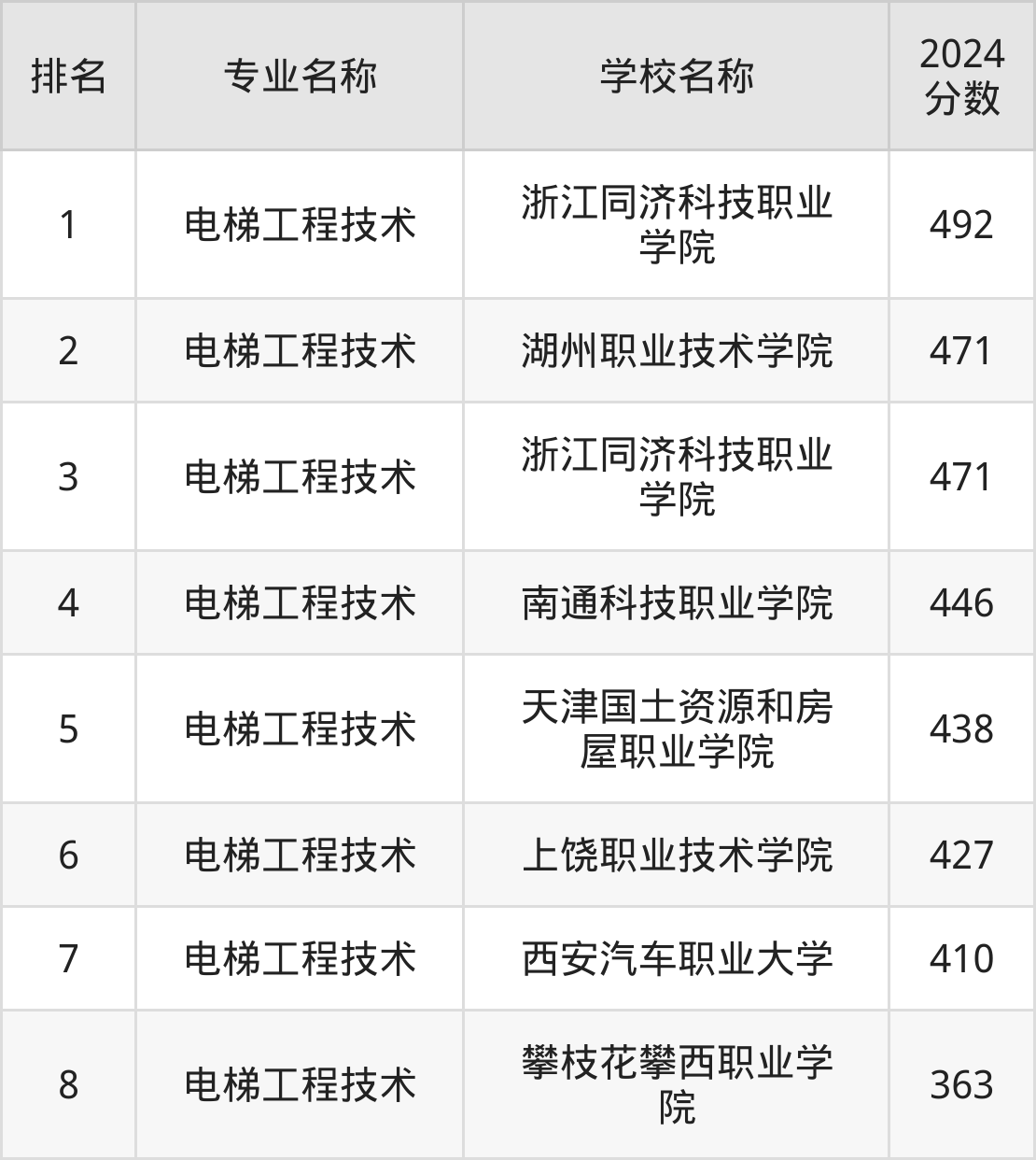 参考2024年山东各专业分数线,各大学电梯工程技术专业的分数线为:浙江同济科技职业学院492分、湖州职业技术学院471分等,更多数据详见下文。