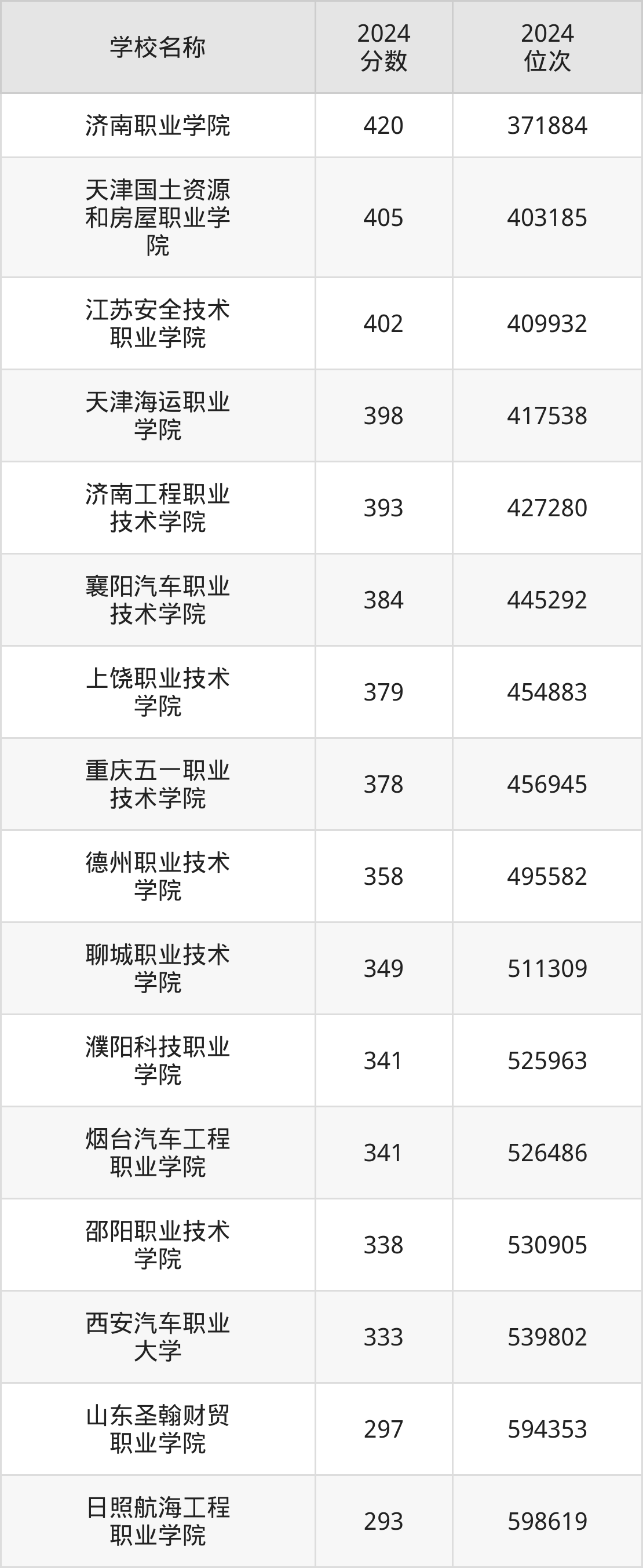 在山东,分数线第一的电梯工程技术专业大学是济南职业学院,2024年投档线是420分,最低位次是371884位;