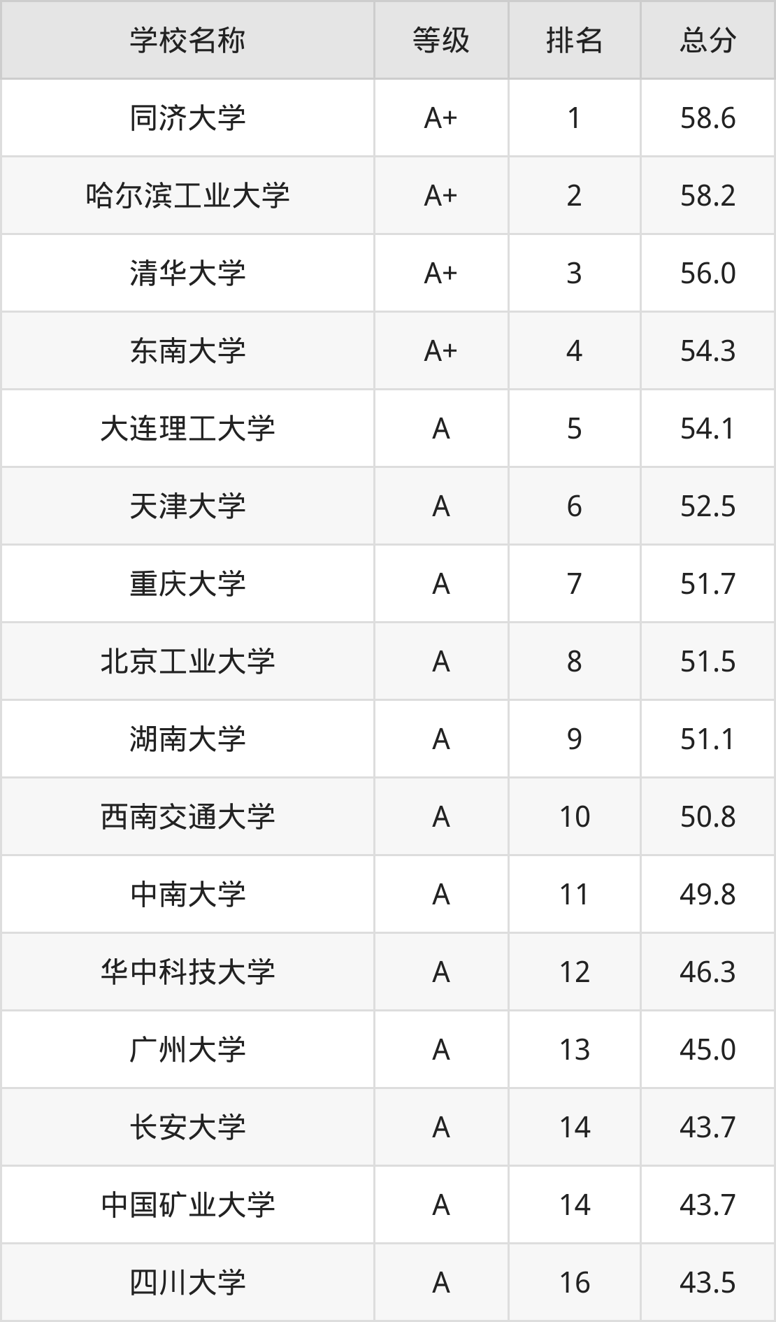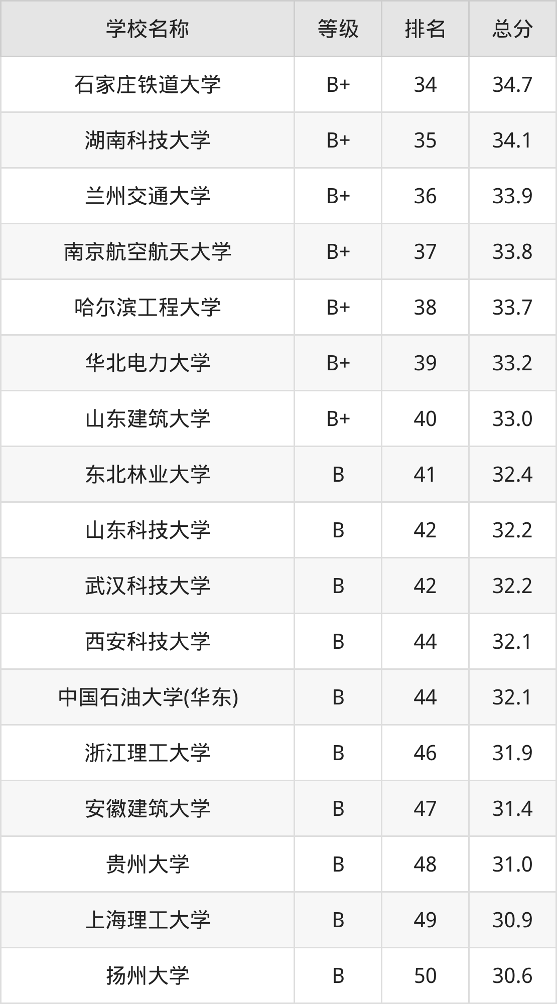 注:由于建筑环境与能源应用工程专业的开设院校数量庞大,本文整理出前100强的院校名单。
