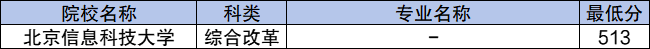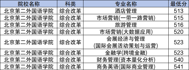 学校地方专项计划最低分数线是513分,对应的招生专业是酒店管理、市场营销(一带一路营销)。