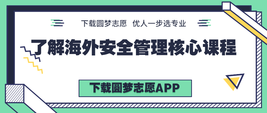 海外安全管理专业大学核心课程:毛泽东思想和中国特色社会主义理论体系概论、国家安全学、安全管理学、海外利益保护概论、中国海外利益保护史、国际法概论、情报信息管理、海外安全风险评估预警、海外应急管理、海外安全防范工程、国别与区域安全、突发事件处置指挥与战术、安全防范技术及装备管理。