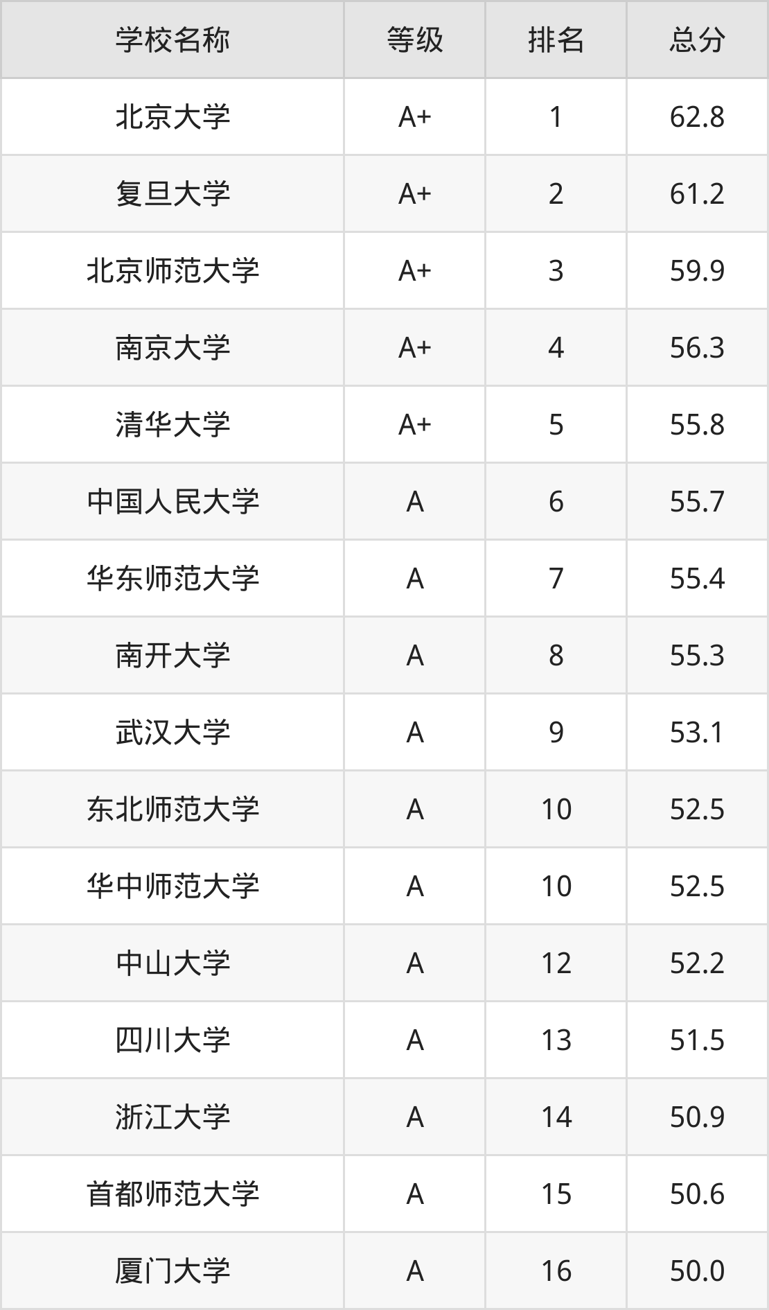 2024年历史学大学全国排名: