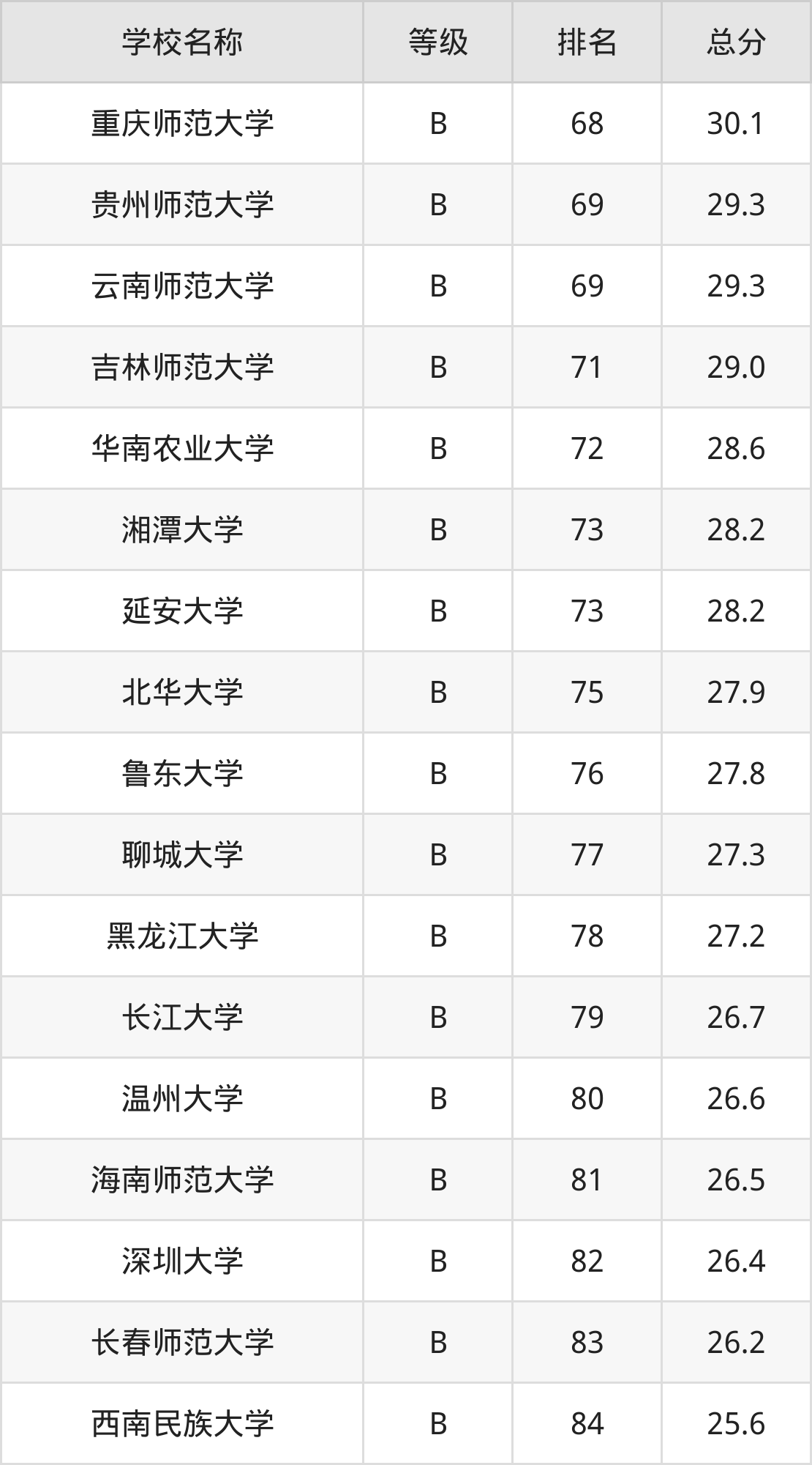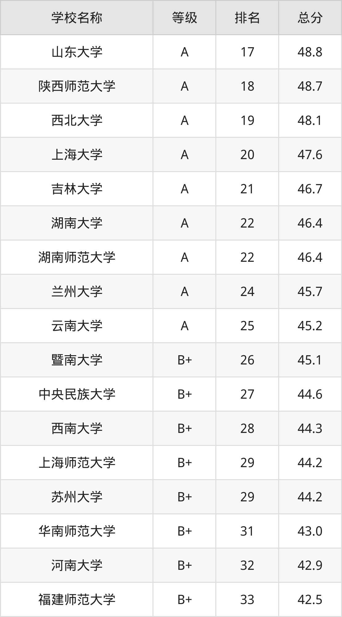 注:由于历史学专业的开设院校数量庞大,本文整理出前100强的院校名单。