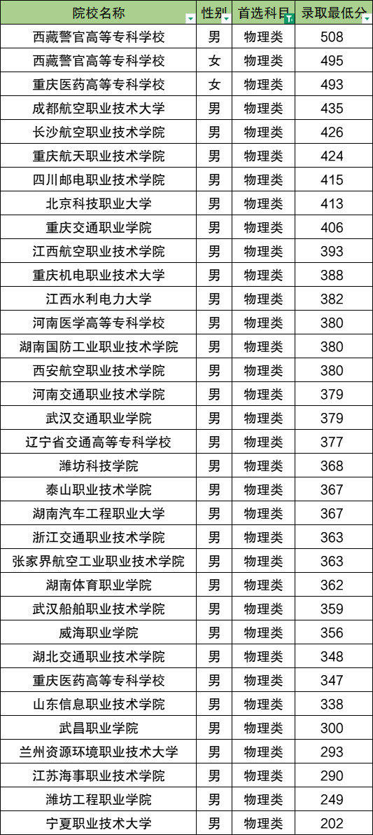 (3)重庆交通职业学院:物理类最低406分、历史类最低428分;