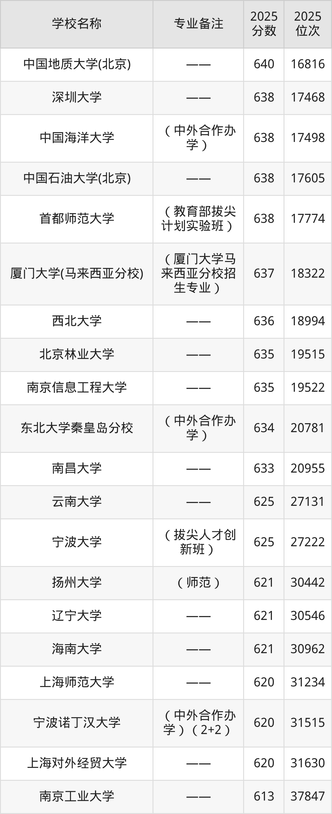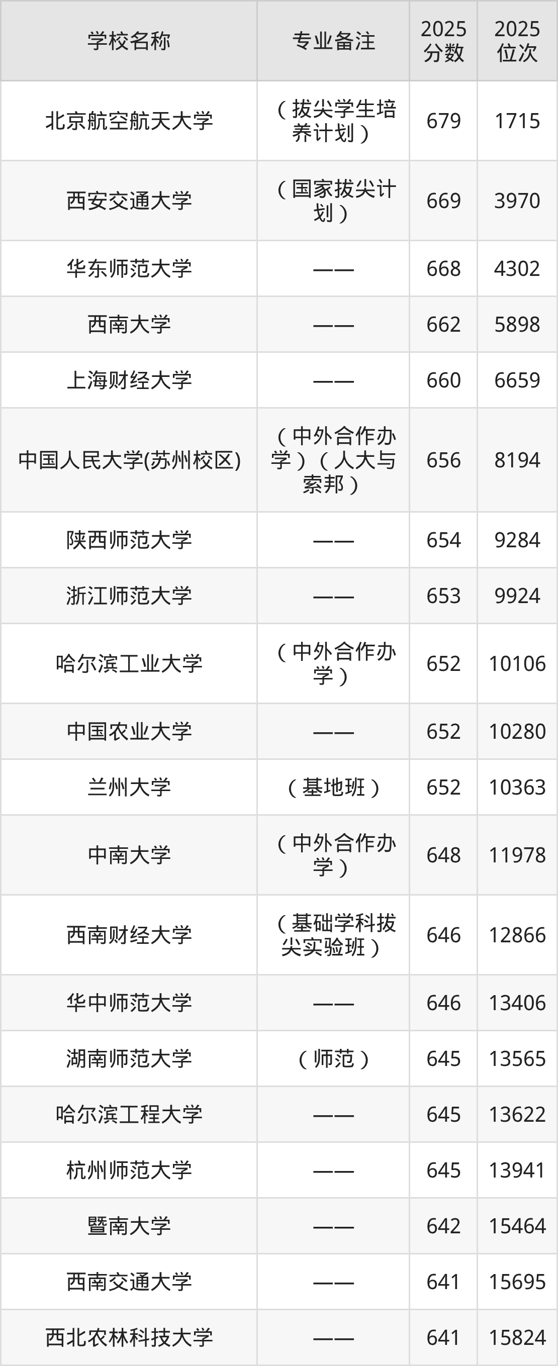 排在第二的数学与应用数学专业大学是西安交通大学(国家拔尖计划),2025年投档线是669分,最低位次是3970位。