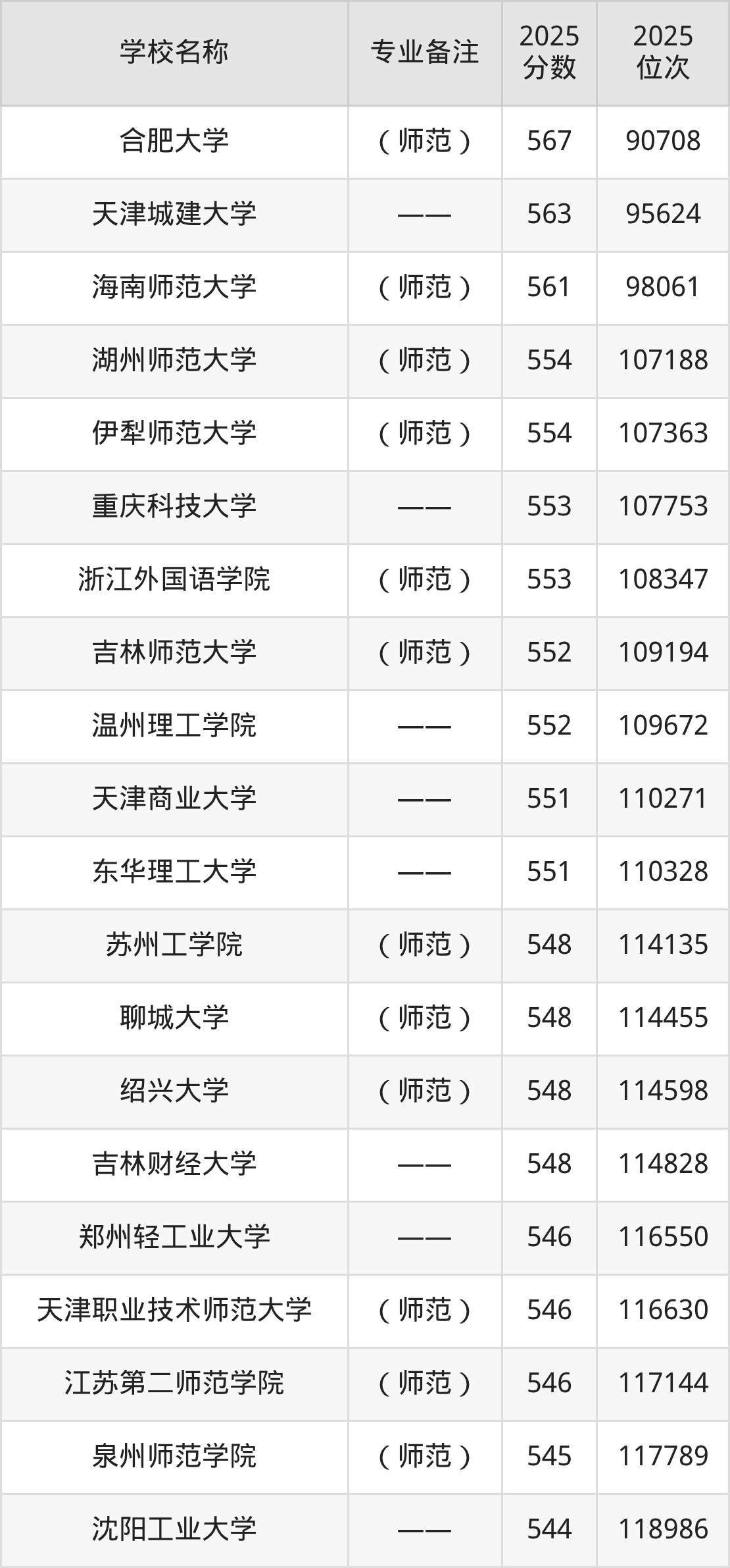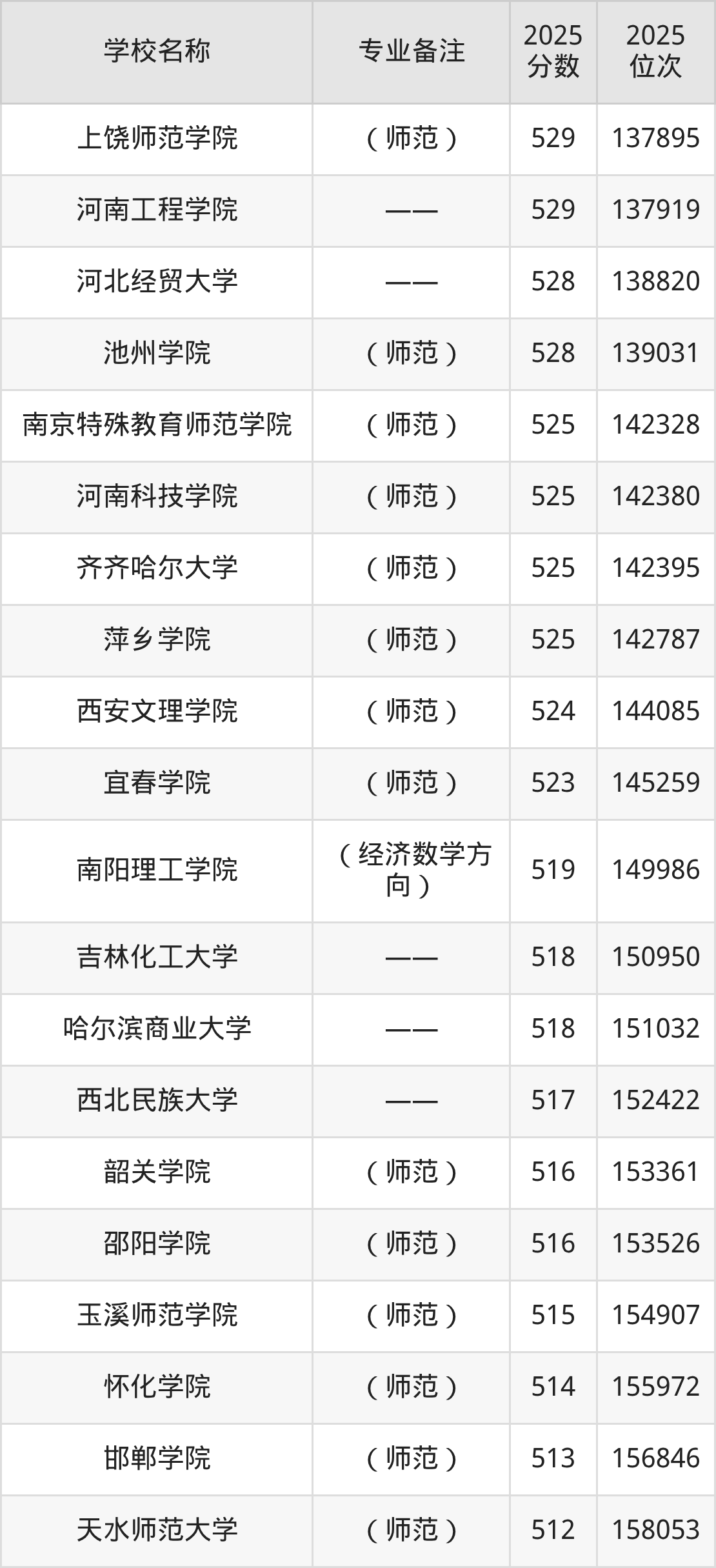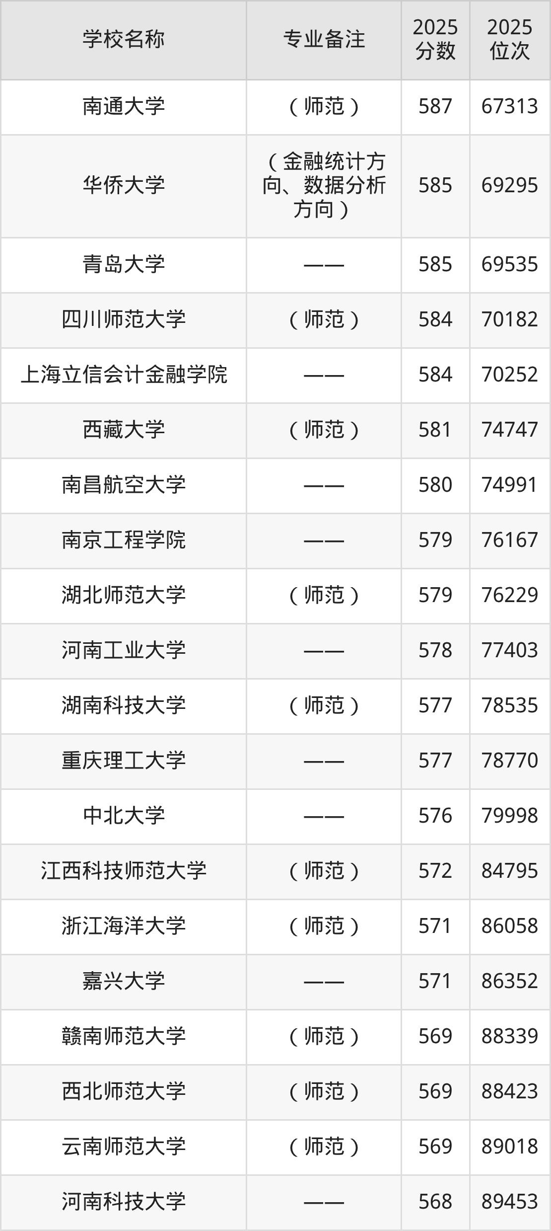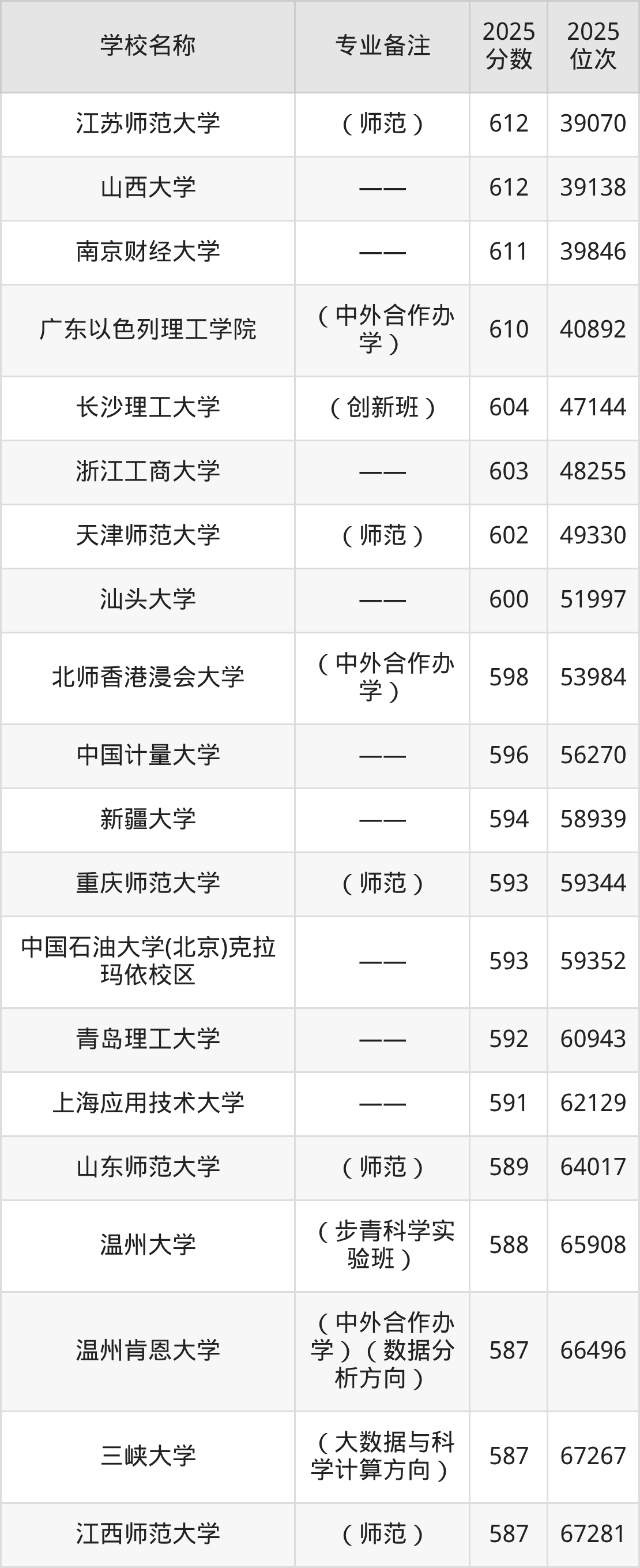 2025年全国各大学数学与应用数学专业在浙江分数线: