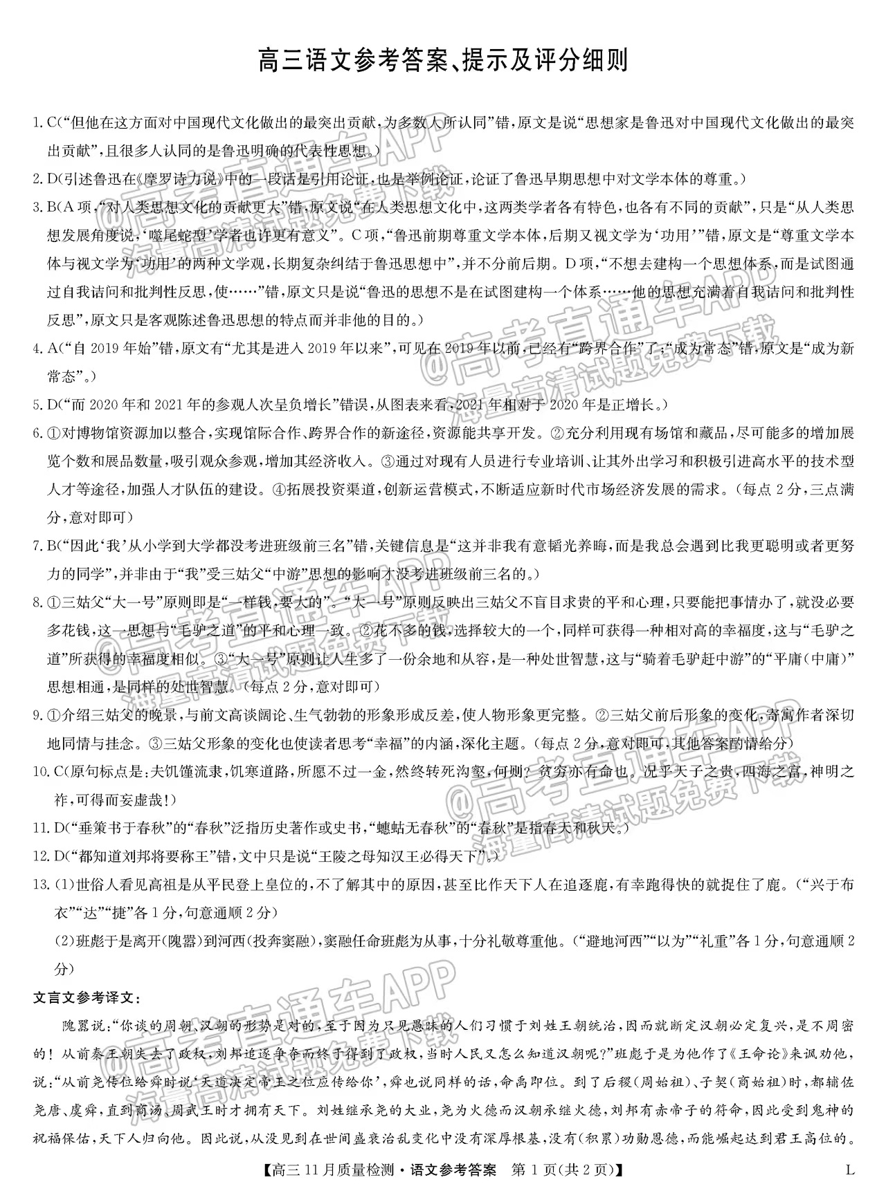 一.2023江西九师联盟高三11月联考语文试卷详情与答案解析汇总