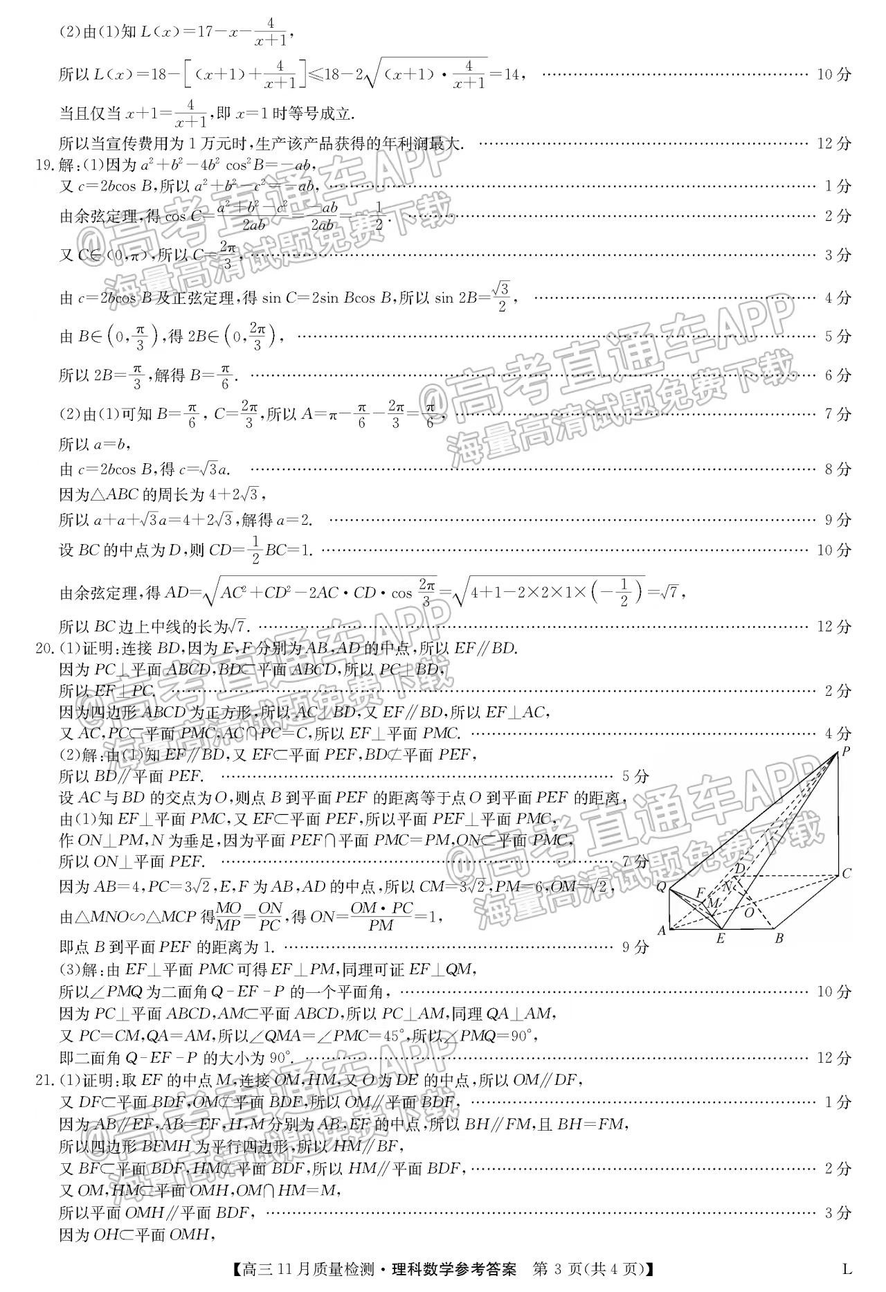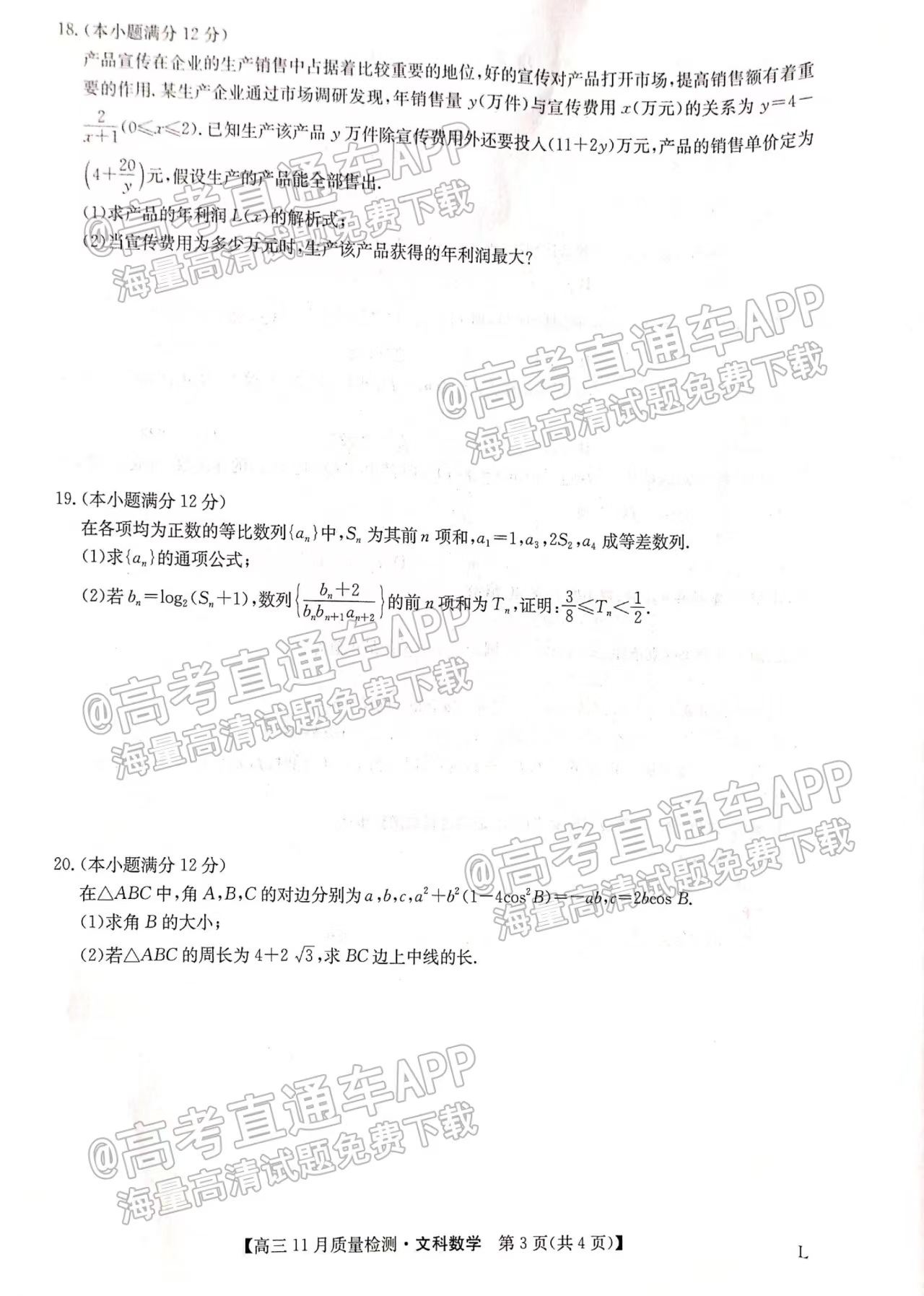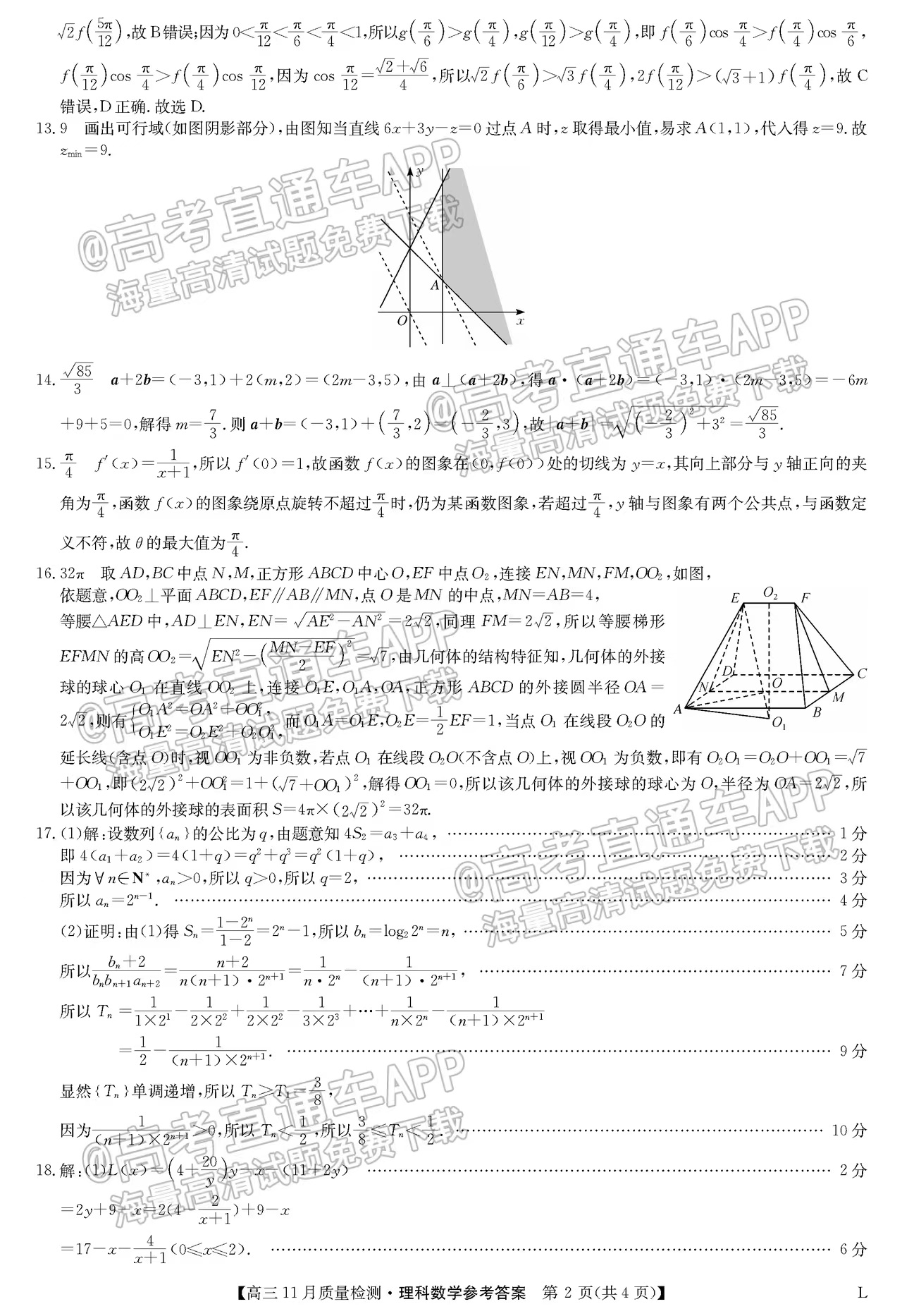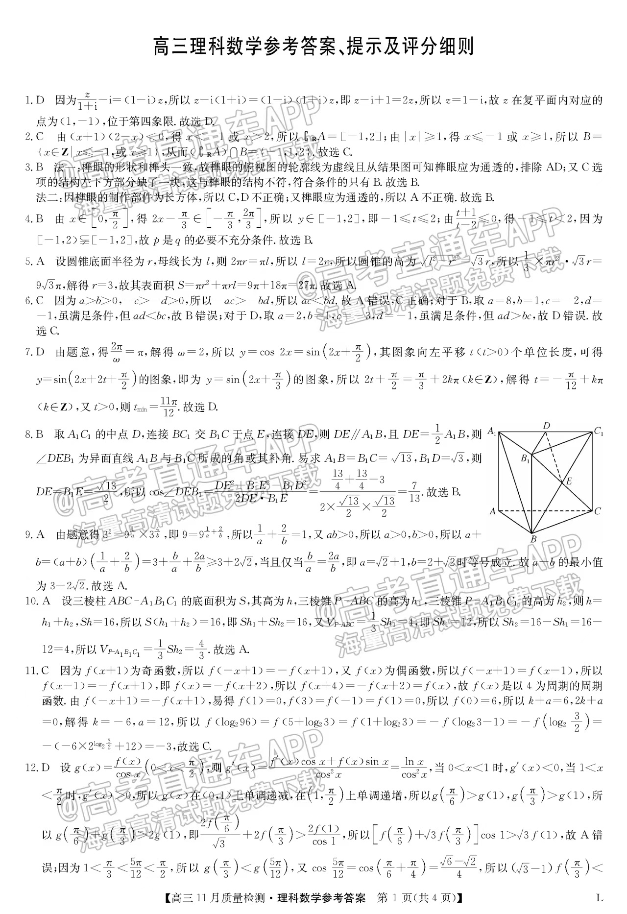 一.2023江西九师联盟高三11月联考数学试卷详情与答案解析汇总