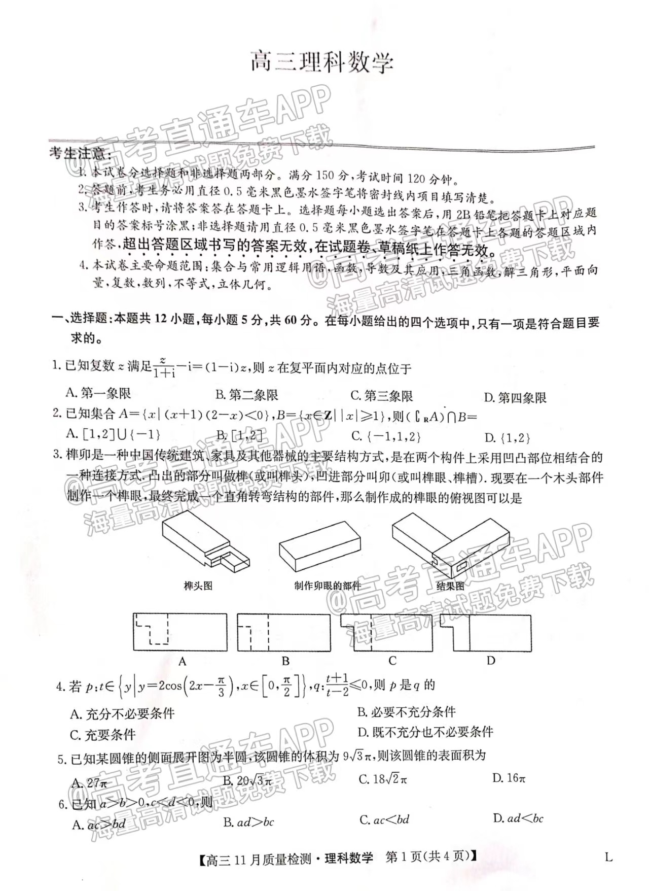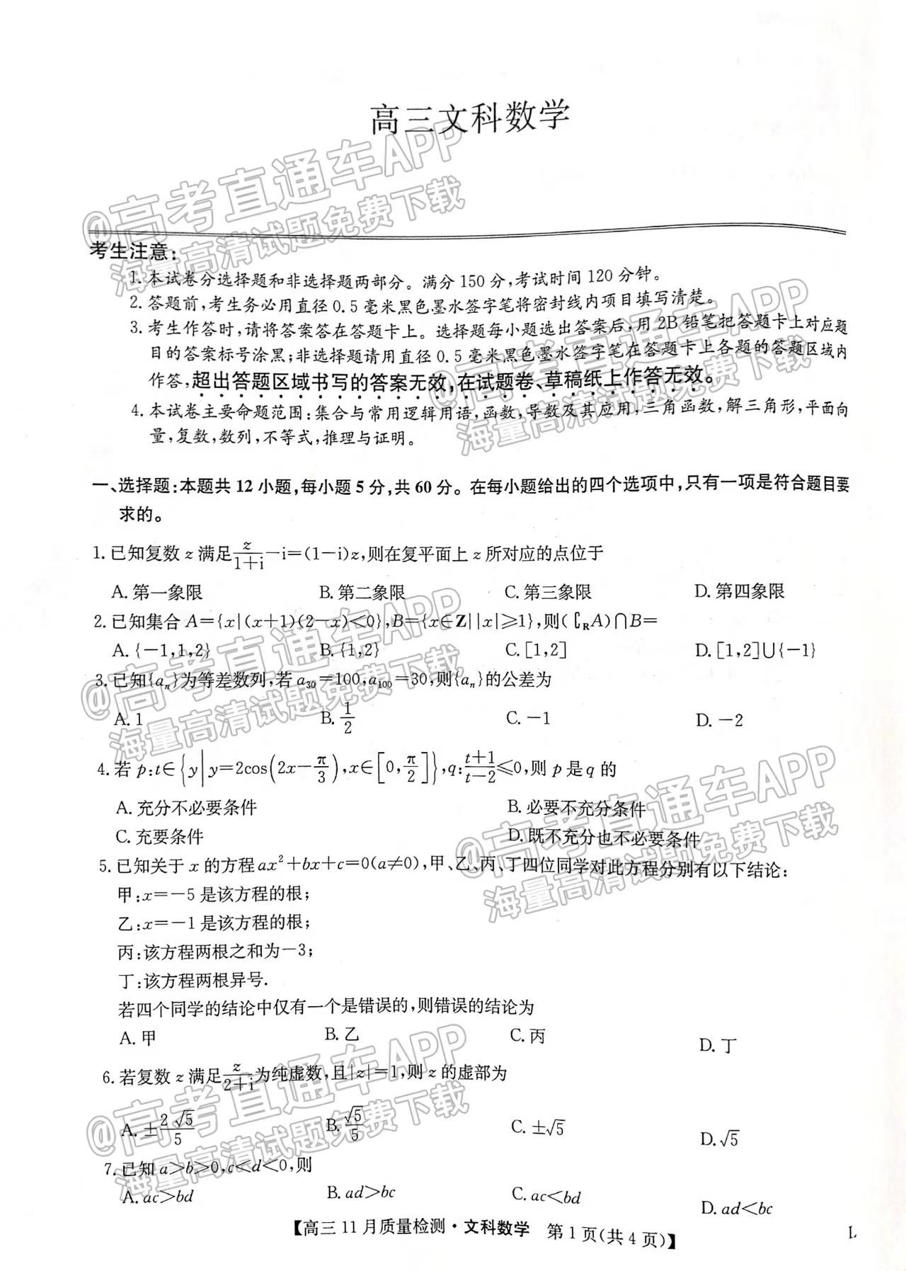 1.2023江西九师联盟高三11月联考数学试卷详情