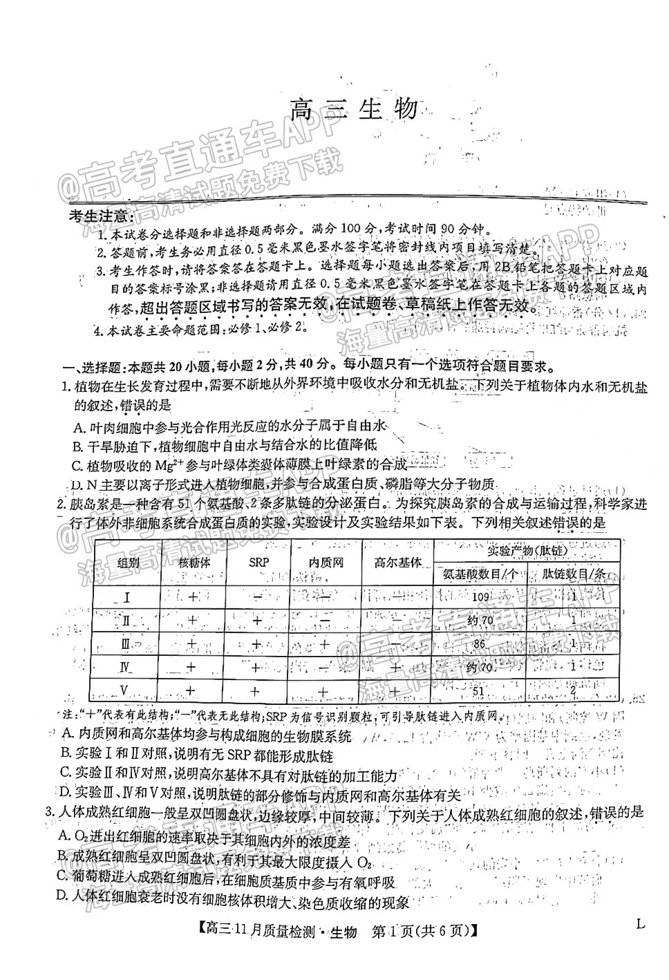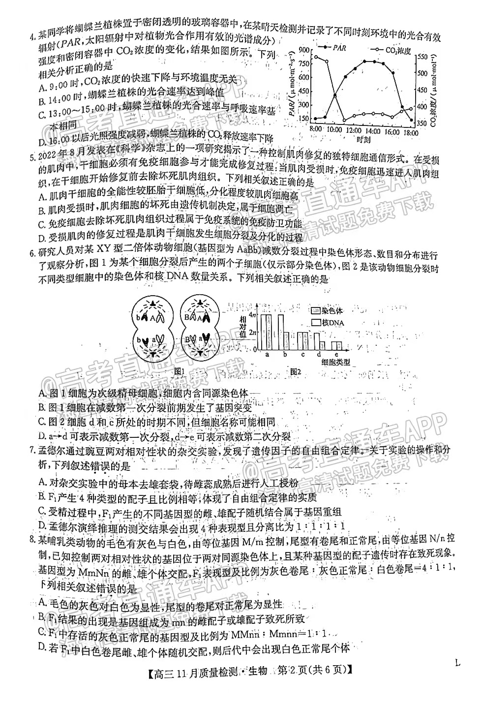 1.2023江西九师联盟高三11月联考生物试卷详情