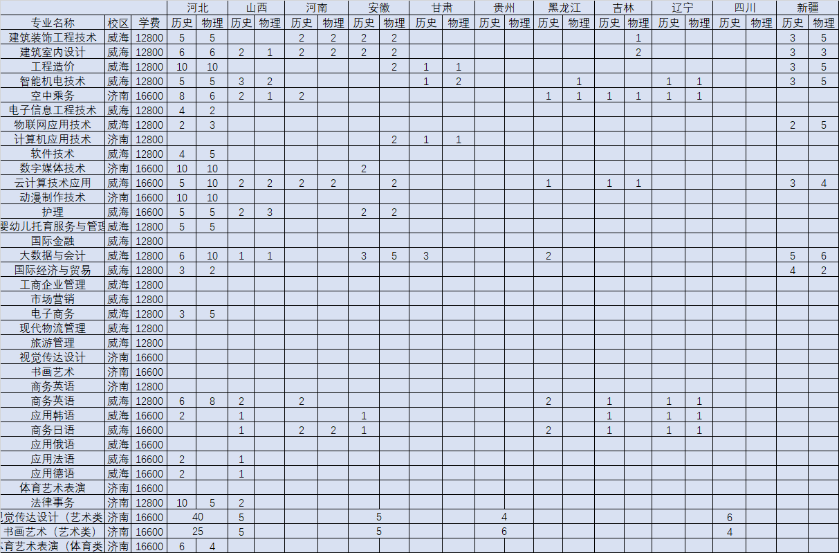 5、在吉林省共招生10人,专业有商务英语、空中乘务、建筑室内技术等。