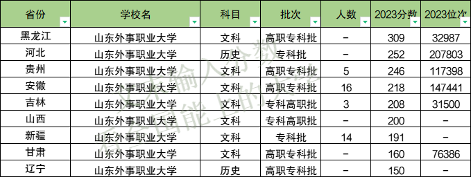 本期篇幅有限只能列举部分地区,各位可以在圆梦志愿APP查看山东外事职业大学的历年分数线、招生人数、就业、学费等内容。