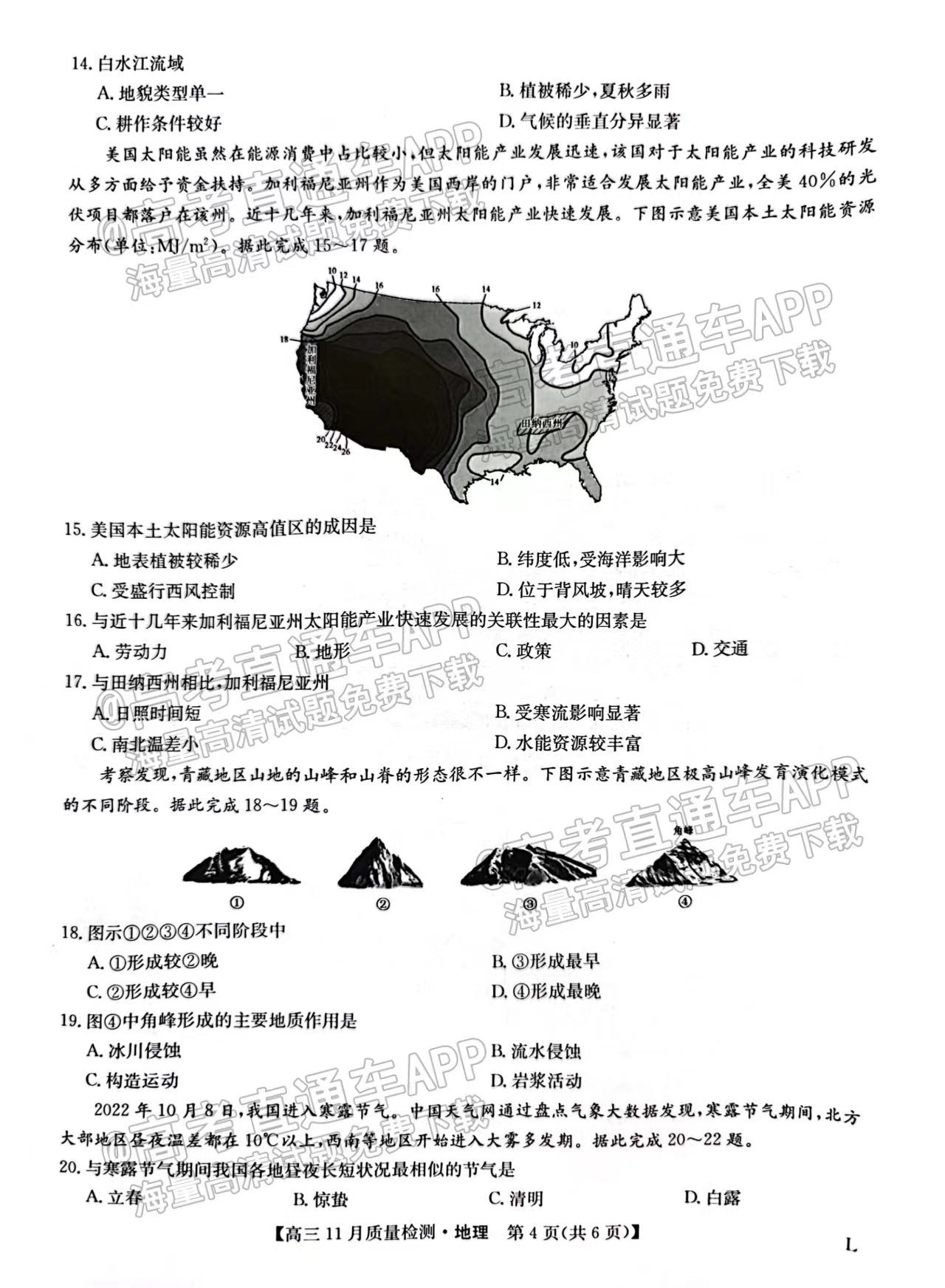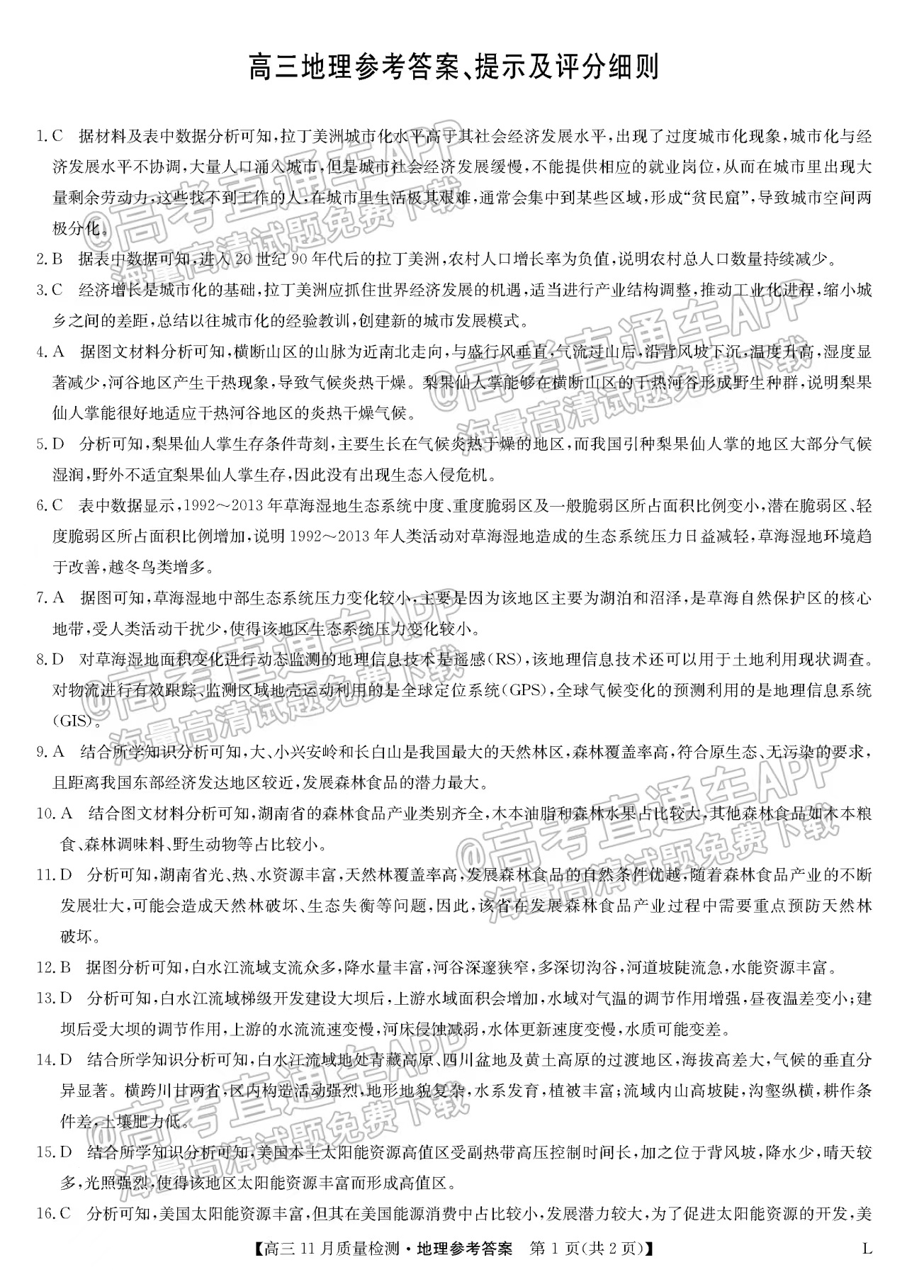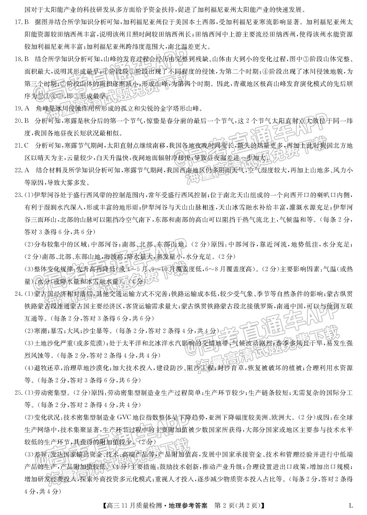 二、2023江西九师联盟高三11月联考地理答案汇总