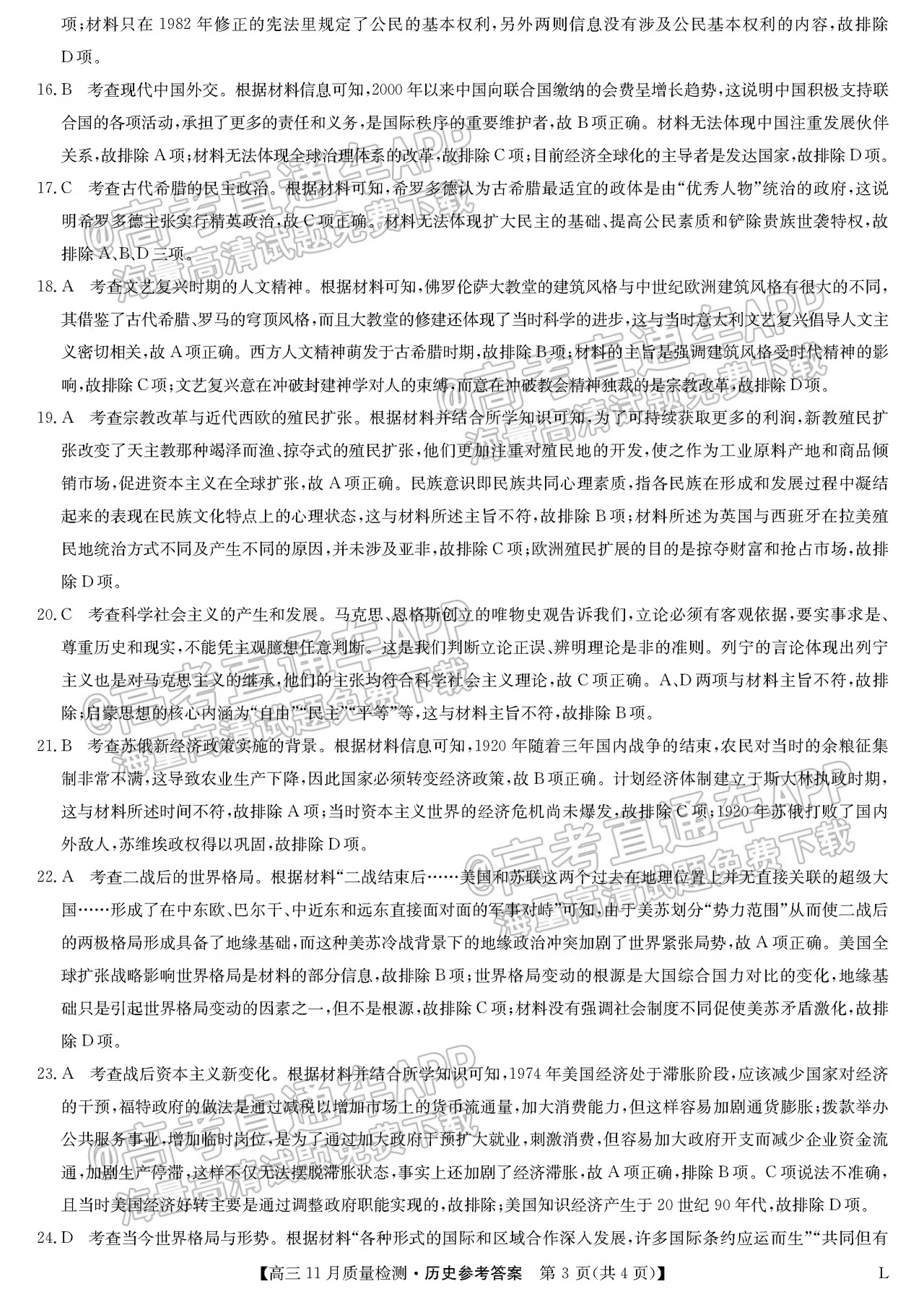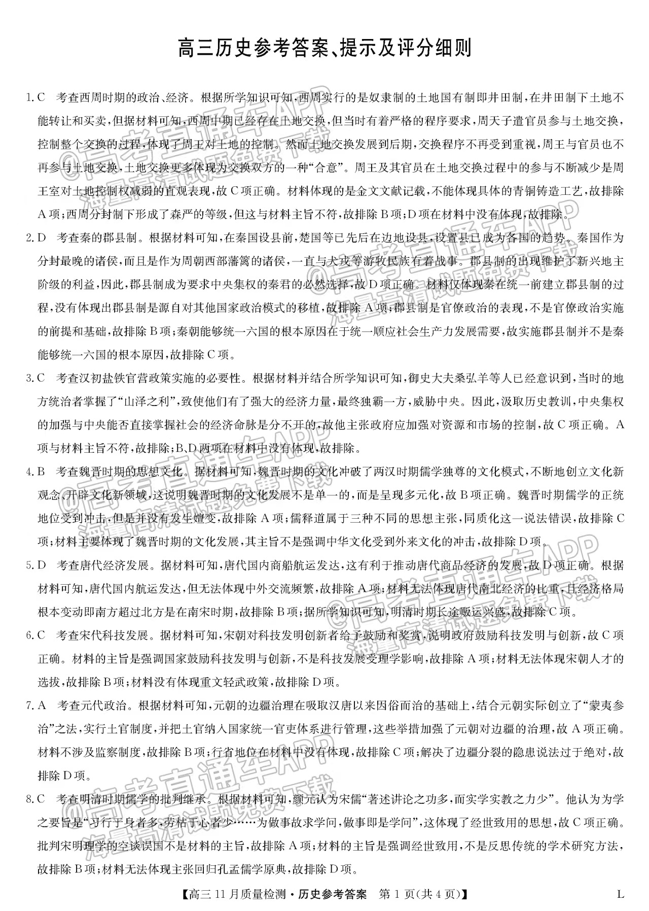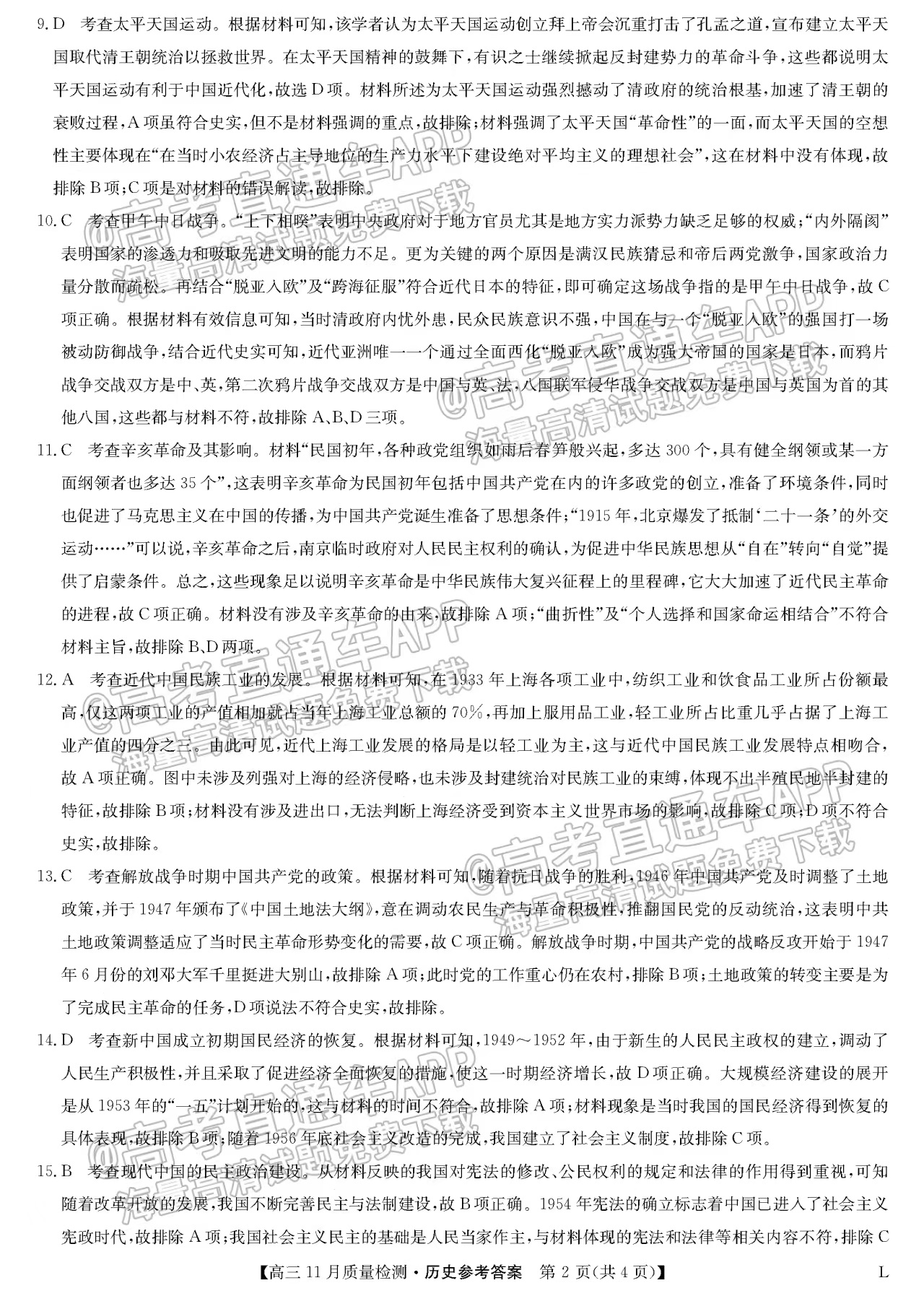 二、2023江西九师联盟高三11月联考历史答案汇总