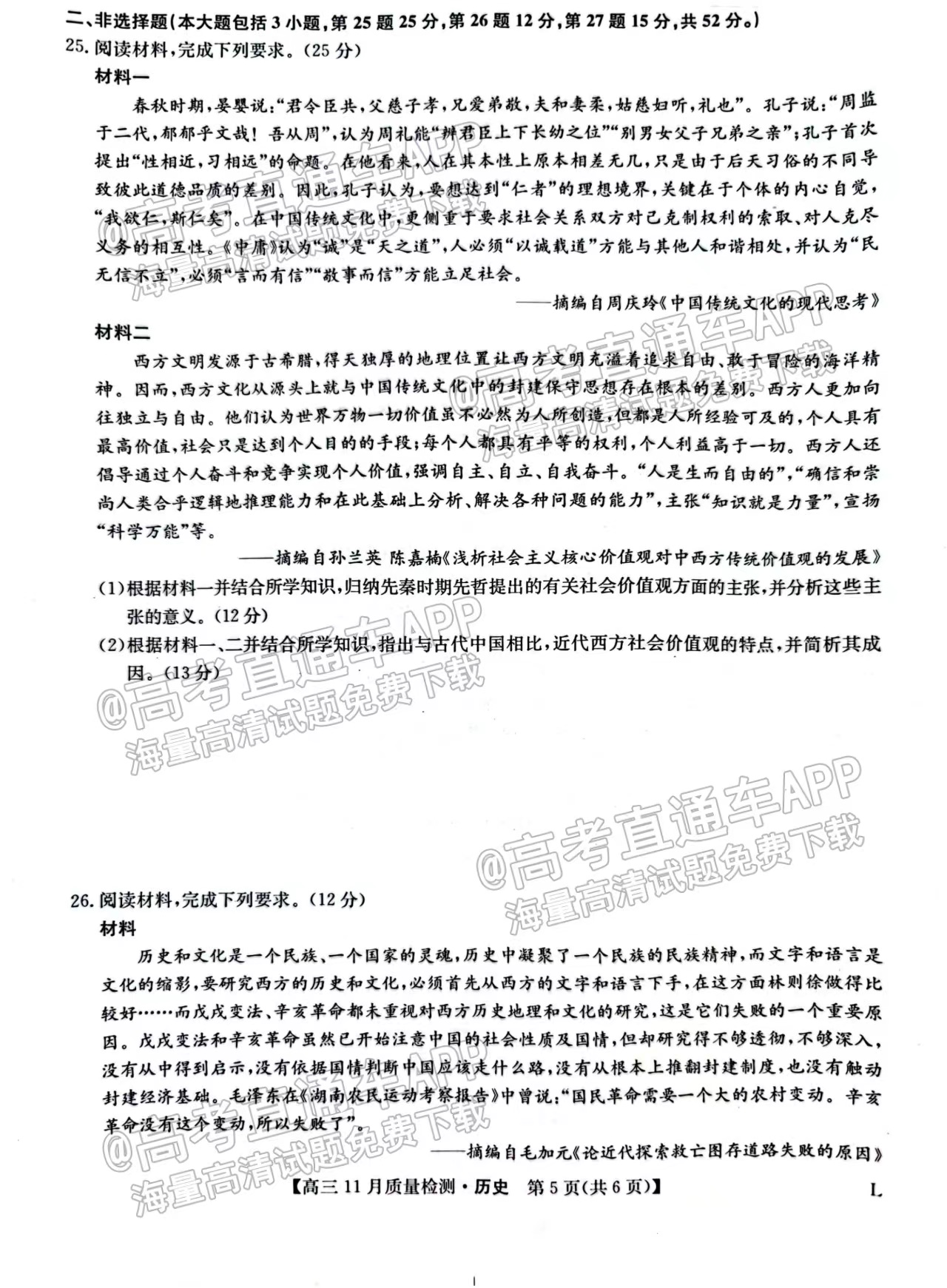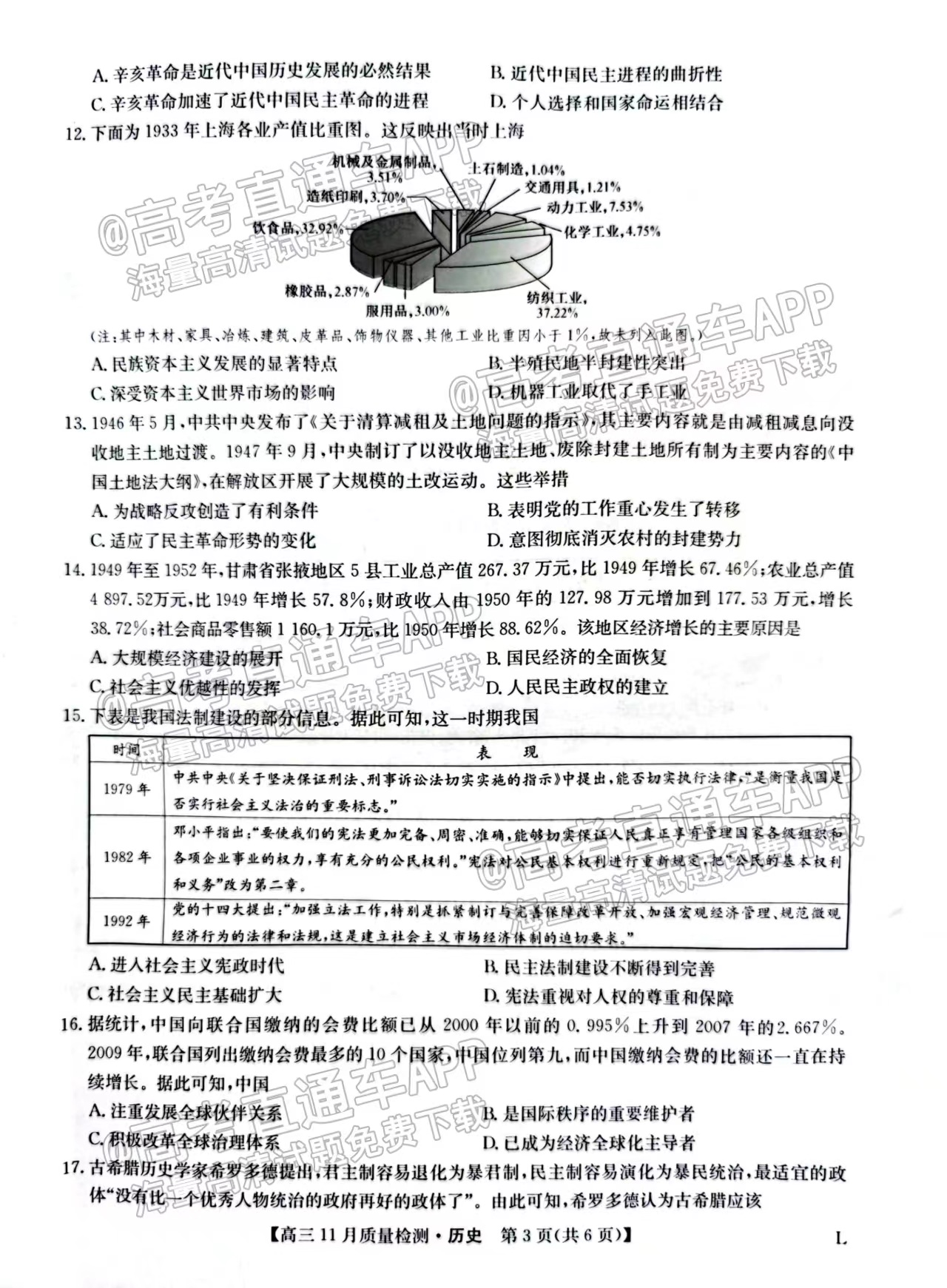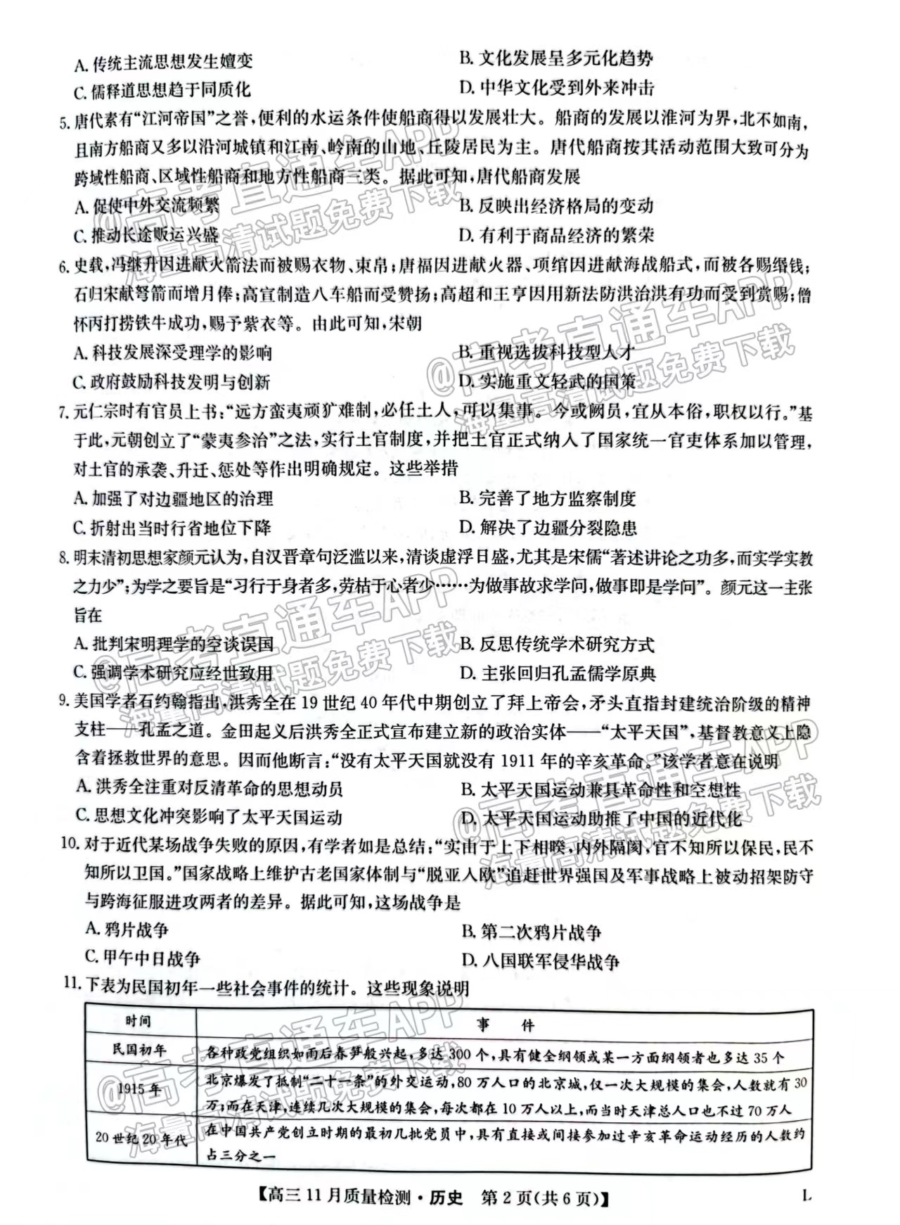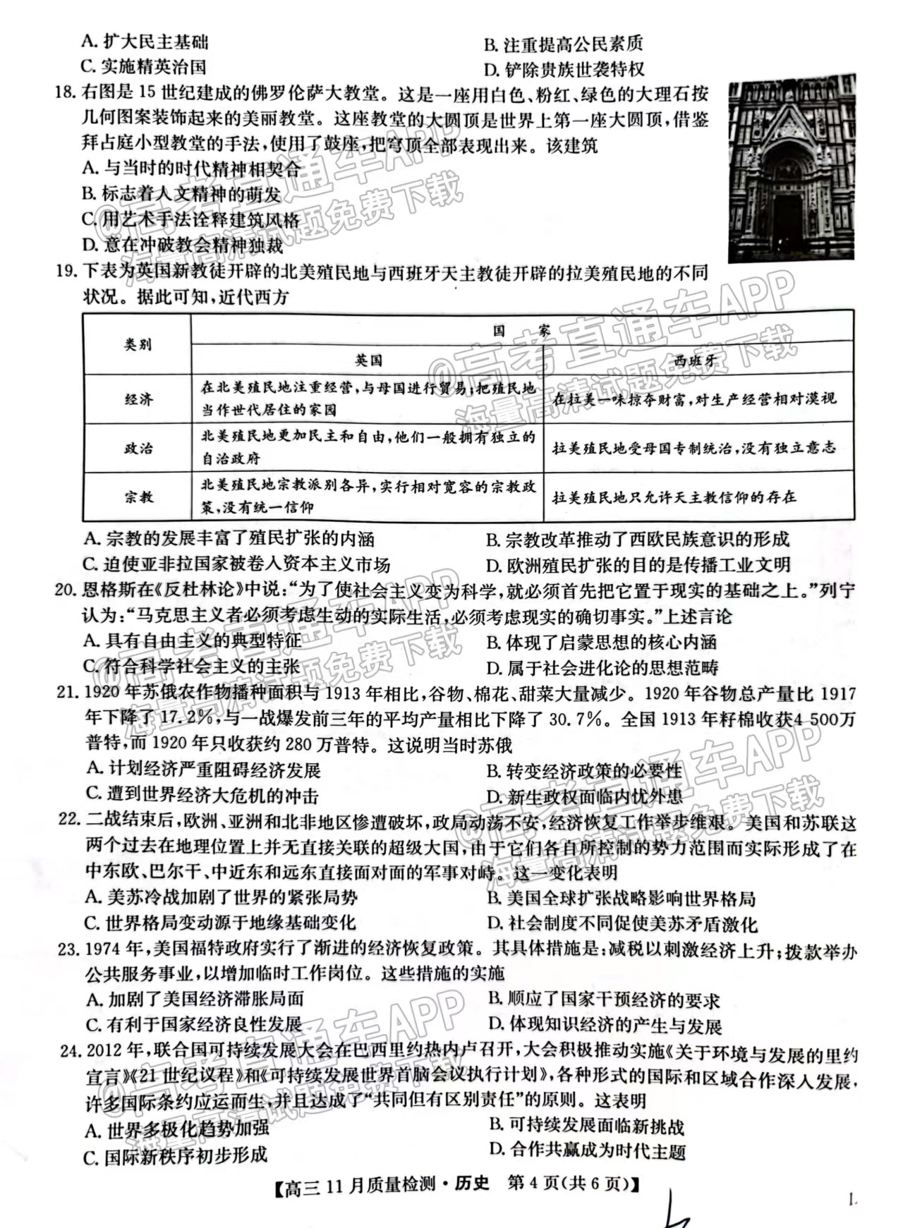 二、2023江西九师联盟高三11月联考历史答案汇总