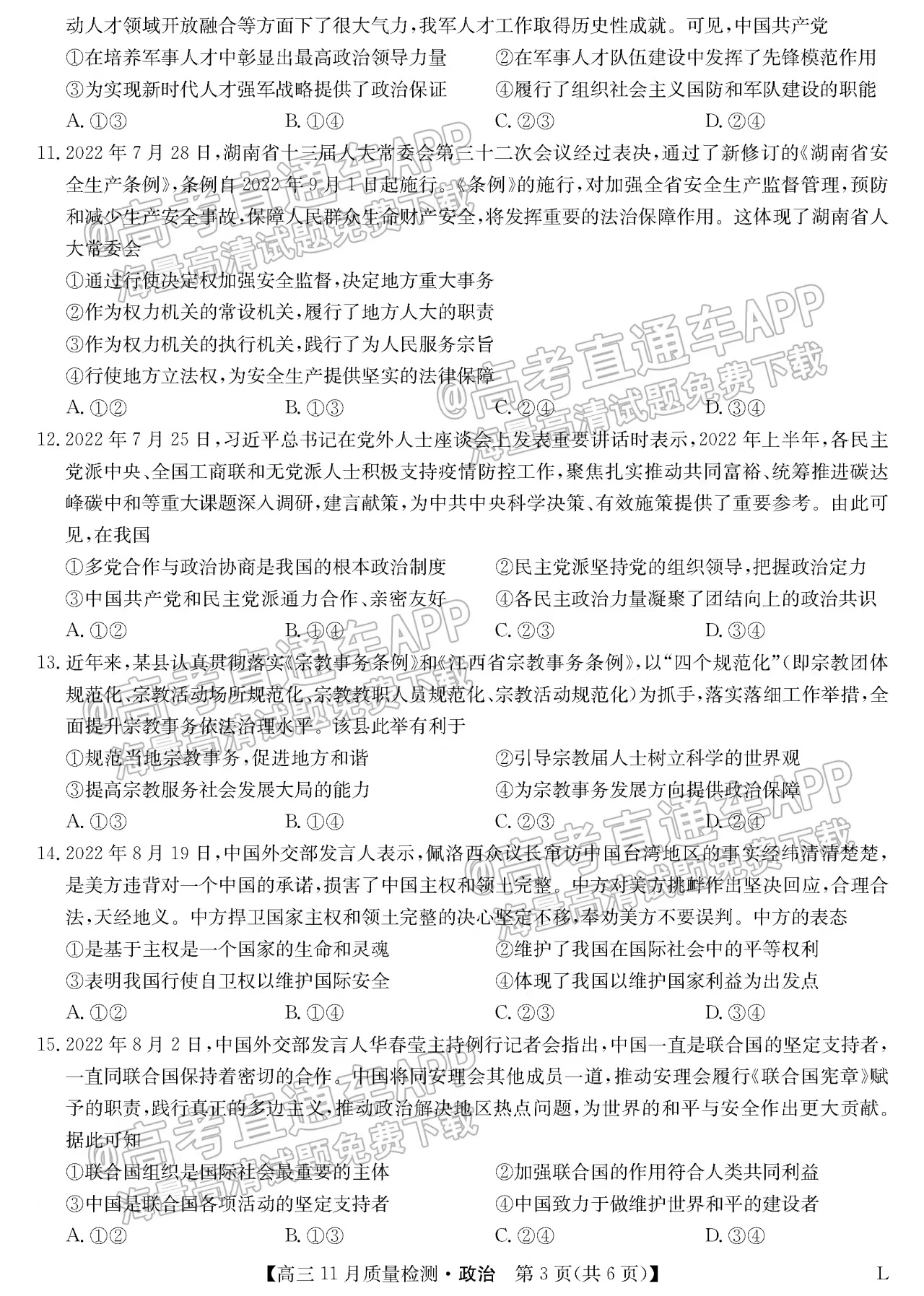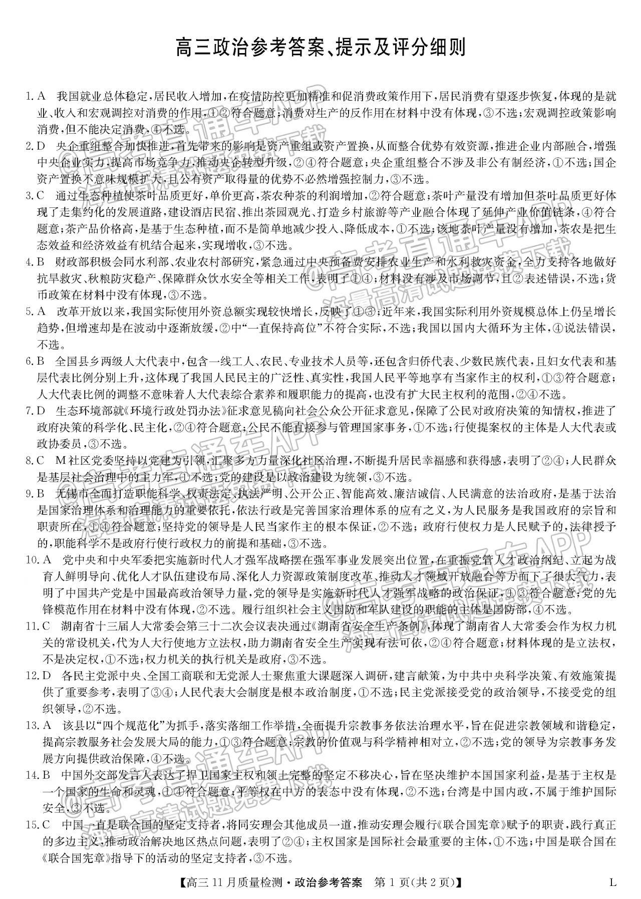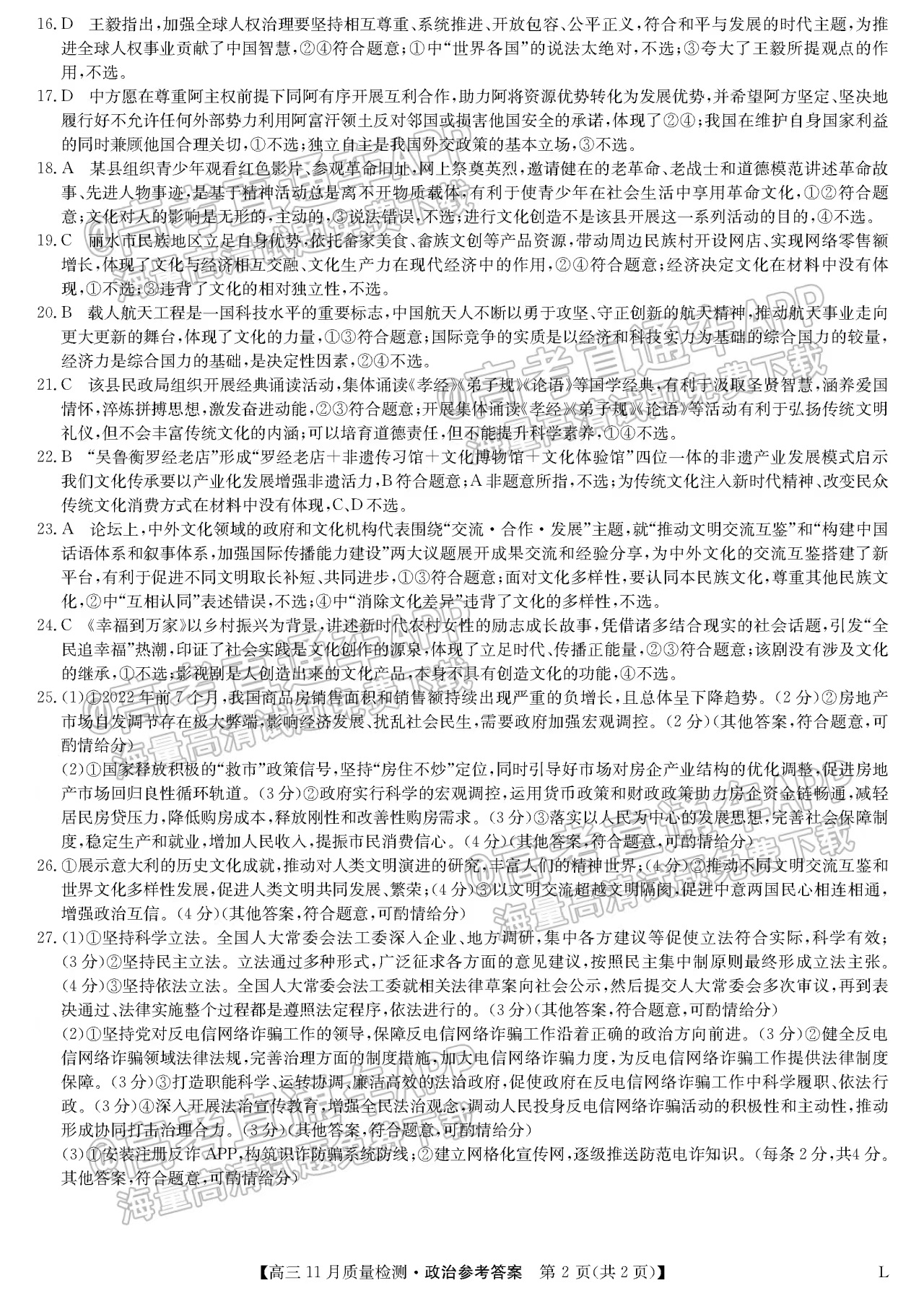 二、2023江西九师联盟高三11月联考政治答案汇总