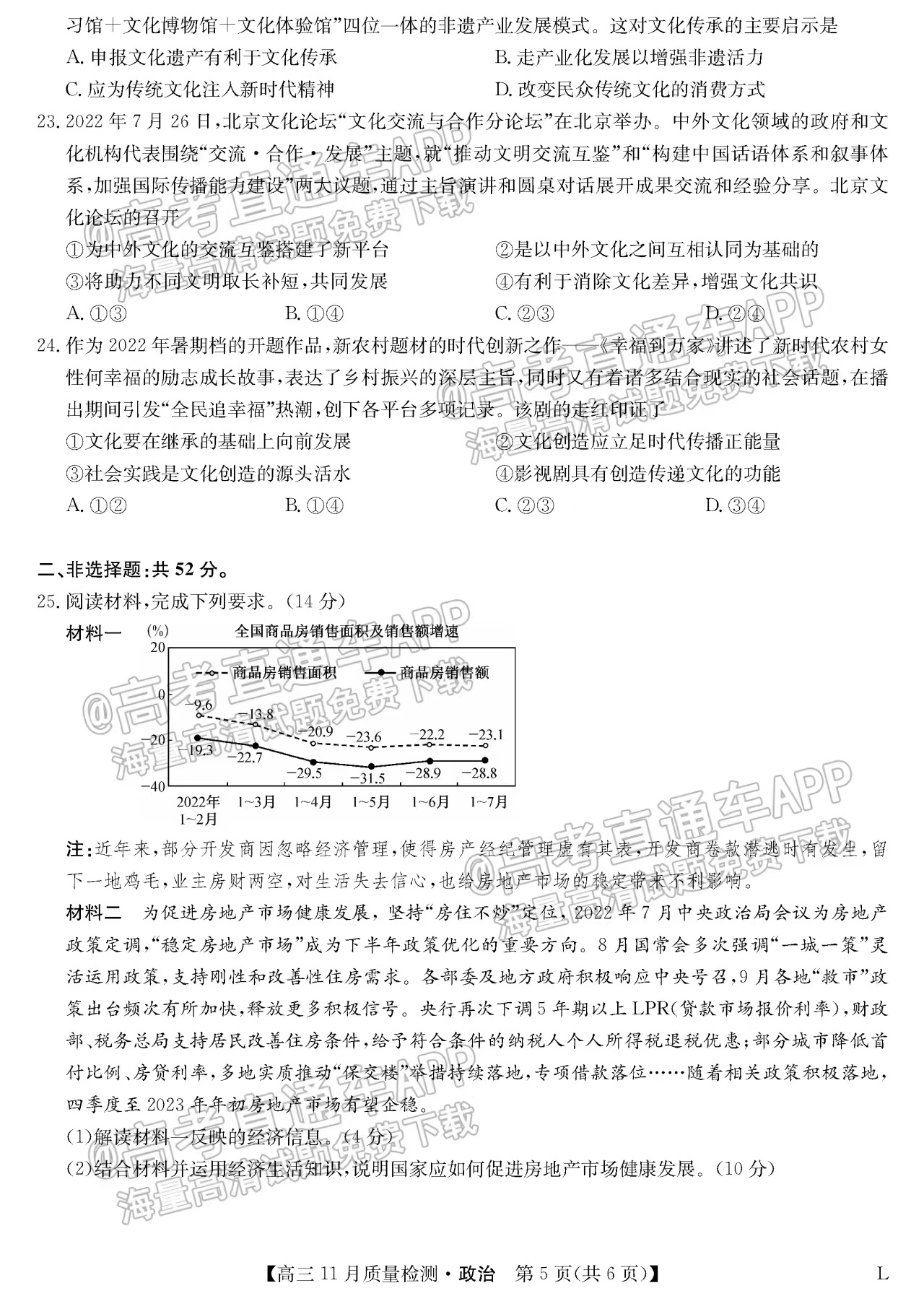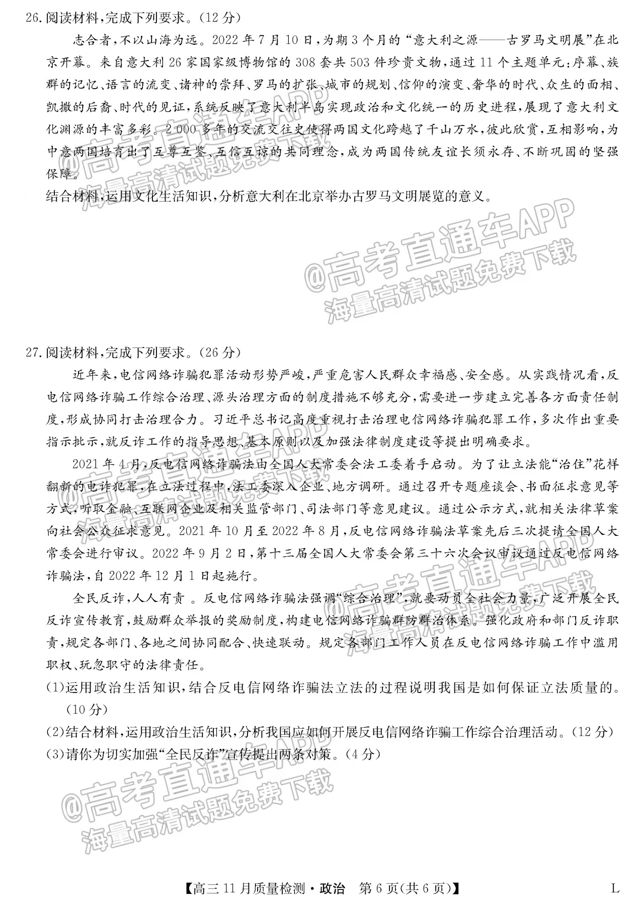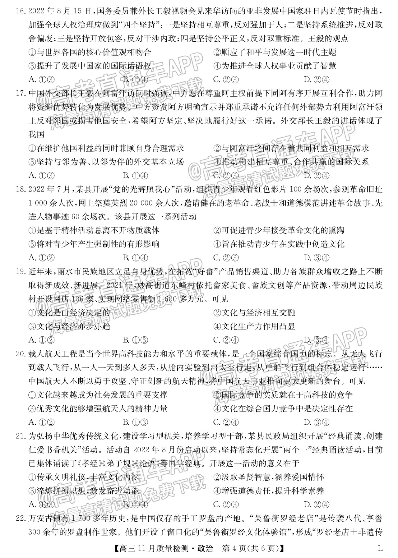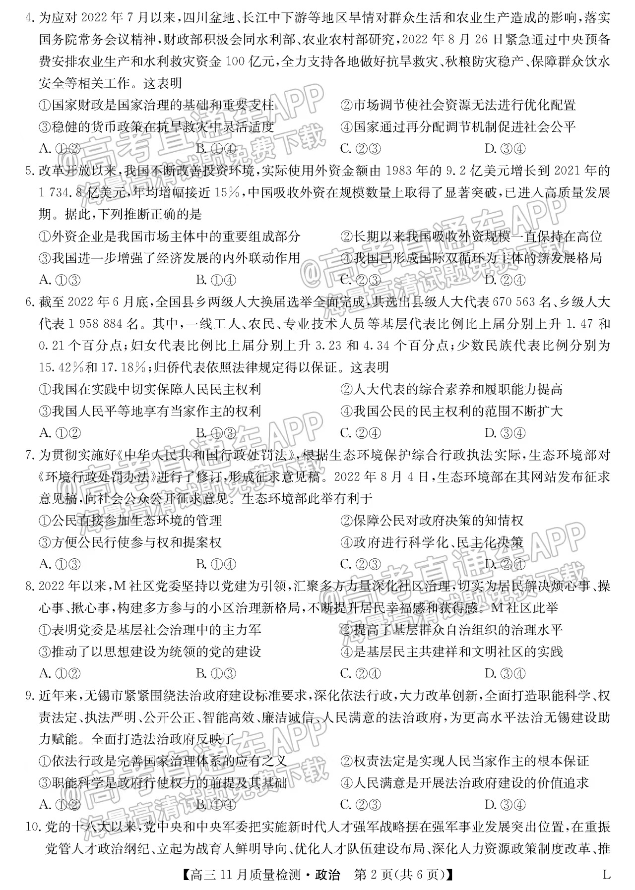 二、2023江西九师联盟高三11月联考政治答案汇总