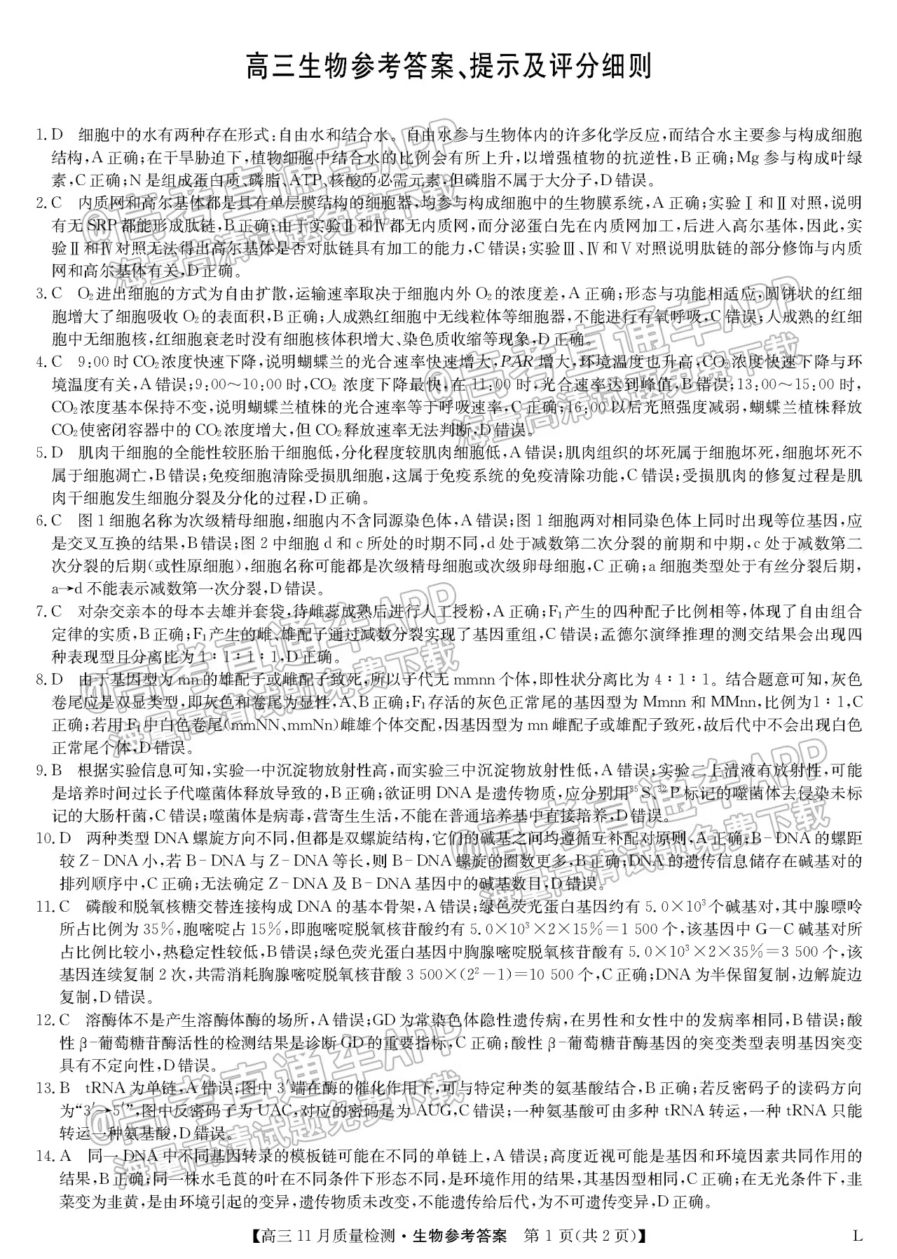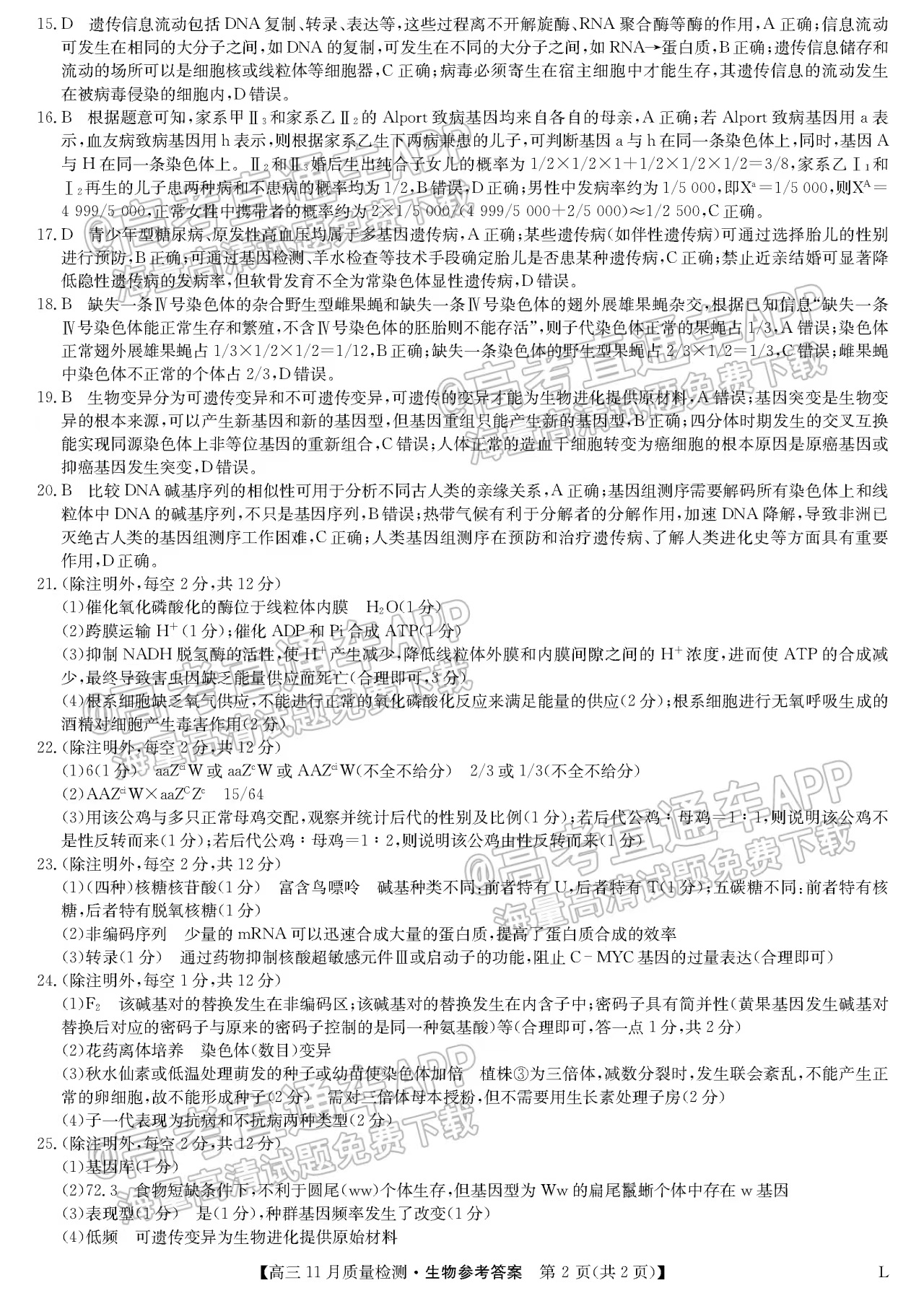 二、2023江西九师联盟高三11月联考生物答案汇总
