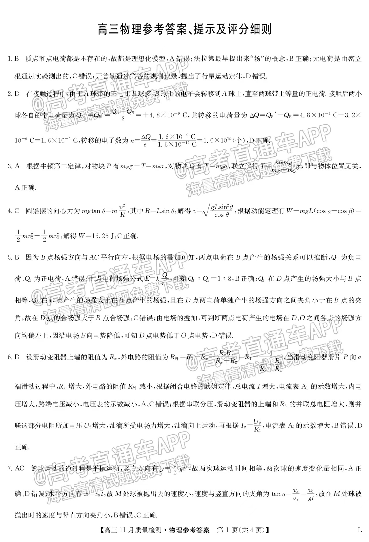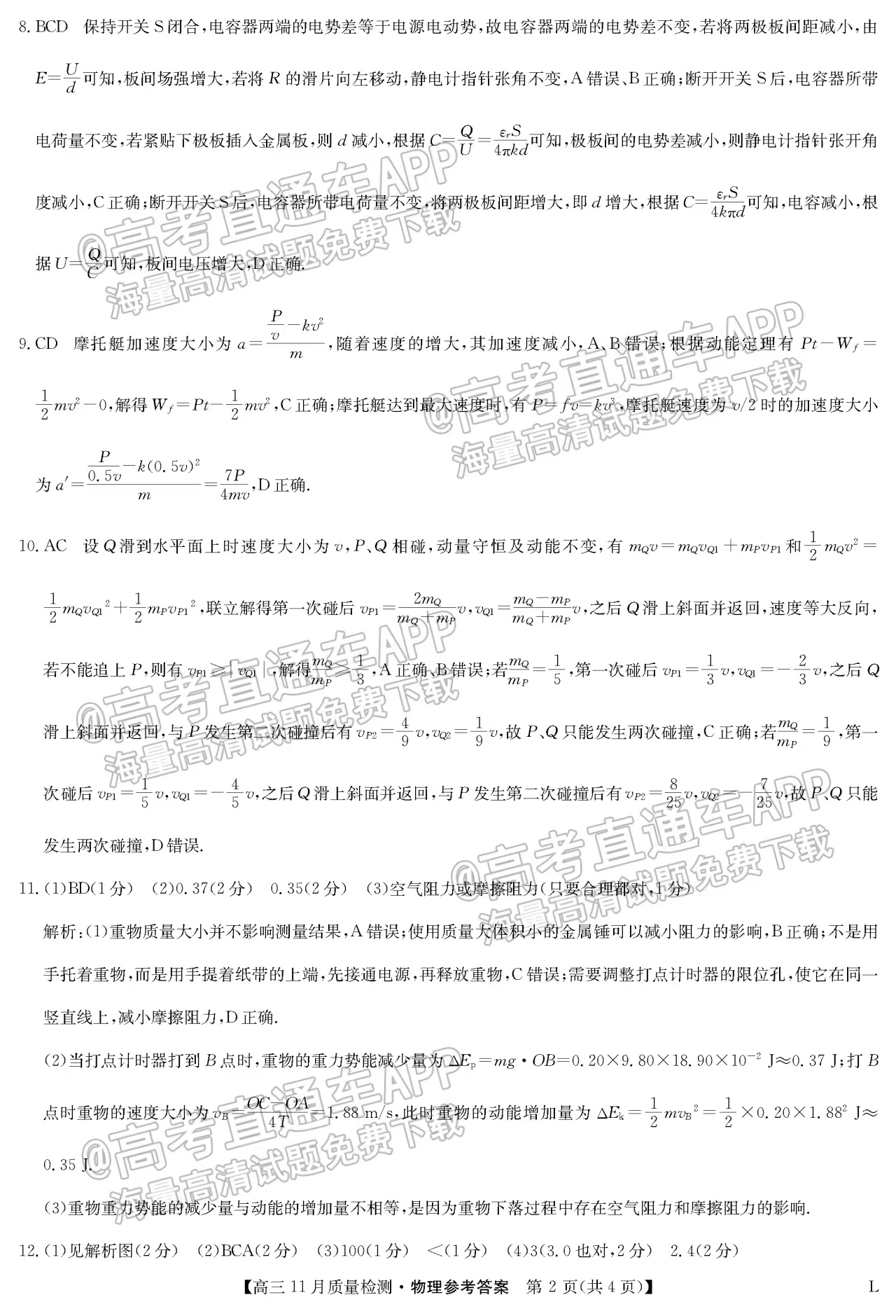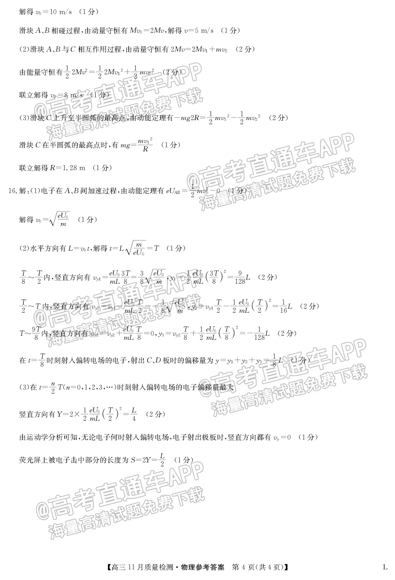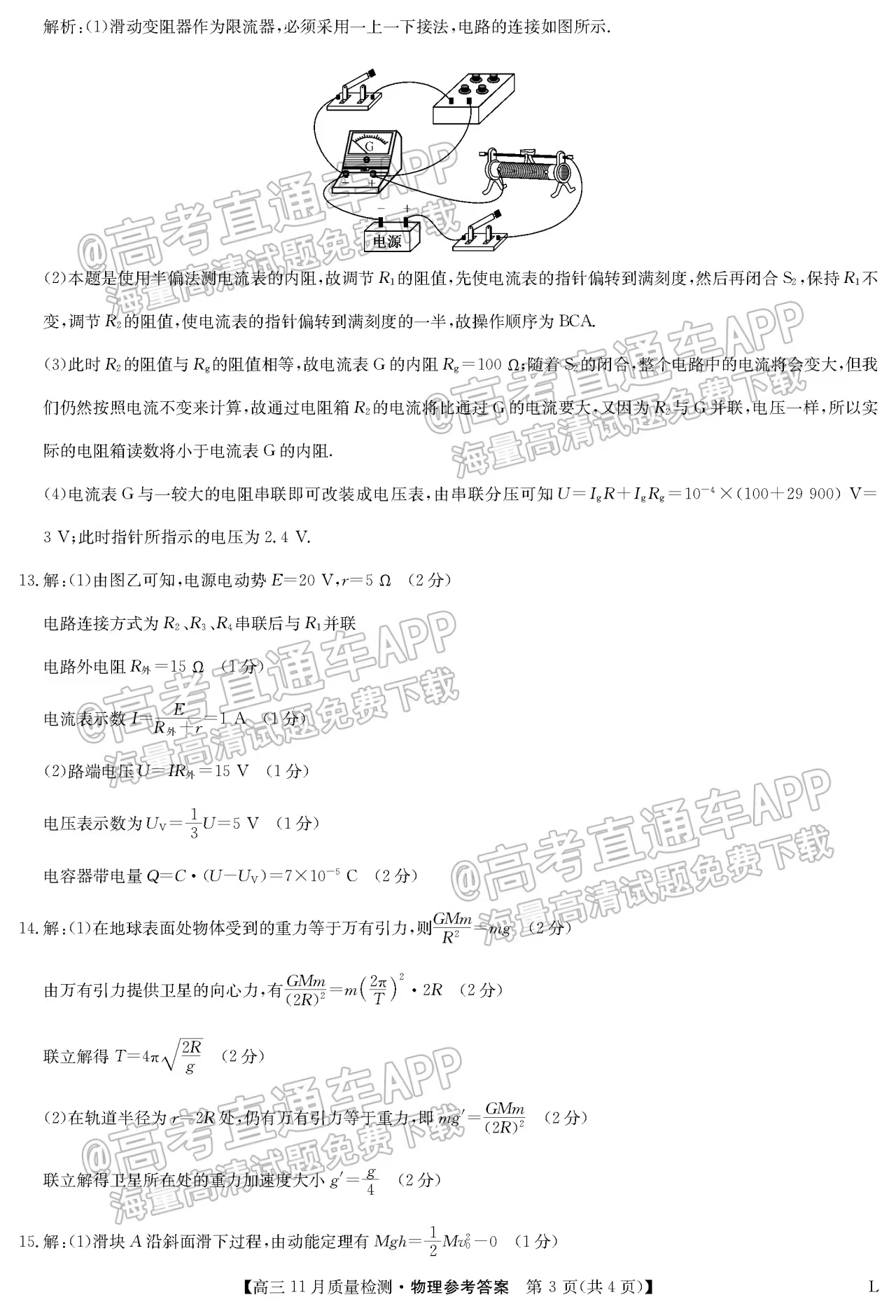 二、2023江西九师联盟高三11月联考物理答案汇总