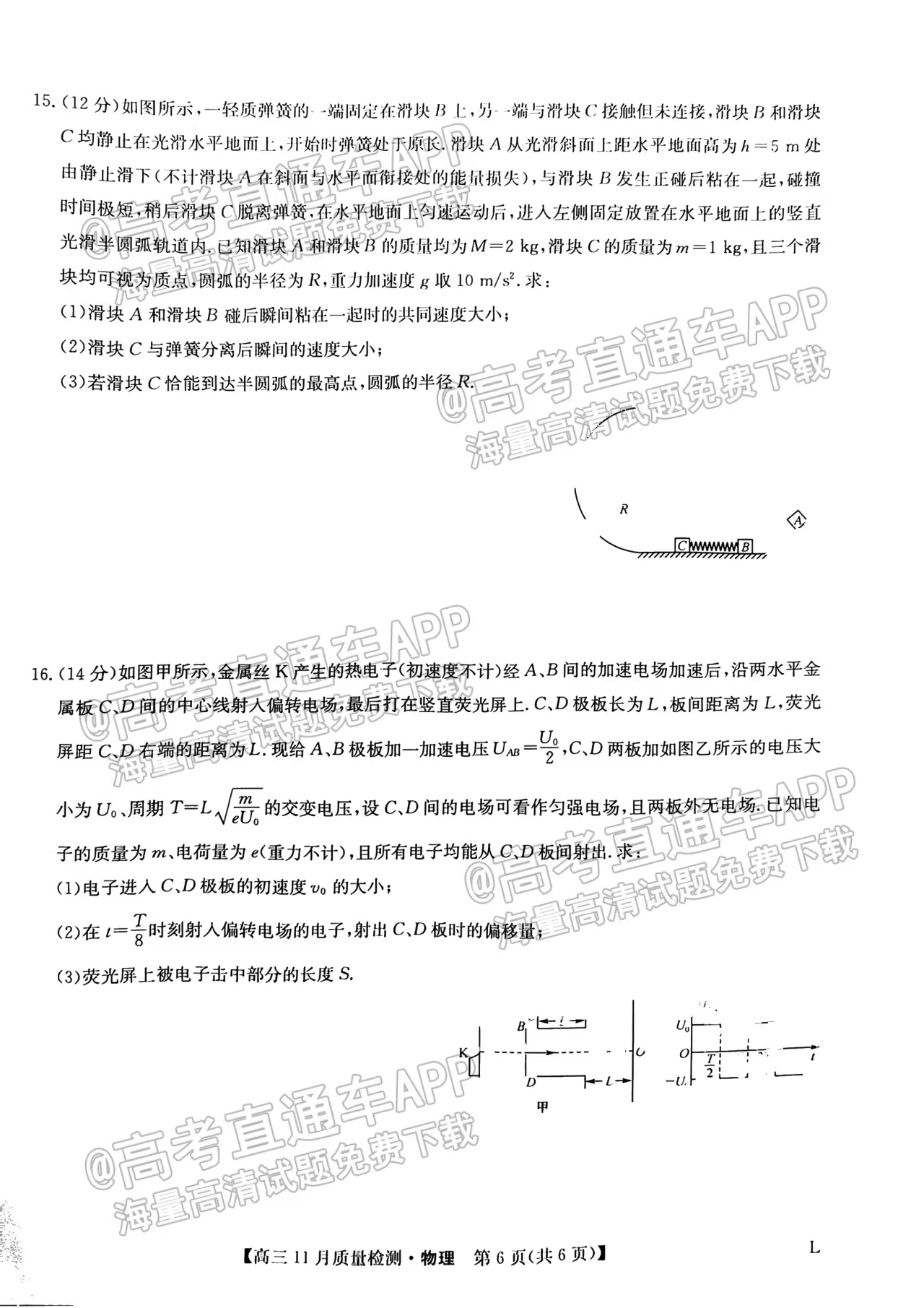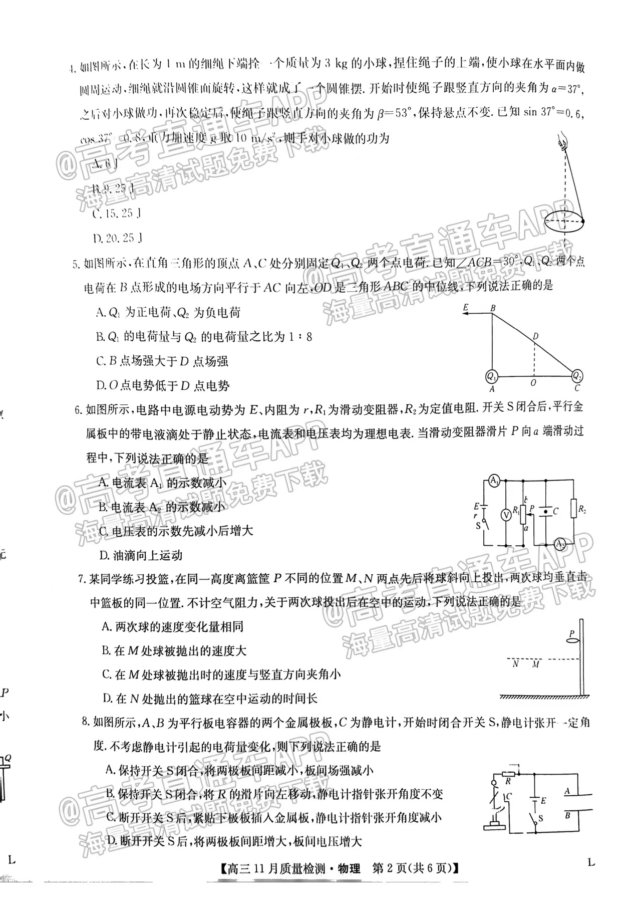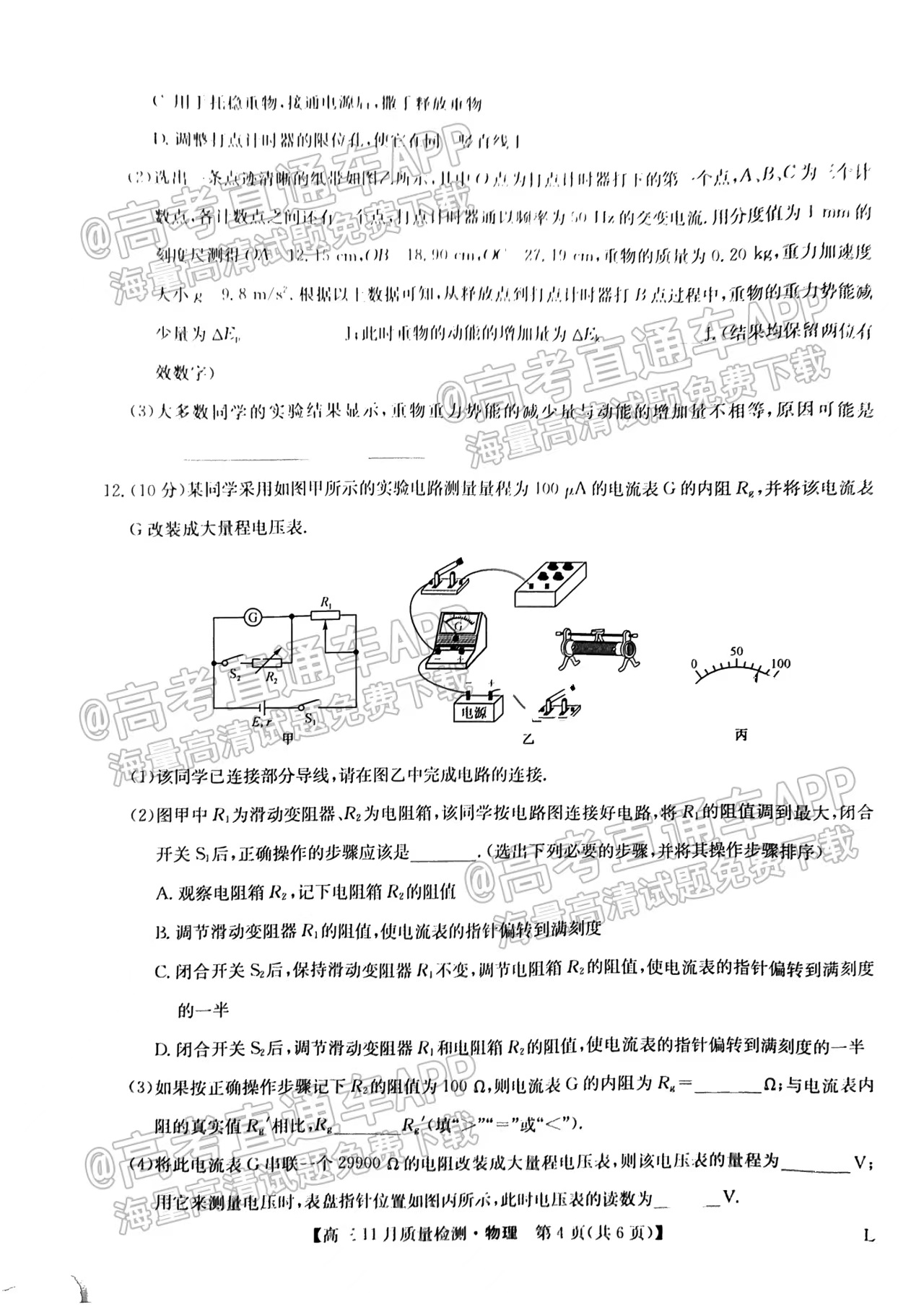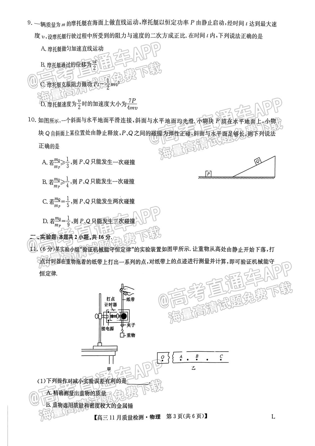 二、2023江西九师联盟高三11月联考物理答案汇总