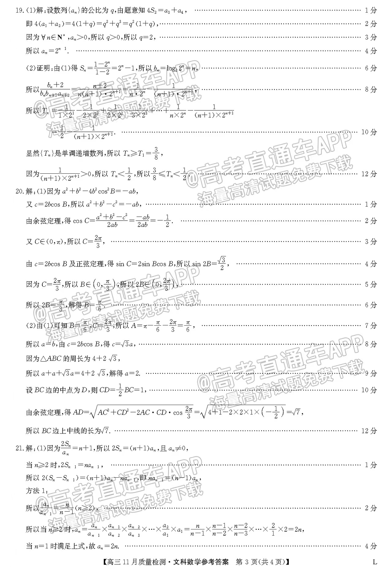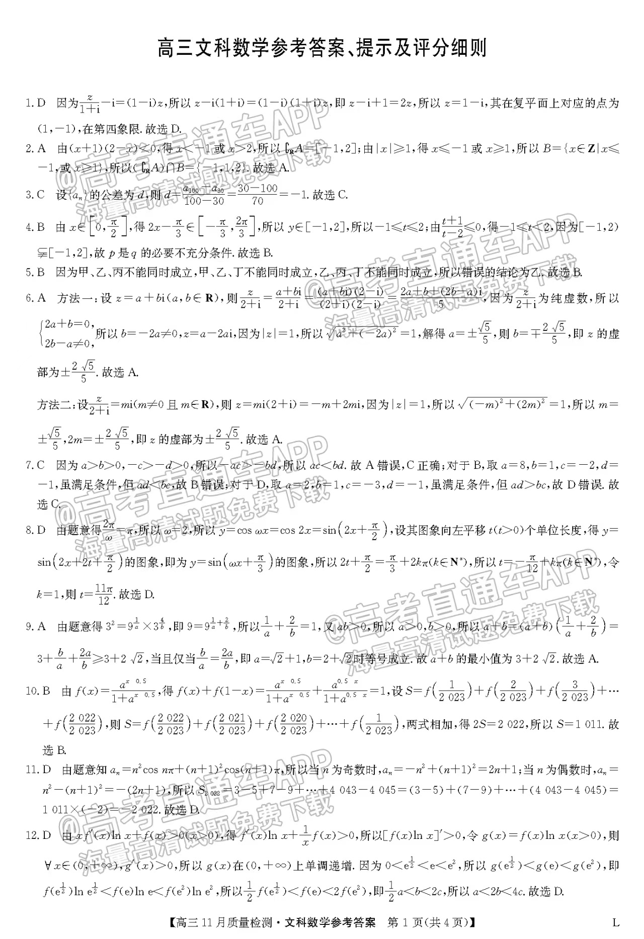 二、2023江西九师联盟高三11月联考文科数学答案汇总