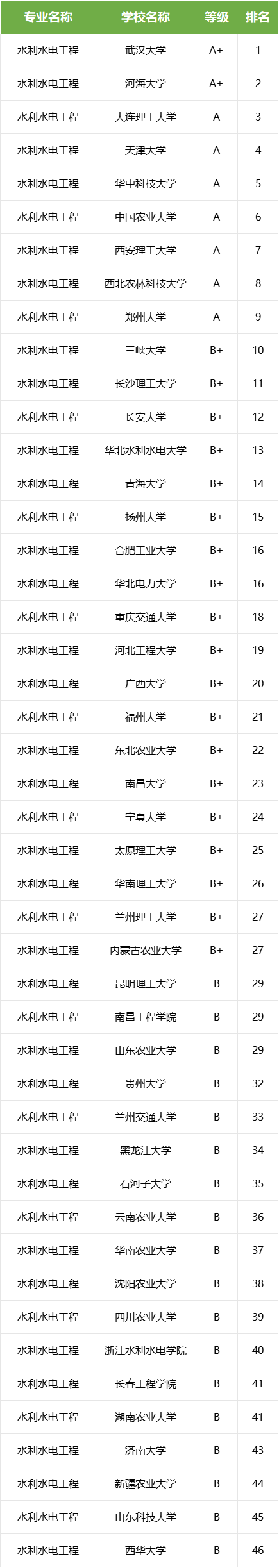下表为2023年软科中国大学水利水电工程专业排名,各位同学可以用来参考各大学水利水电工程专业的实力。