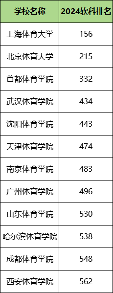 排名是考生择校的重要因素之一,根据体育类大学在软科2024年的排名来看,各校情况如下。