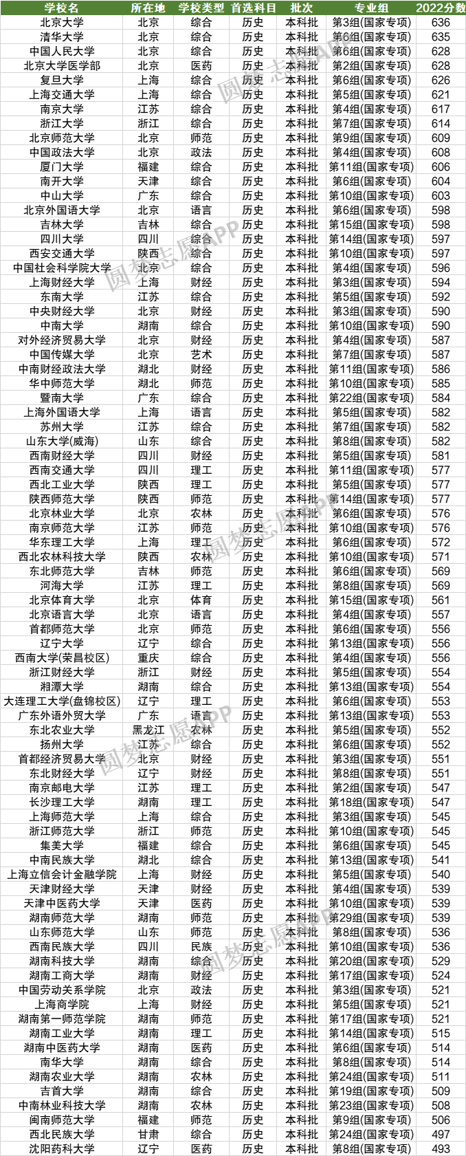 以上5所大学,2022年在湖南高考统招中,历史类最低分数分别为640分、650分、632分、632分(北京大学医学部在湖南省历史类仅招收国家专项)。