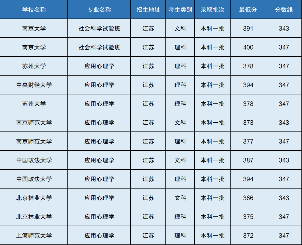 应用心理学的专业分数线一般较高,这进一步表明应用心理学专业的报考人数多,并非冷门专业。以19年的江苏省高考为例,以下各学校在江苏招录的应用心理学专业均超过一本线20分以上。