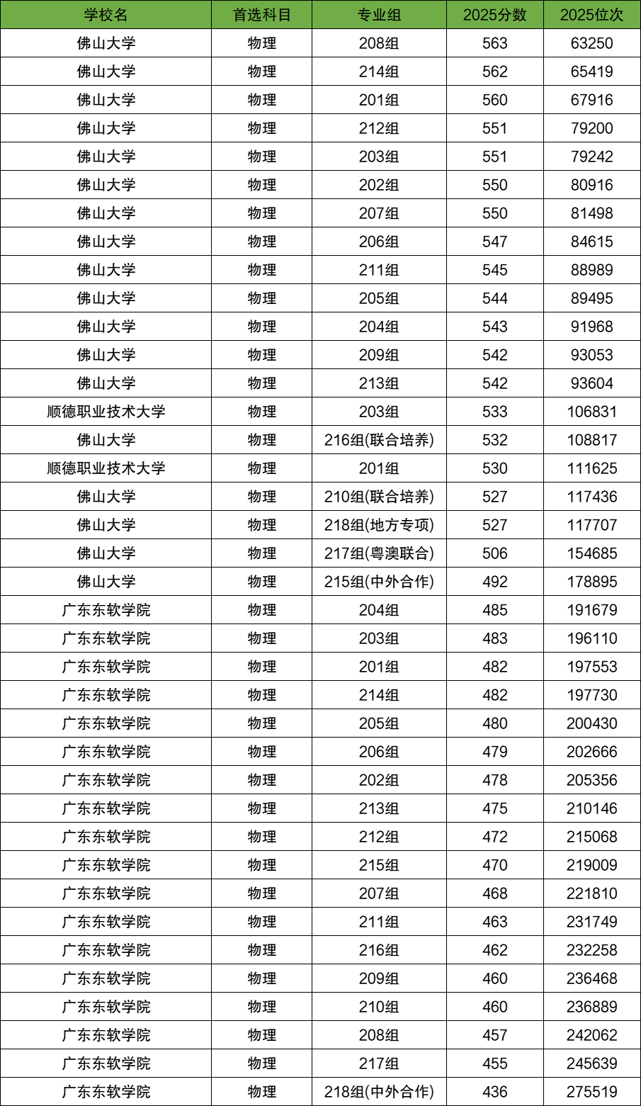 2025年佛山本科各大学专业组录取分数线(物理类):