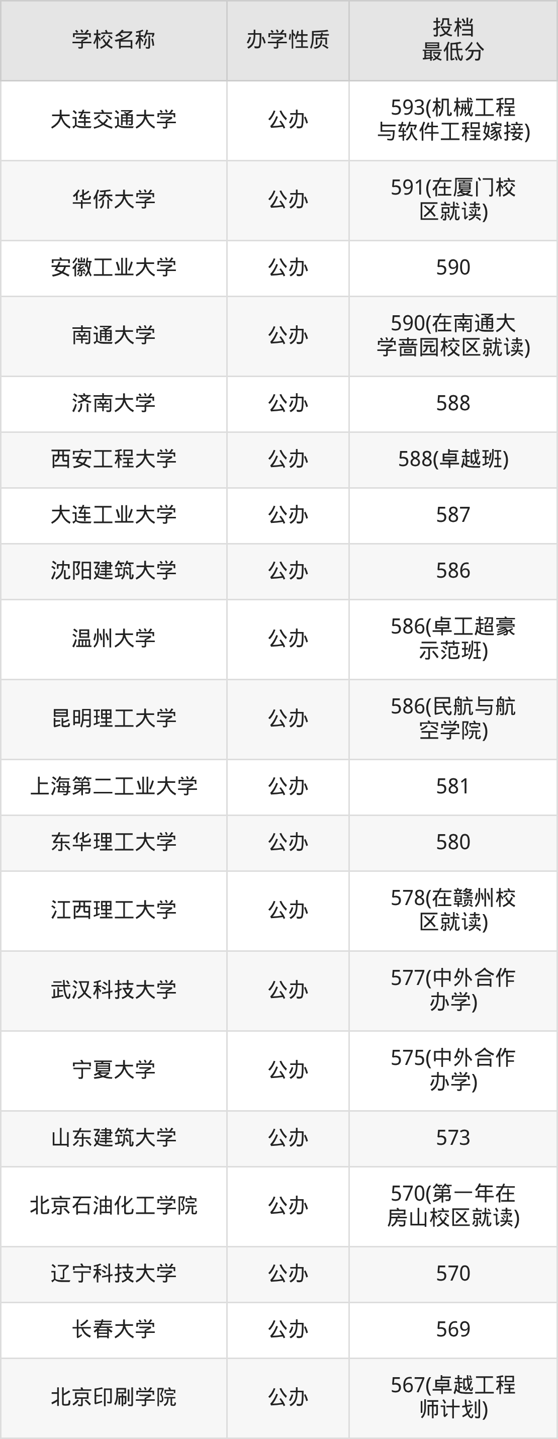 下面是2025年全国所有大学机械工程专业录取分数线一览表(按照分数线从高到低排名):