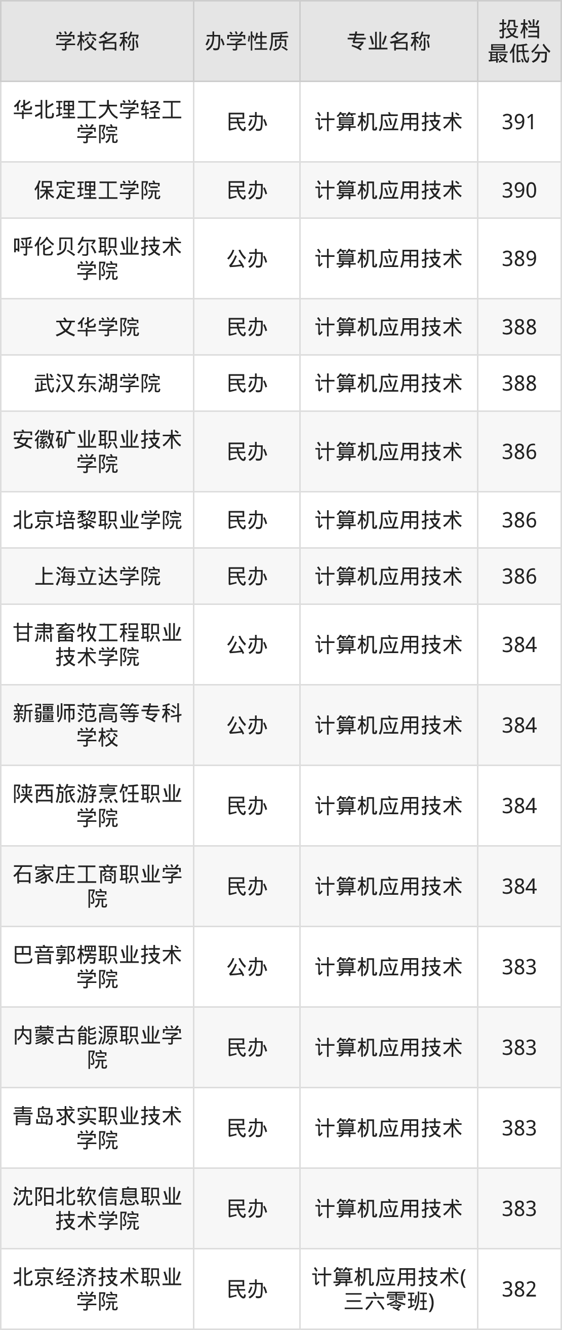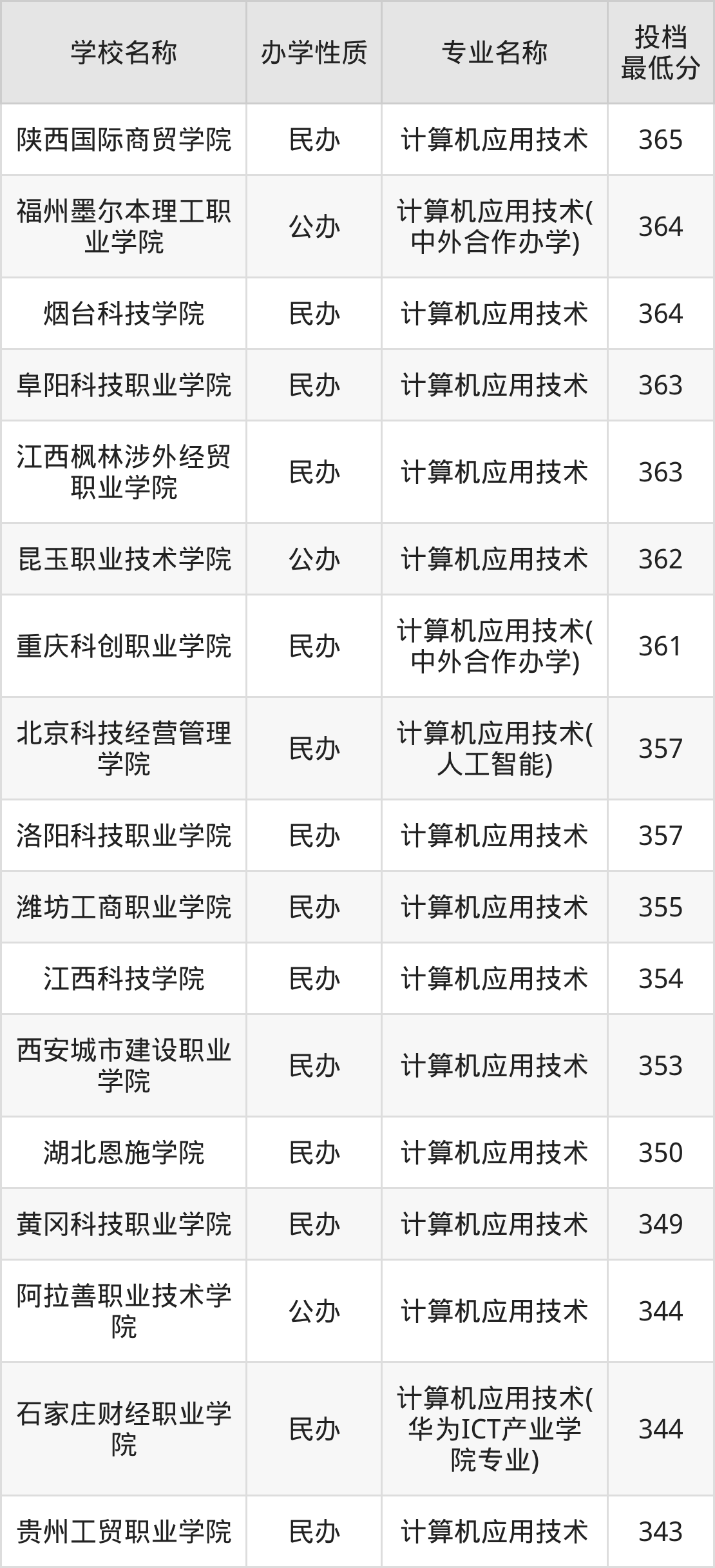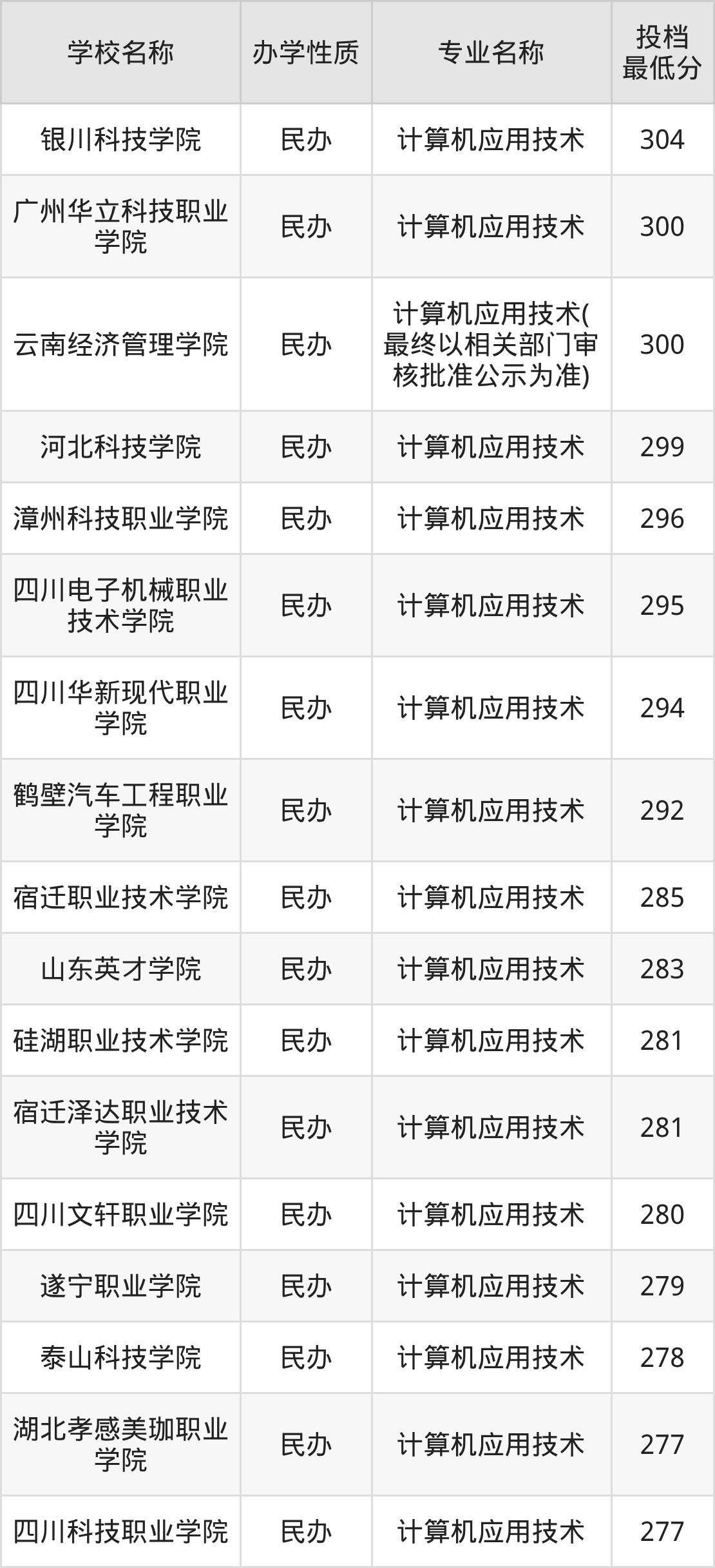 一般来说,计算机应用技术都需要200分以上才能被录取,当然分数线因省份、科类而不同。从河北省2025年的招录数据来看,2025年计算机应用技术专业最低分是201分,而河北省专科线是200分,意味着考生至少需超过专科线1分才能上。