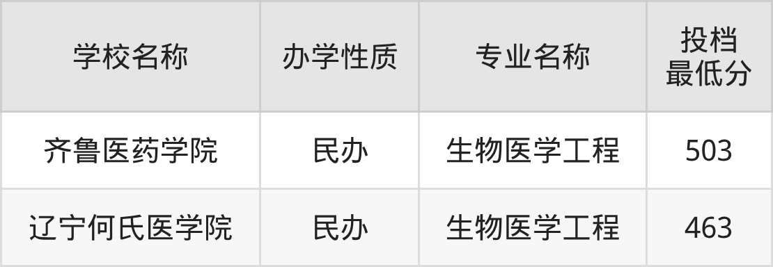 500分左右的生物医学工程大学有:齐鲁医药学院503分。