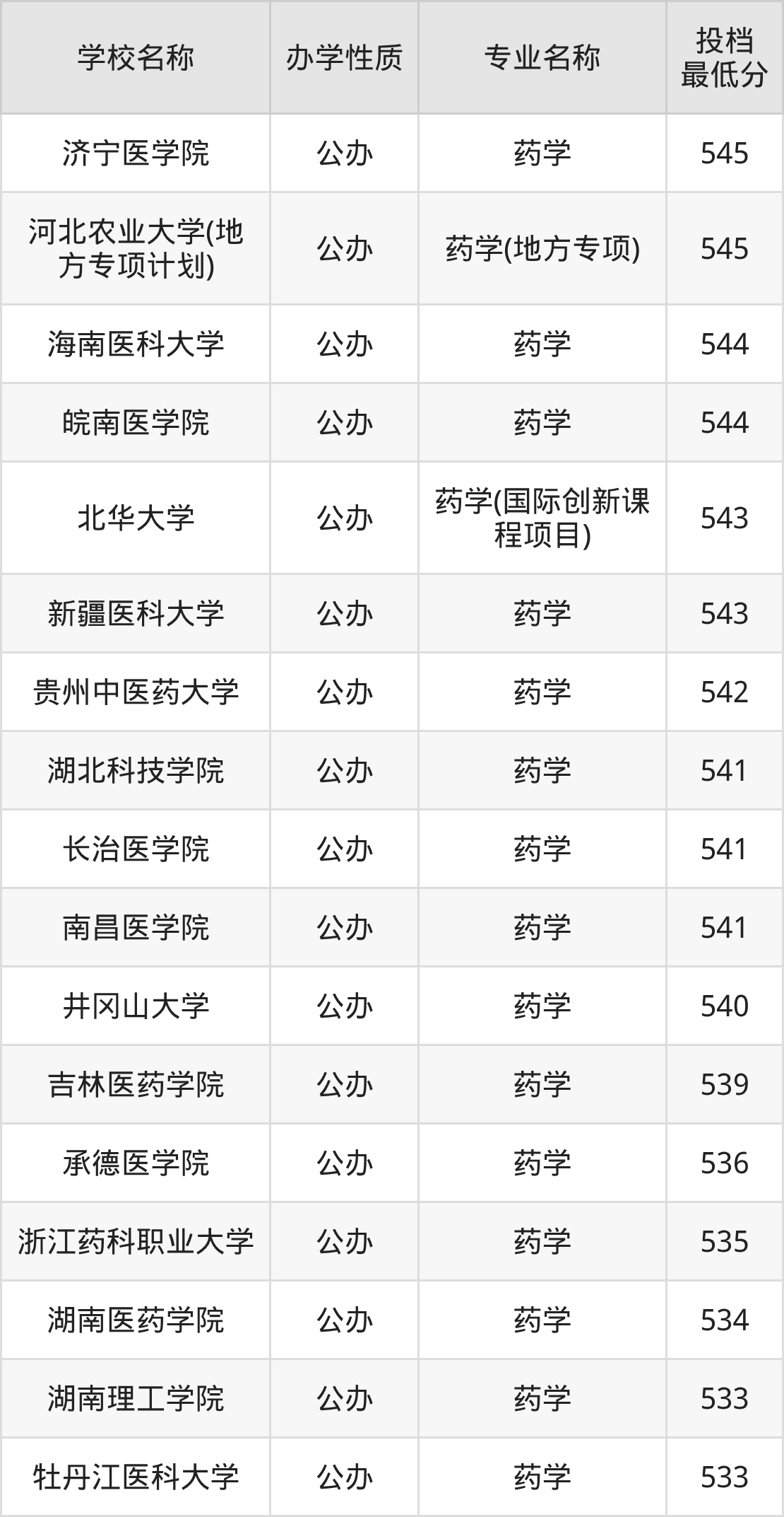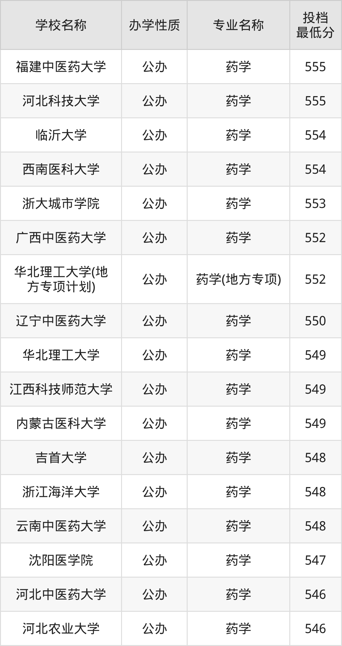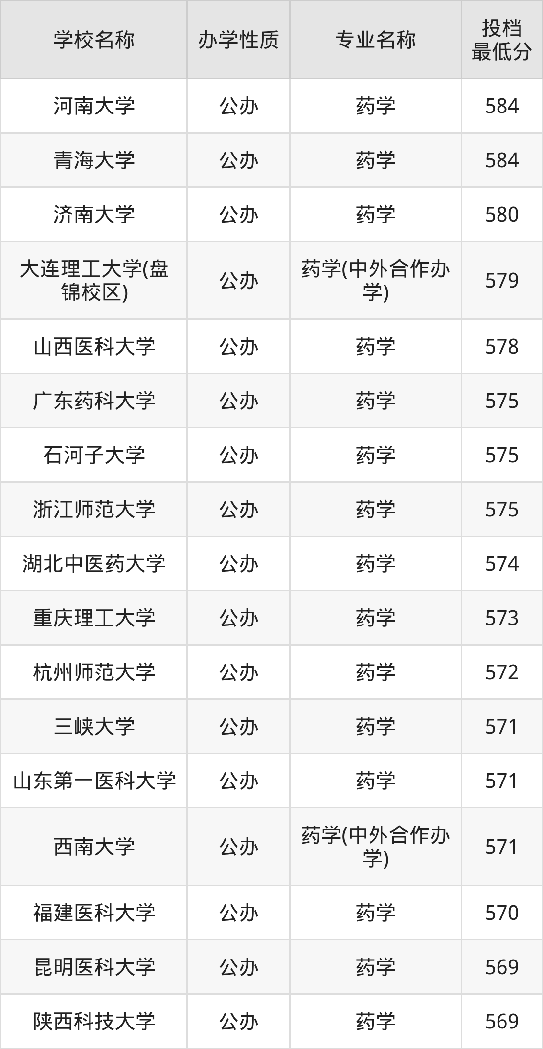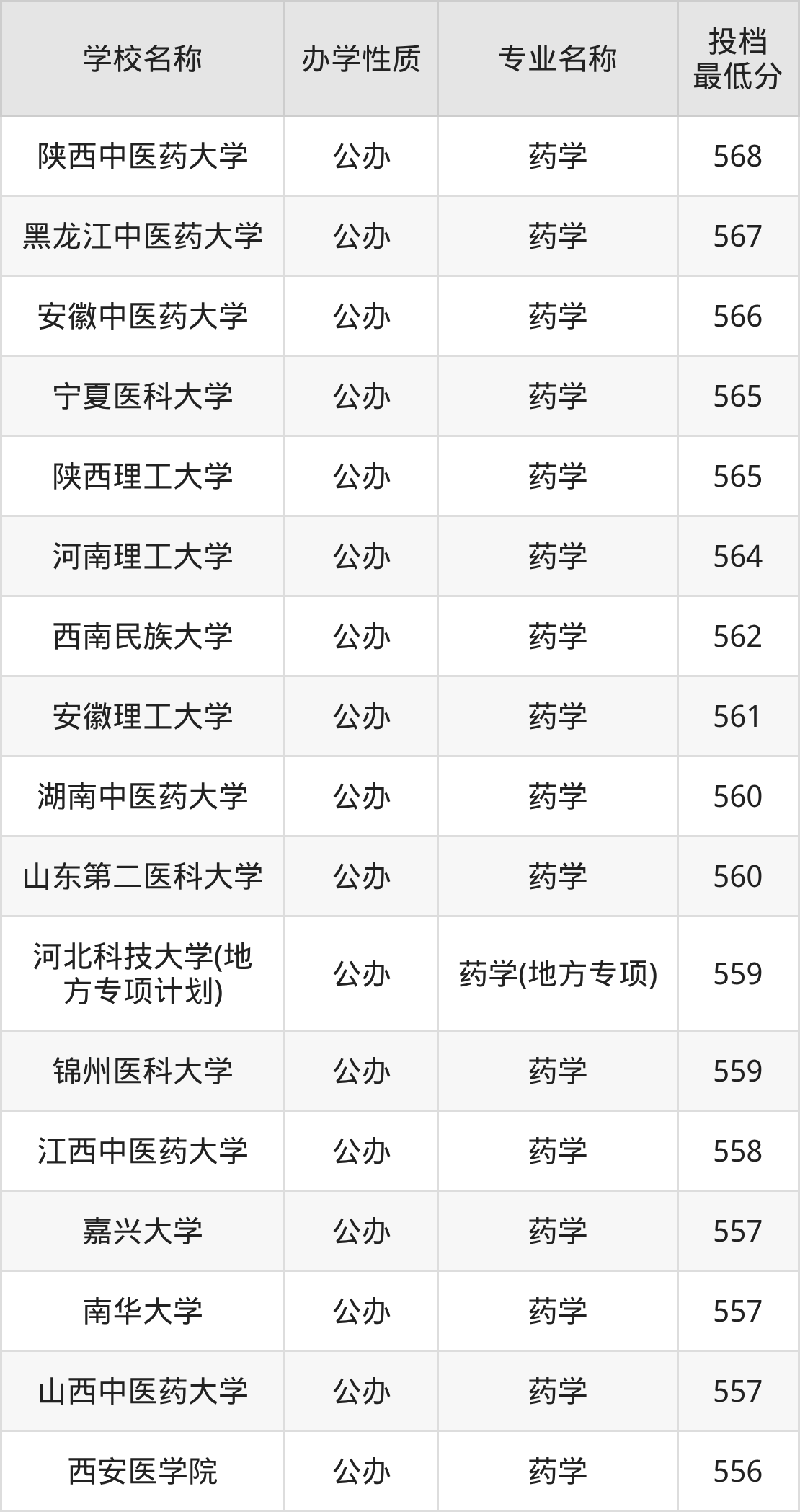 下面是全国各个大学药学专业最低录取分数线排名一览表,考生可根据自己的分数情况选择合适的学校报考。