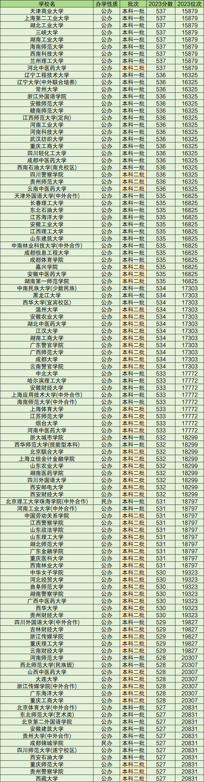 文科(527分-537分):东北师范大学、辽宁大学、贵州大学等。